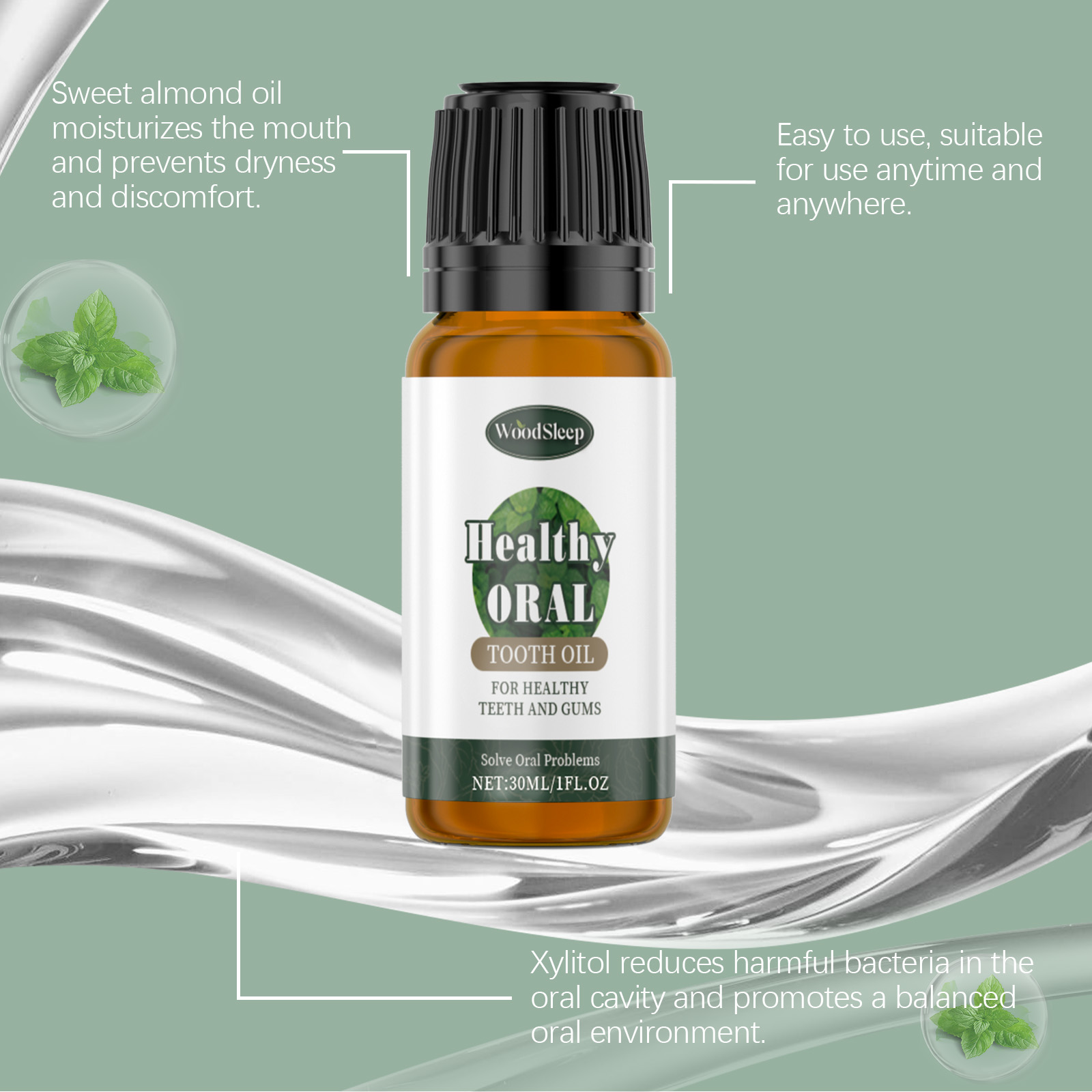 Our peppermint tooth cleaner contains peppermint oil, sweet almond oil and spearmint oil. It can deeply clean the surface of your teeth and remove stubborn stains. Effectively remove plaque and stains, restore the whiteness and luster of teeth. Its use method is very simple: 1. Before use, gently shake well; 2. Apply appropriate amount of the product directly on the tooth surface. 3. Let it sit for 10 minutes, then brush gently with a toothbrush to remove the product and dirt. 4. Rinse your mouth with water. Peppermint oil provides lasting freshness. Make your breath feel more confident; Suitable for all kinds of oral sensitivity, safe use.