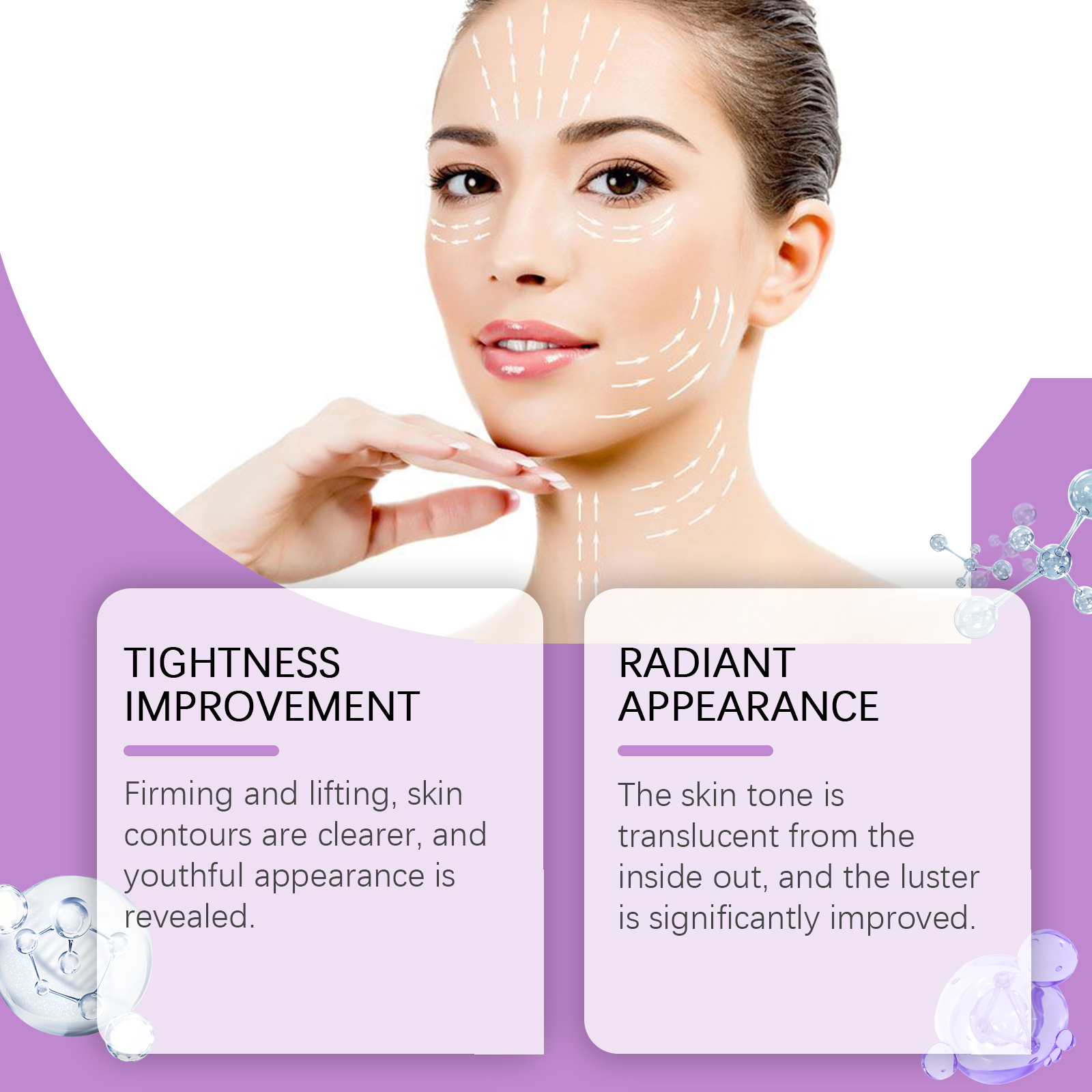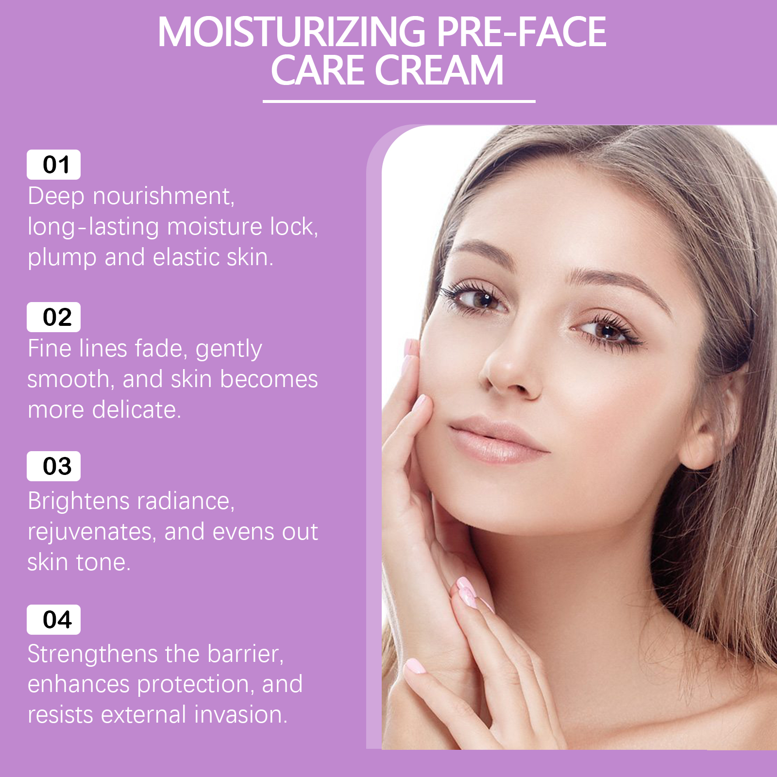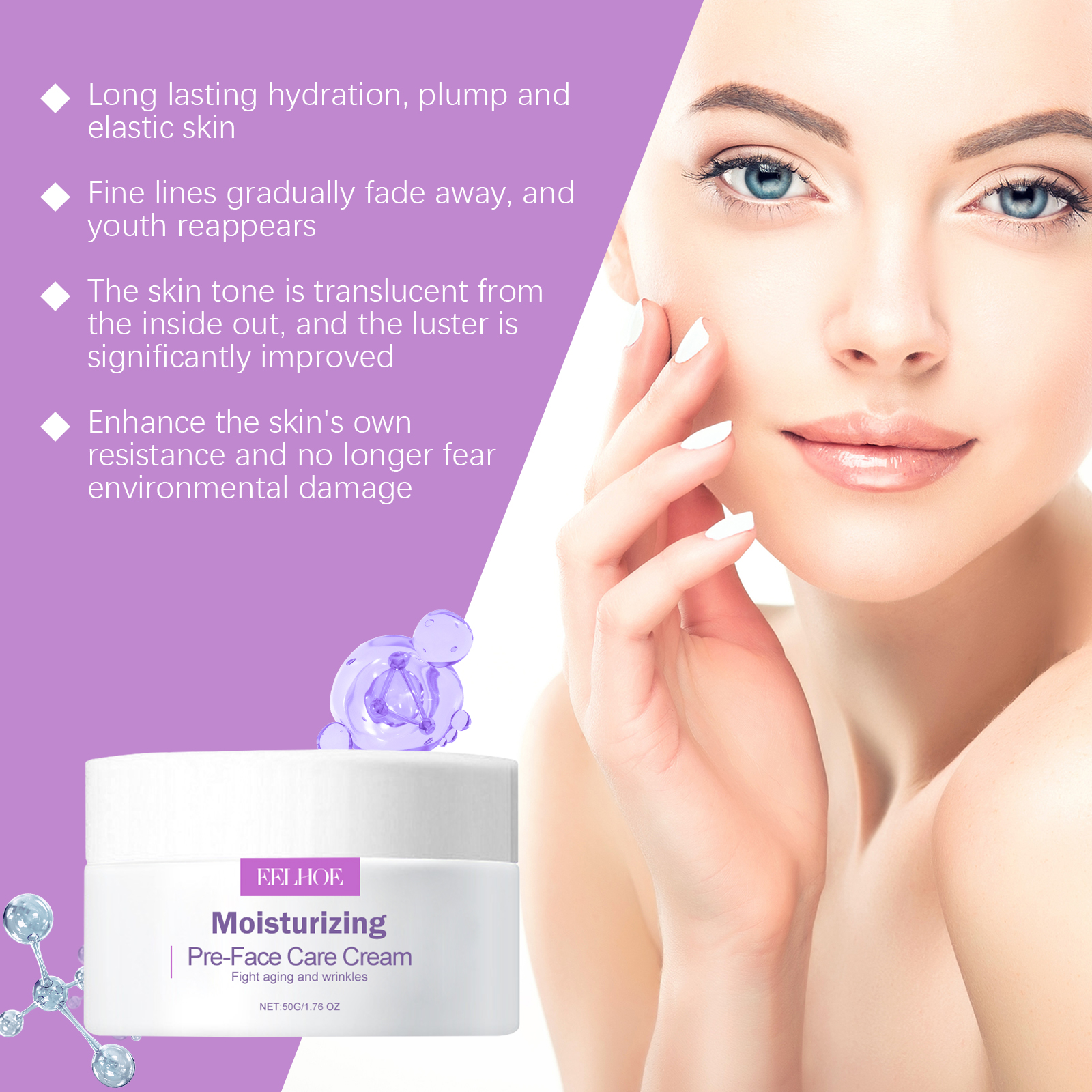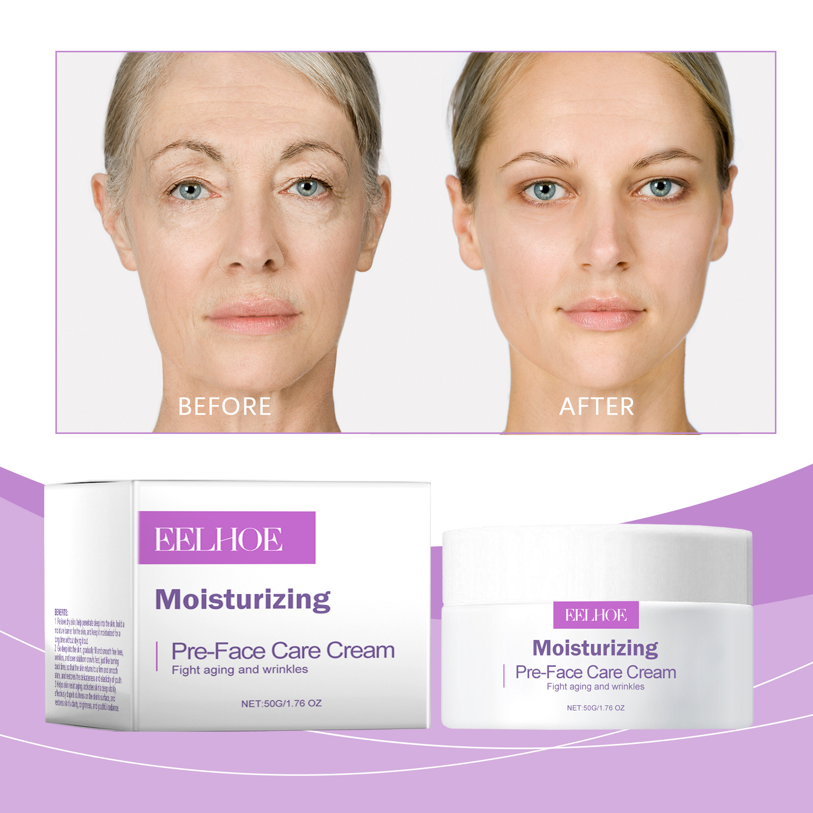 Our moisturizing anti-wrinkle cream contains hyaluronic acid and vitamin C. It can tighten and lift the skin, clearer contour, youthful appearance. The way to use it is simple: clean your face. Take an appropriate amount of face cream and evenly apply to the skin. Massage gently with fingertips in circular motions until fully absorbed. And can lighten the skin, rejuvenate, even skin tone.