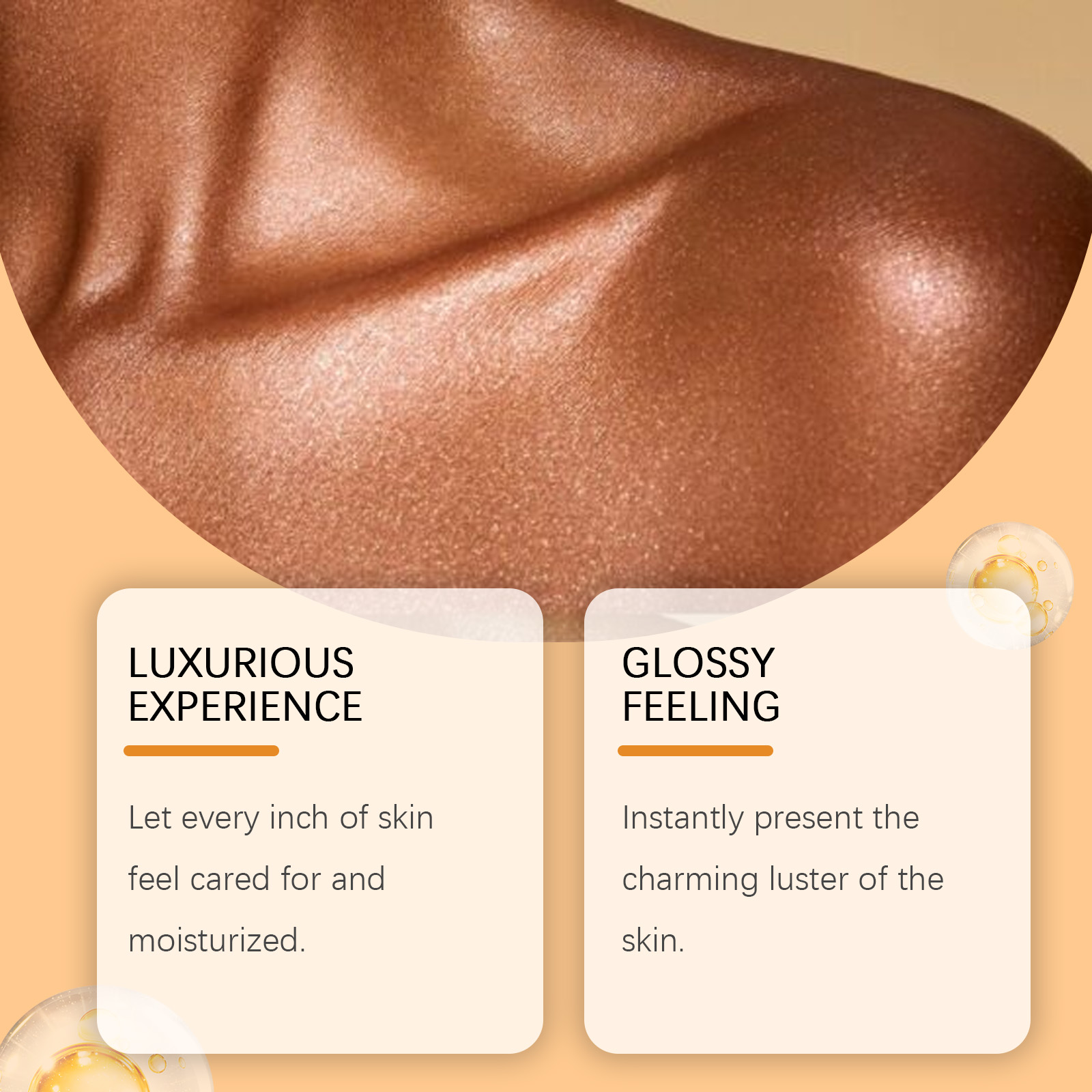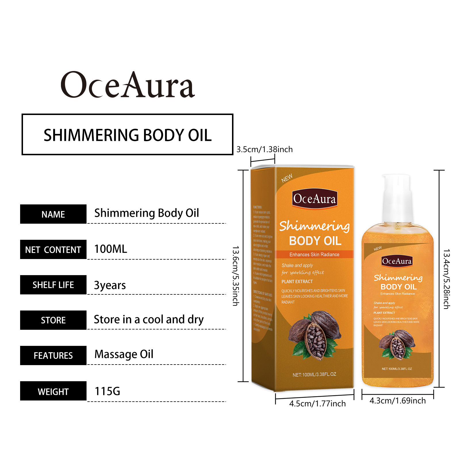 Our shiny moisturizing body oils contain sesame seed oil, cocoa seed oil. It makes every inch of your skin feel pampered and moisturized. Instantly presents the skin charming shine. The way to use it is simple: clean the skin and keep it dry. Apply appropriate amount of this product evenly to the body. Massage gently to promote absorption. And can be selected to provide comprehensive nutrition for the skin. Deep moisturizing, long-term moisture lock, improve skin texture, enhance skin health and luster.