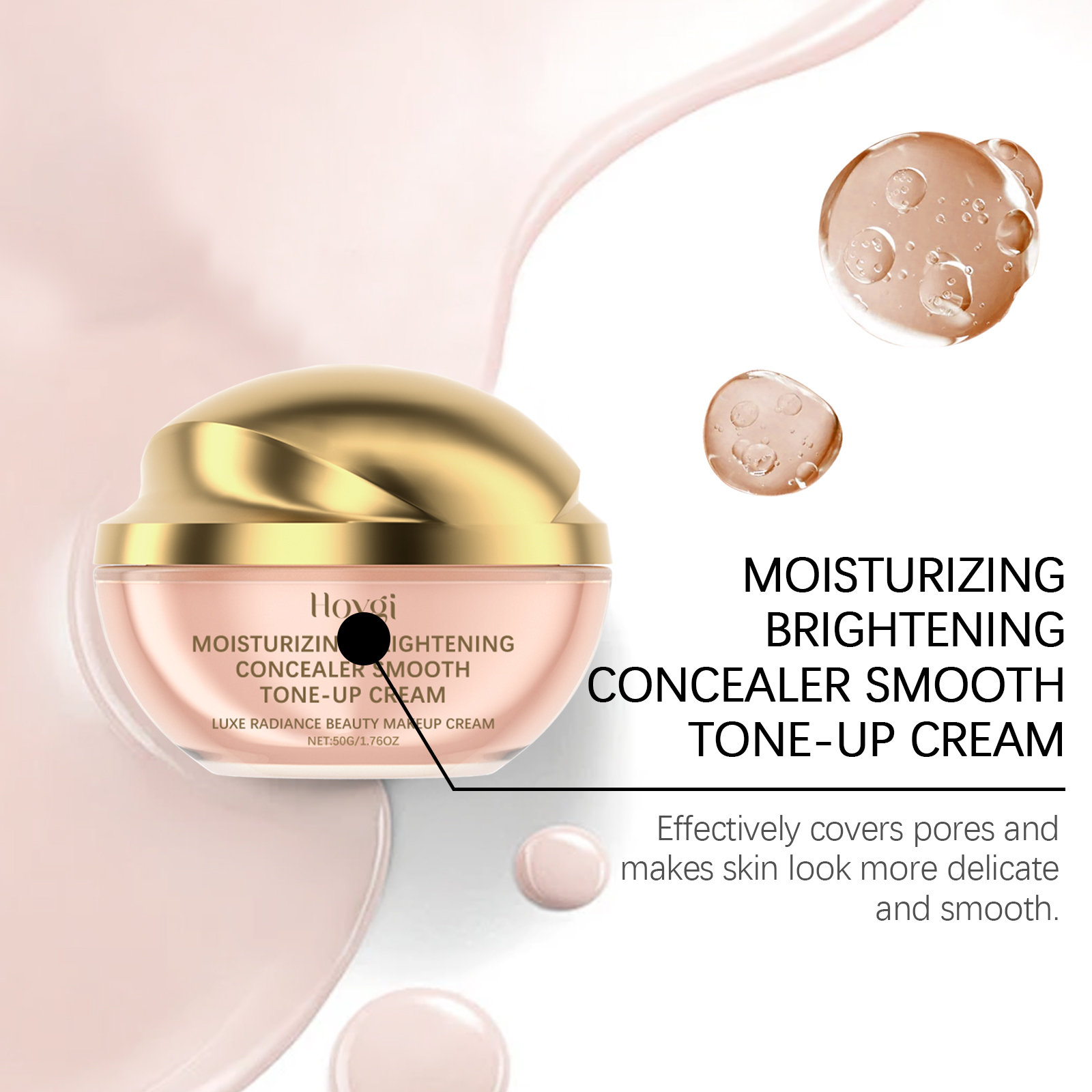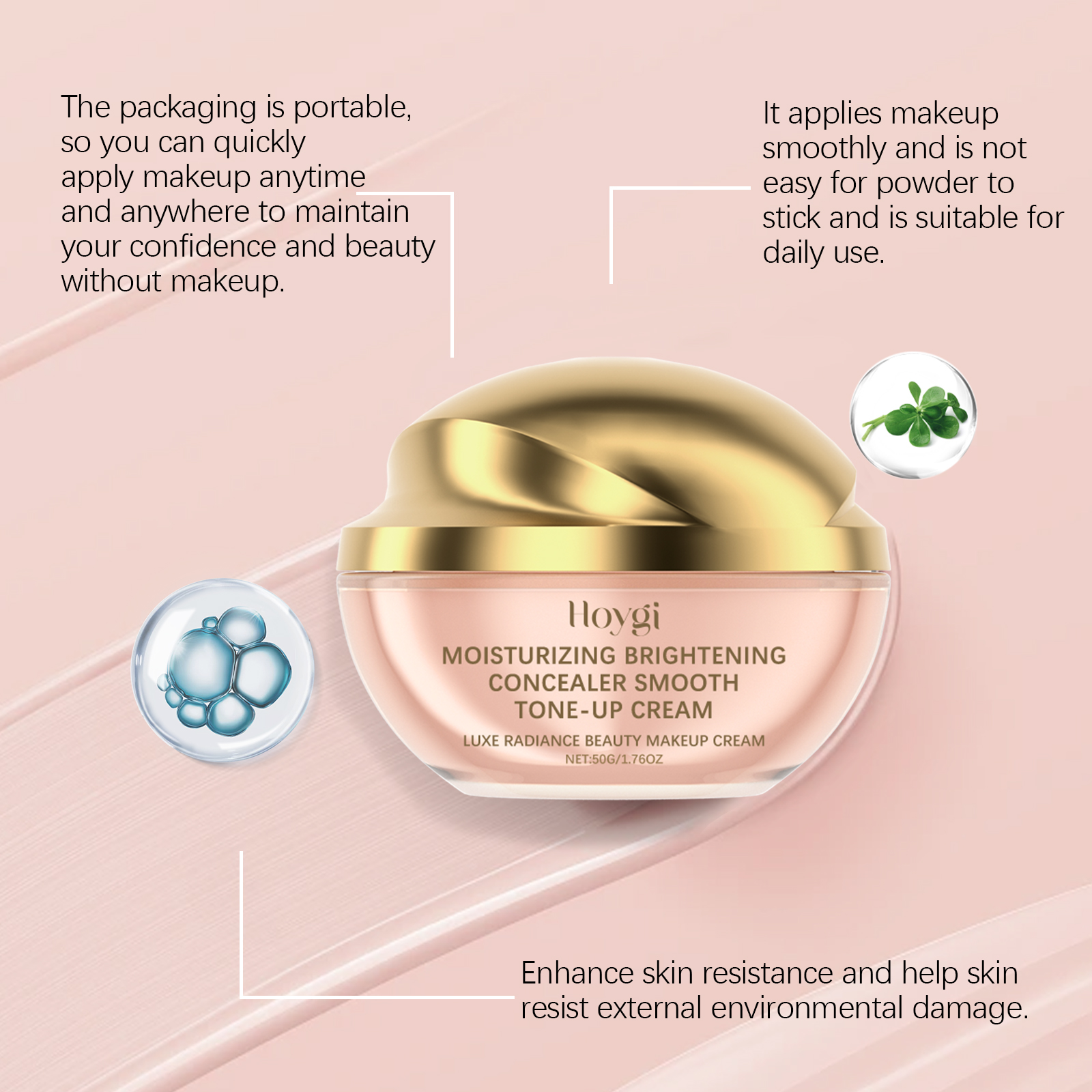 Our moisturizing Concealer cream contains Asiaticum extract, niacinamide, and hyaluronic acid. It can deeply moisturize the skin, lock water for a long time without drying. Its application method is simple: 1. Thoroughly clean and dry the skin; 2. Apply appropriate amount of this product evenly on the face, and then proceed with other makeup steps. Easily hide skin blemishes, create perfect makeup, and show smooth skin. Contains brightening ingredients to even out skin tone and make skin glow.