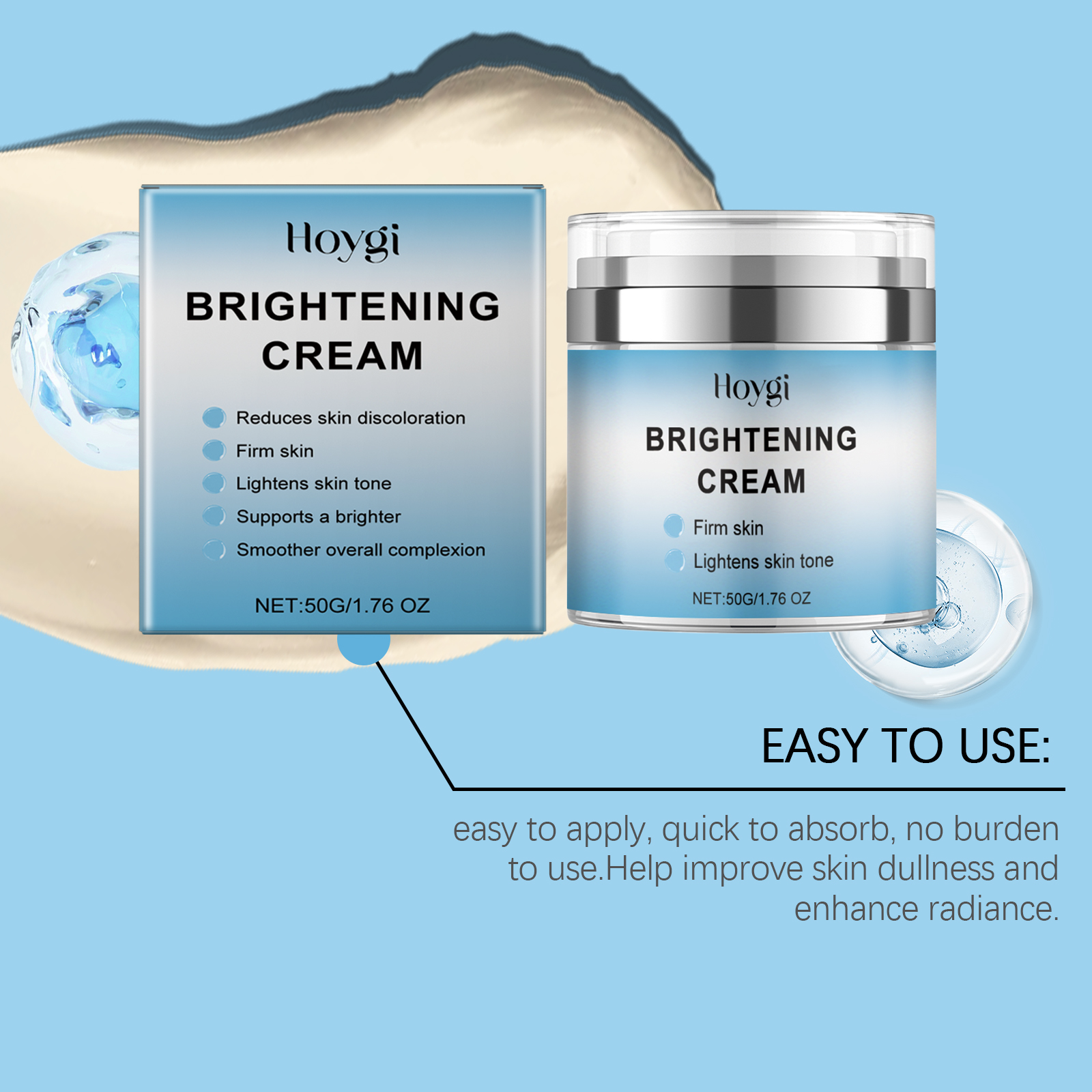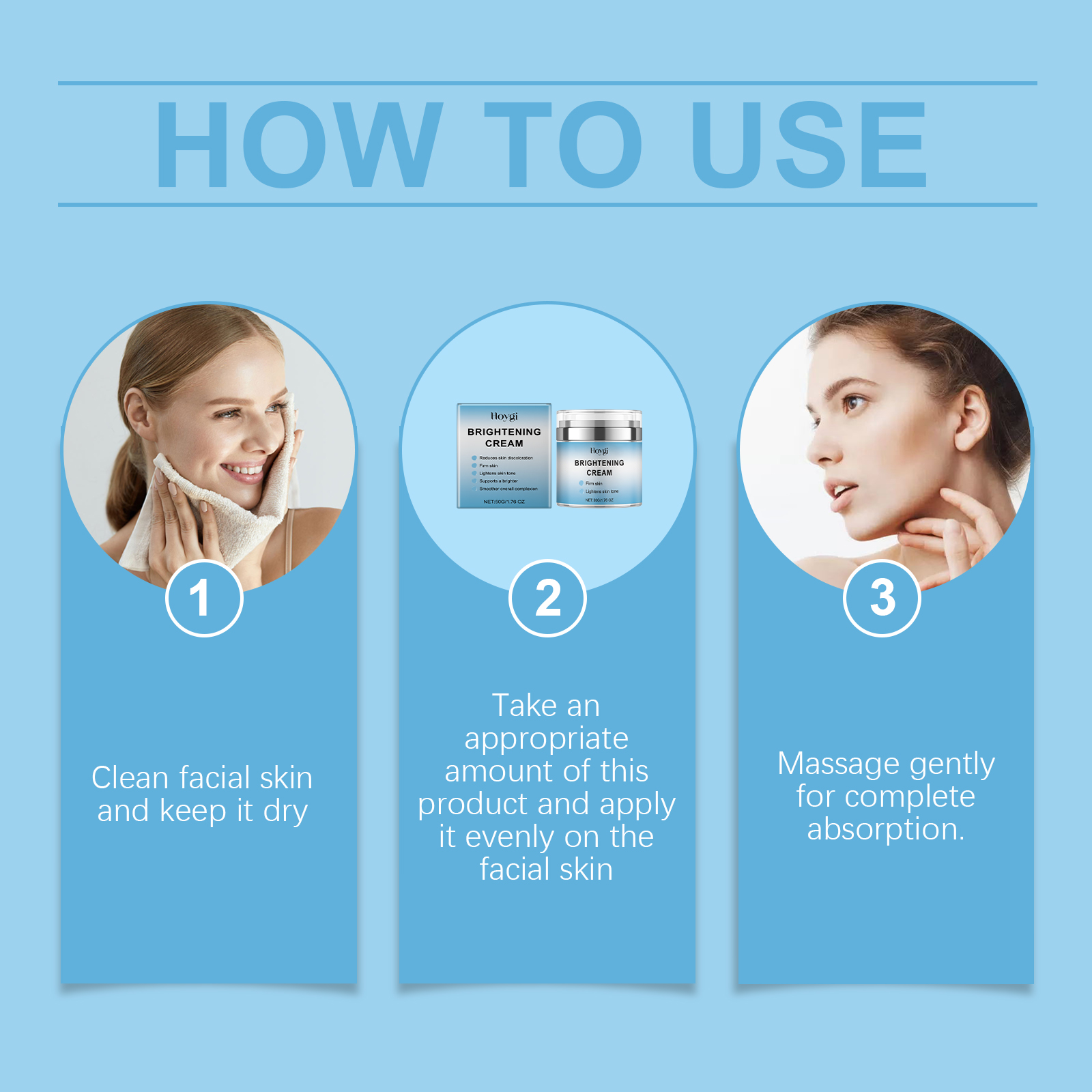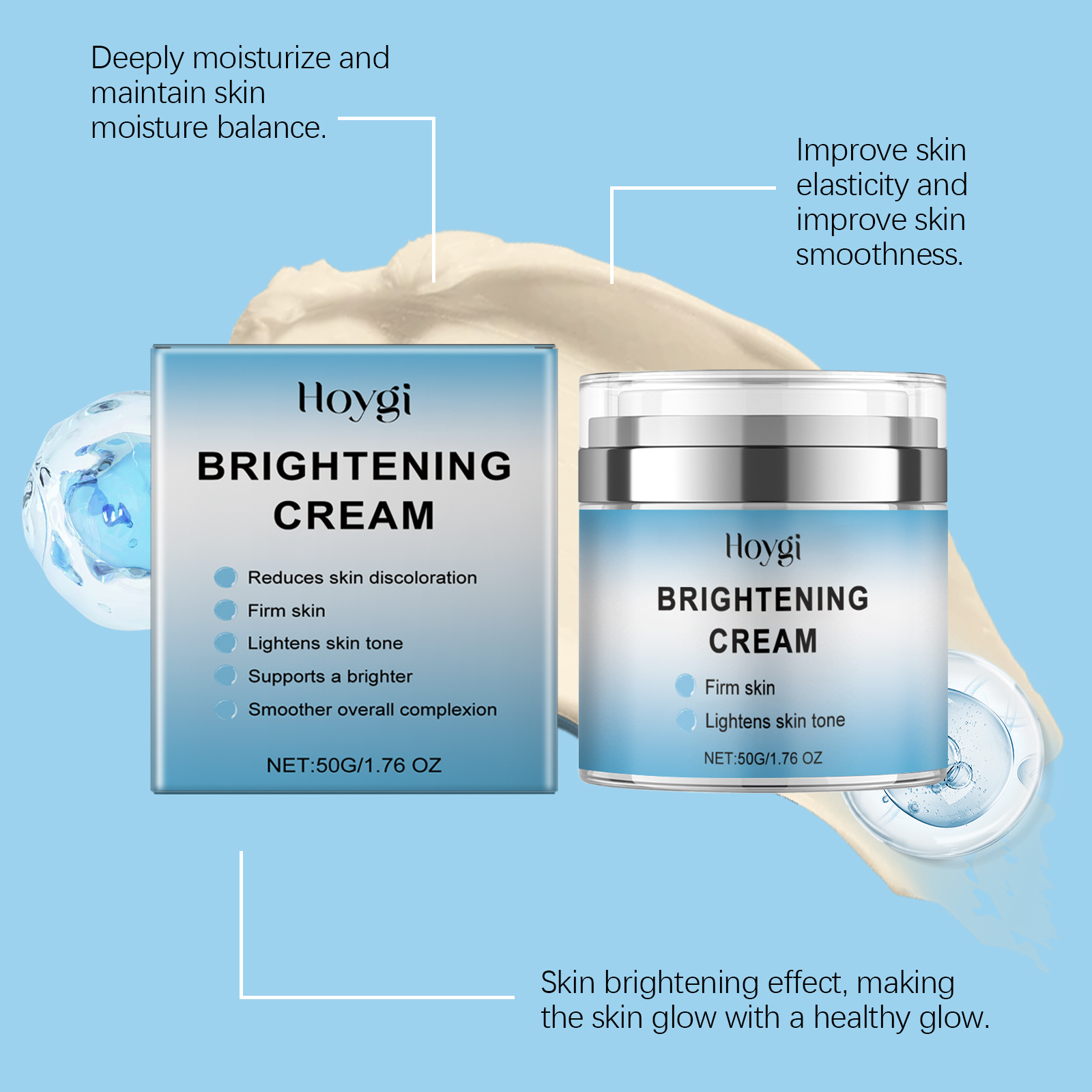 Our moisturizing cream contains glycerin, collagen, citrus extract. It can give the skin a bright feeling. Moisturize every inch of skin and reduce dryness. Its use method is very simple: take appropriate amount of this product, clean the face skin, keep the skin dry, evenly apply on the face skin. Massage gently to fully absorb. It can also help improve skin firmness and vitality.