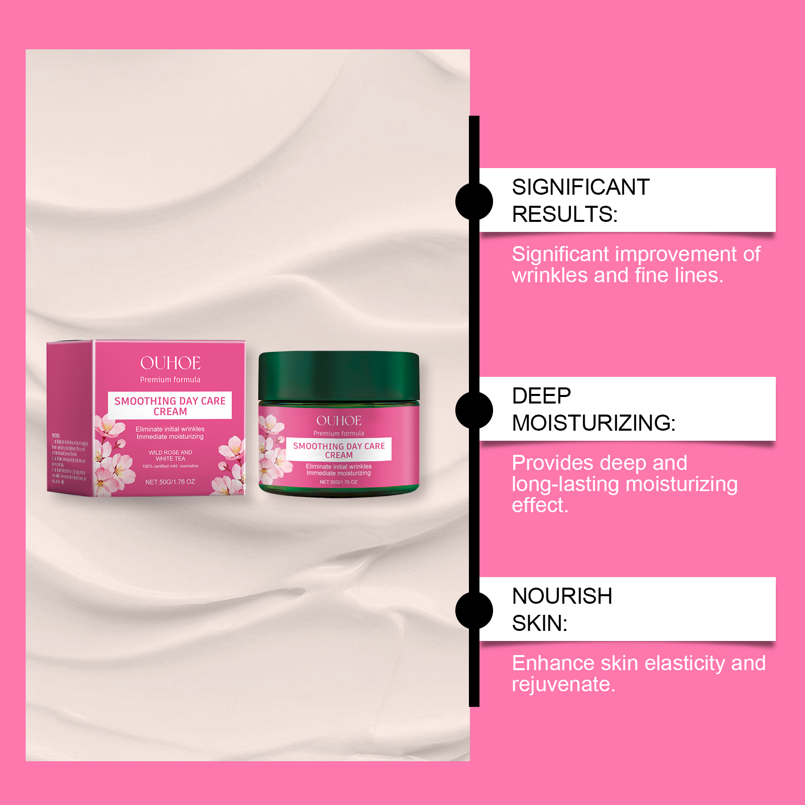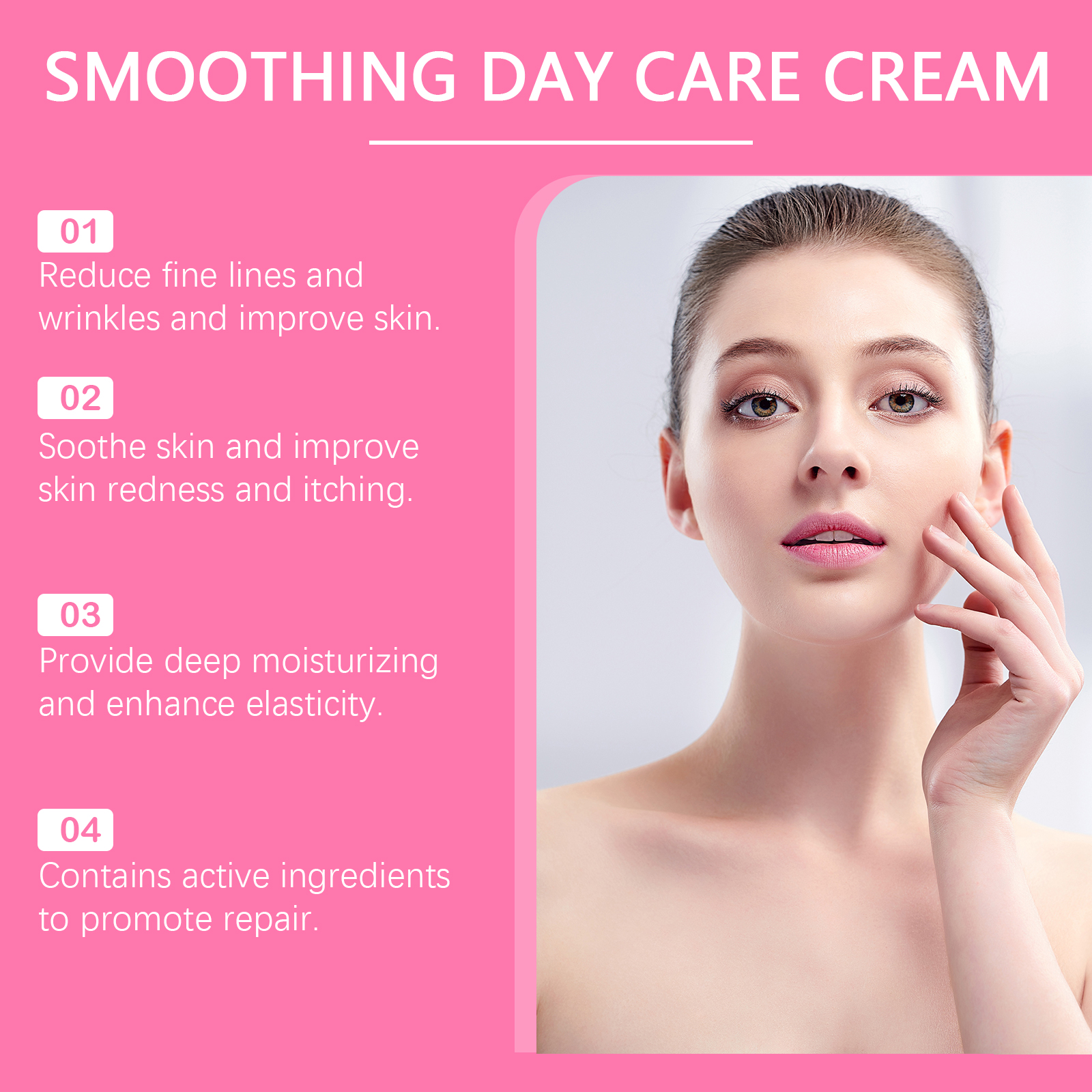 Our moisturizing cream contains vitamin E (tocopherol), collagen. It can help lighten the complexion, reduce dark spots and give skin a youthful glow. Its application method is very simple: completely clean dry facial skin, apply appropriate amount of this product evenly on facial skin, gently massage to promote better absorption. And it can moisturize the skin.
