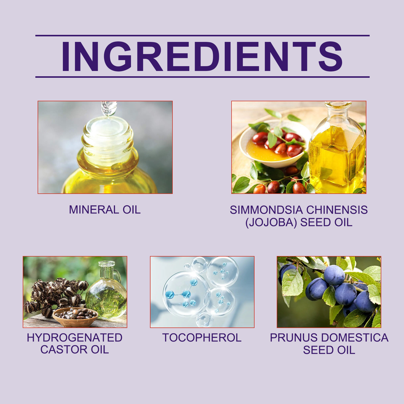 Our moisturizing oils contain mineral oil and Jojoba seed oil. It can improve the reduction of fine lines helps reduce fine lines on the face, making the skin look firmer and more delicate, and keeping it youthful. Provides deep moisture to the skin after use, keeping the skin soft and hydrated for a long time. Its application method is very simple: take appropriate amount of this product evenly apply to the face skin. Cleanse facial skin and keep it dry. Massage gently until absorbed. It can also help enhance the elasticity and flexibility of the skin and improve the texture of the skin.