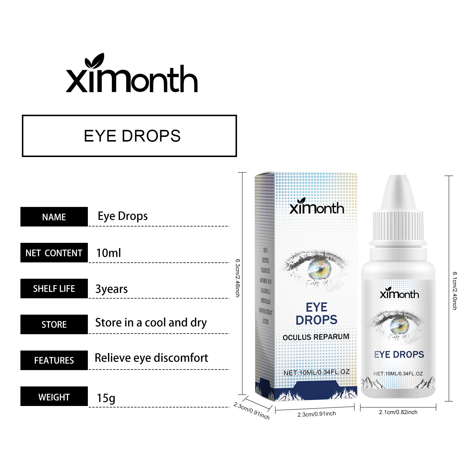 Our Eye Drops contain Retinyl Palmitate, Ascorbic Acid, Calendula Officinalis Flower Extract. It can deeply moisturize, improve the water content of the eye skin, quickly relieve dry eyes, provide lasting comfort, rich in antioxidants, care for eye health. Its use method is very simple: wash your hands before using the eye drops, tilt your head back or lie flat as far as possible, pull down the lower eyelid to separate it from the eyeball, drop the eye drops into the conjunctiva of the lower fornix, close your eyes for at least five minutes, or gently massage the upper and lower tear glands of the inner corner of the eye with your fingers, and finally wipe away the water and tears from your eyes with a tissue or towel. Suitable for daily use, giving maximum care to the eyes. Improves the overall health of the skin around the eyes. Increase the brightness of the eyes.
