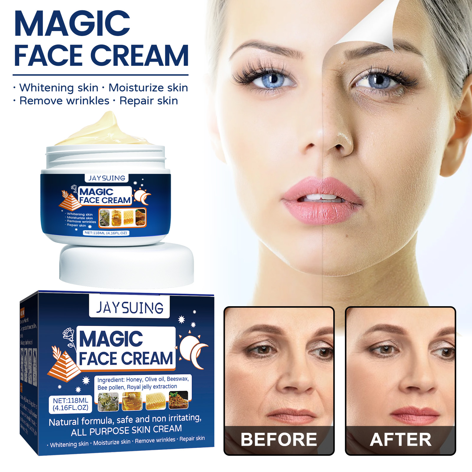 Our skin care face cream contains bee pollen, olive oil, beeswax. It can stimulates collagen production, firms sagging skin, smooths wrinklesa and fine line, boosts elasticitya and skin radiance, repair skin, brightens and hydrates dull dry skin. Its application method is very simple: Take a small amount of paste in the palm, knead and emulsify to a liquid state, wipe on any necessary parts of the body. Anti wrinkle, skin beautification, moisture, make skin firm, hydrated and elastic, looking younger.