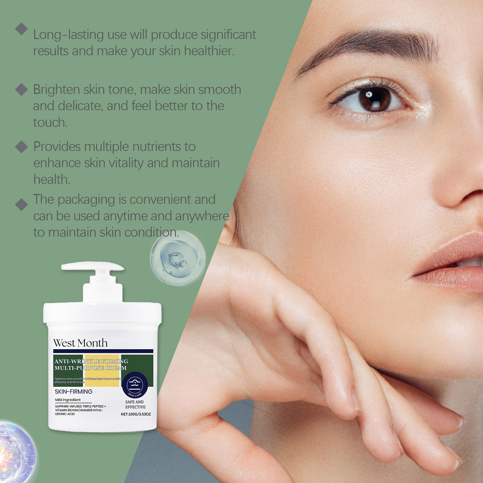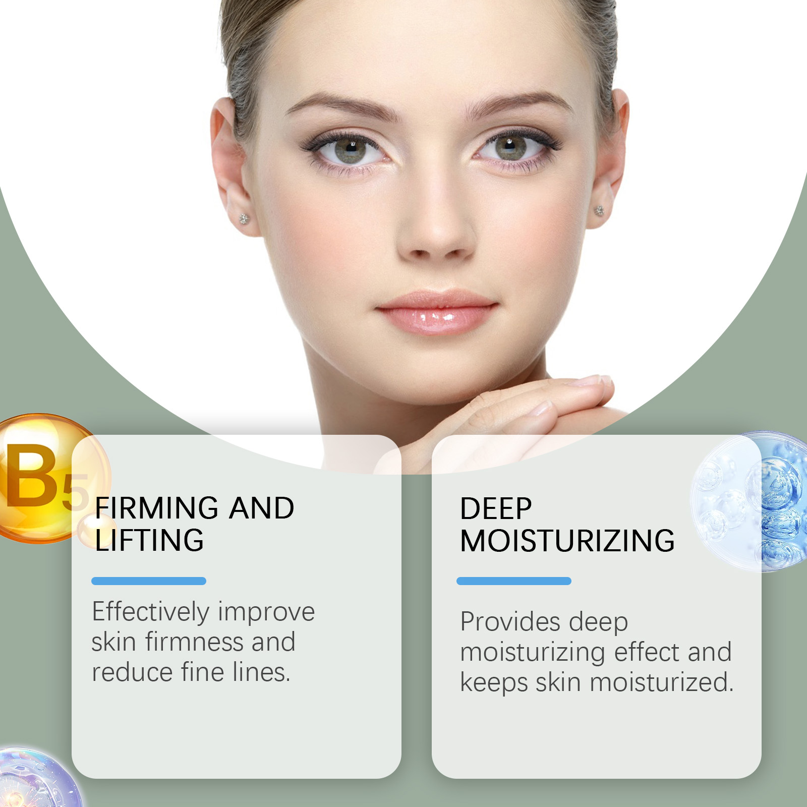 Our moisturizing and firming cream contains niacinamide and hyaluronic acid. It can reduce dry and rough skin and keep facial skin soft and moisturized. Its application method is very simple: clean facial skin, apply it to warm hair, evenly apply appropriate amount of this product to facial skin, gently massage until completely absorbed. And can provide a deep moisturizing effect, so that the skin retains moisture.