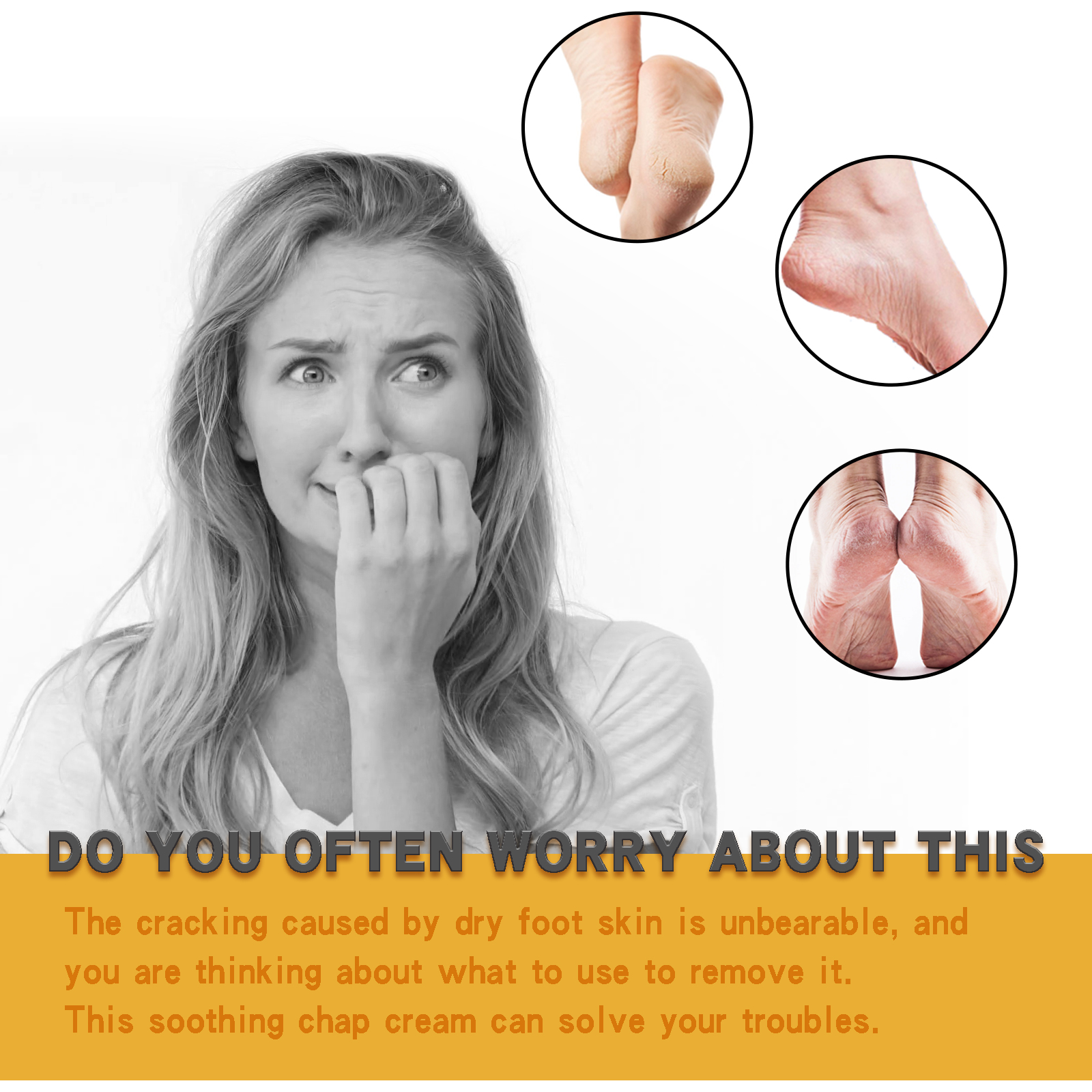 Our soothing chapping cream contains calendula extract and ceramide. It can penetrate deeply to repair foot fractures. Its use method is very simple: 1. Clean and dry the foot skin, 2. Take appropriate amount of cream, evenly spread on the split area, 3. Massage gently with both hands in circular motions until absorbed. 4. Use twice daily for longer results. And can continue to moisturize the skin, tender feet.
