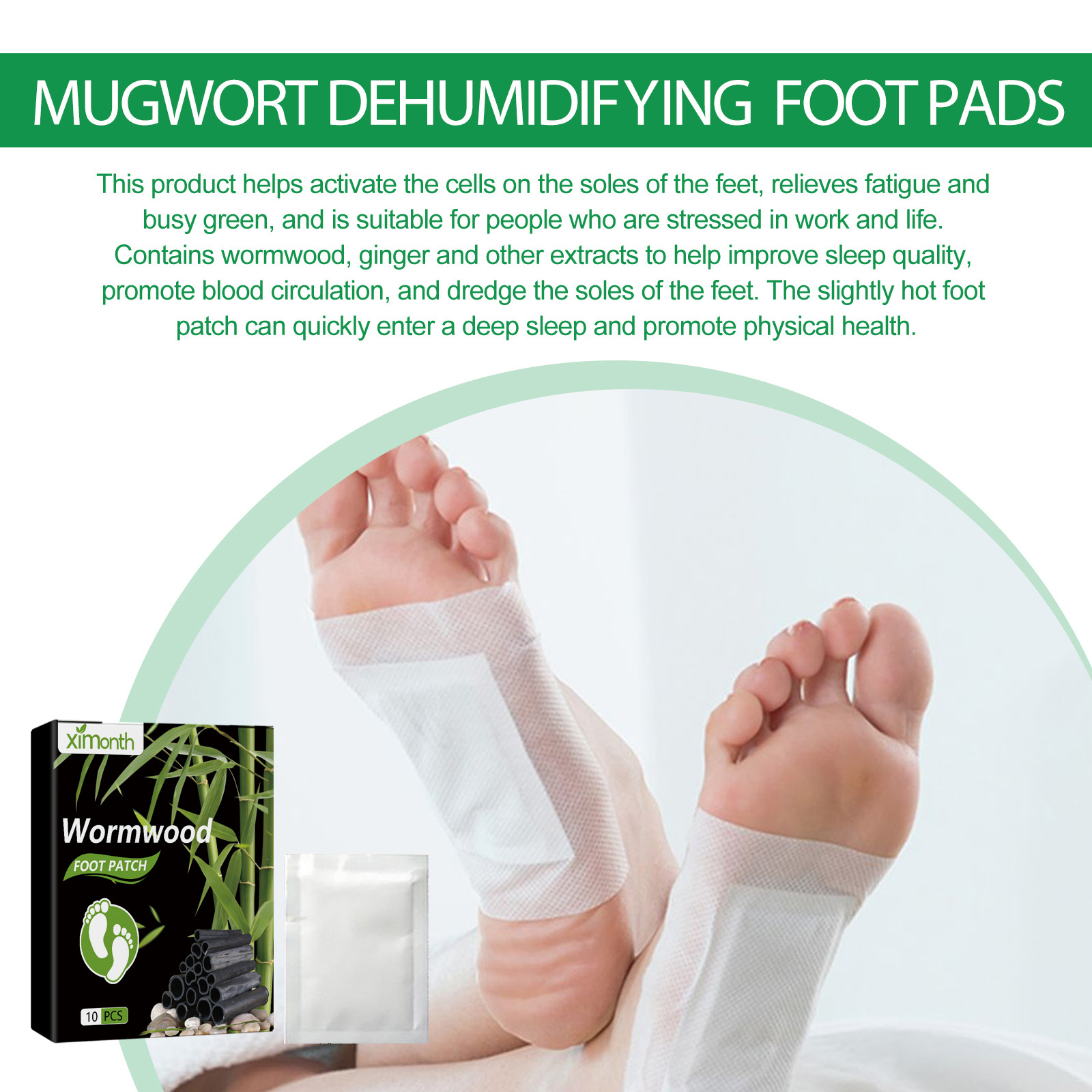 Our wormwood foot pads contain wormwood, bamboo charcoal, ginger and bamboo vinegar. It can help activate the soles of the feet cells, relieve fatigue and busy green, suitable for work and life pressure people, contains wormwood, ginger and other essence, help to improve the quality of sleep, promote blood circulation, dredge the soles of the feet, slightly hot foot patch can quickly enter deep sleep, promote health. Its use method is very simple: wash and dry the soles of the feet before going to bed, take out the patch, tear off the back of the film, stick the patch on the bottom of the feet for about 8 hours, after removing the patch, wash the skin with water. And can care for the feet.