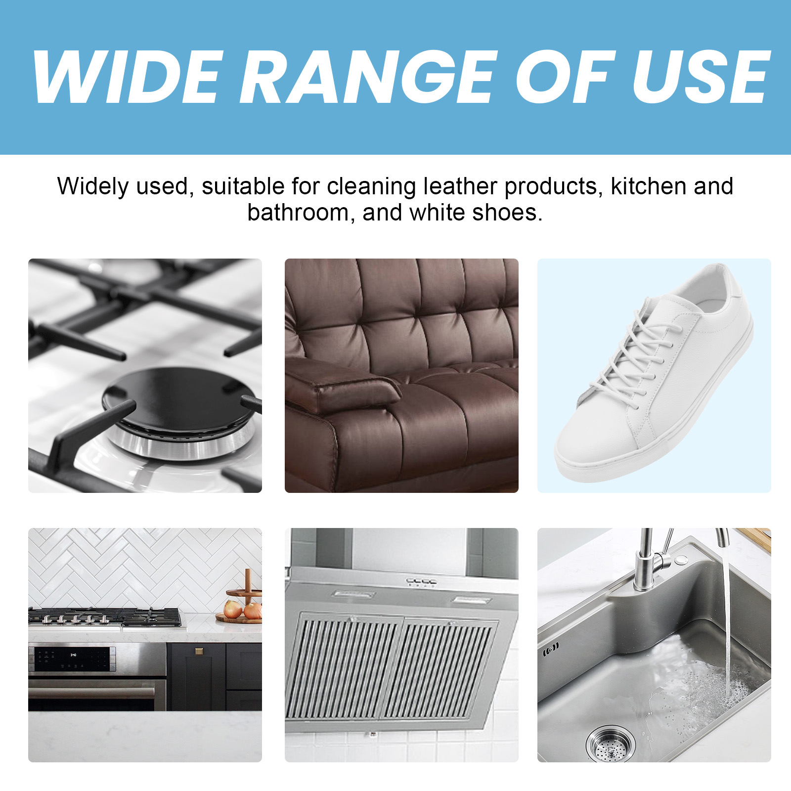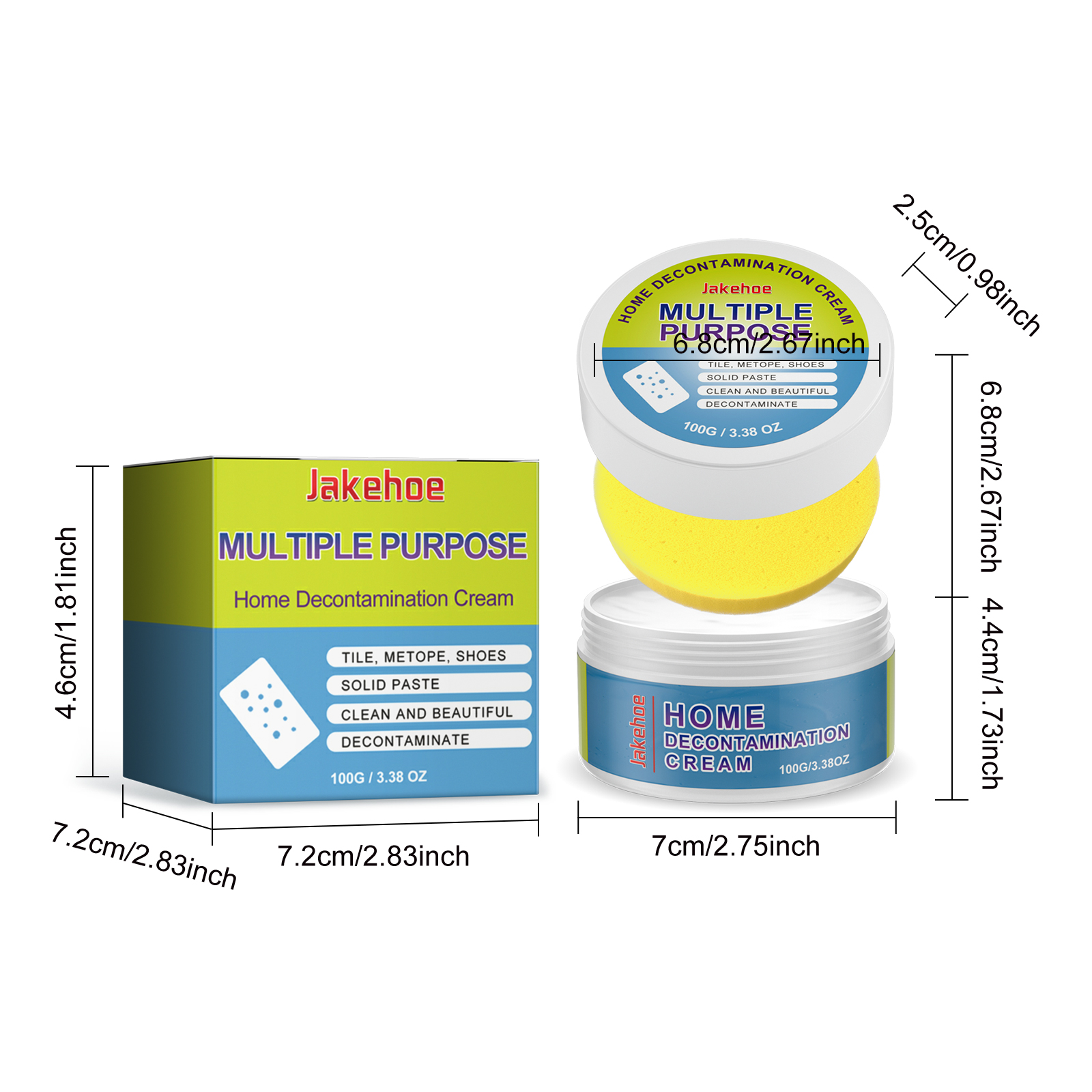 Our Multiple Purpose Home Decontamination Cream contains glycerin, baking soda, and surface activators. It can deeply clean stains, clean the sink, the bottom of the pot, the stove heavy oil and scale, rust clean. Its use method is very simple: first, use a sponge to apply an appropriate amount of cleaning cream, use a sponge to evenly wipe the surface of stained objects, such as white shoes, leather, kitchen, bathroom, etc., and then wipe off the residue on the surface. Versatile and suitable for cleaning leather goods, kitchens and bathrooms, and white shoes.
