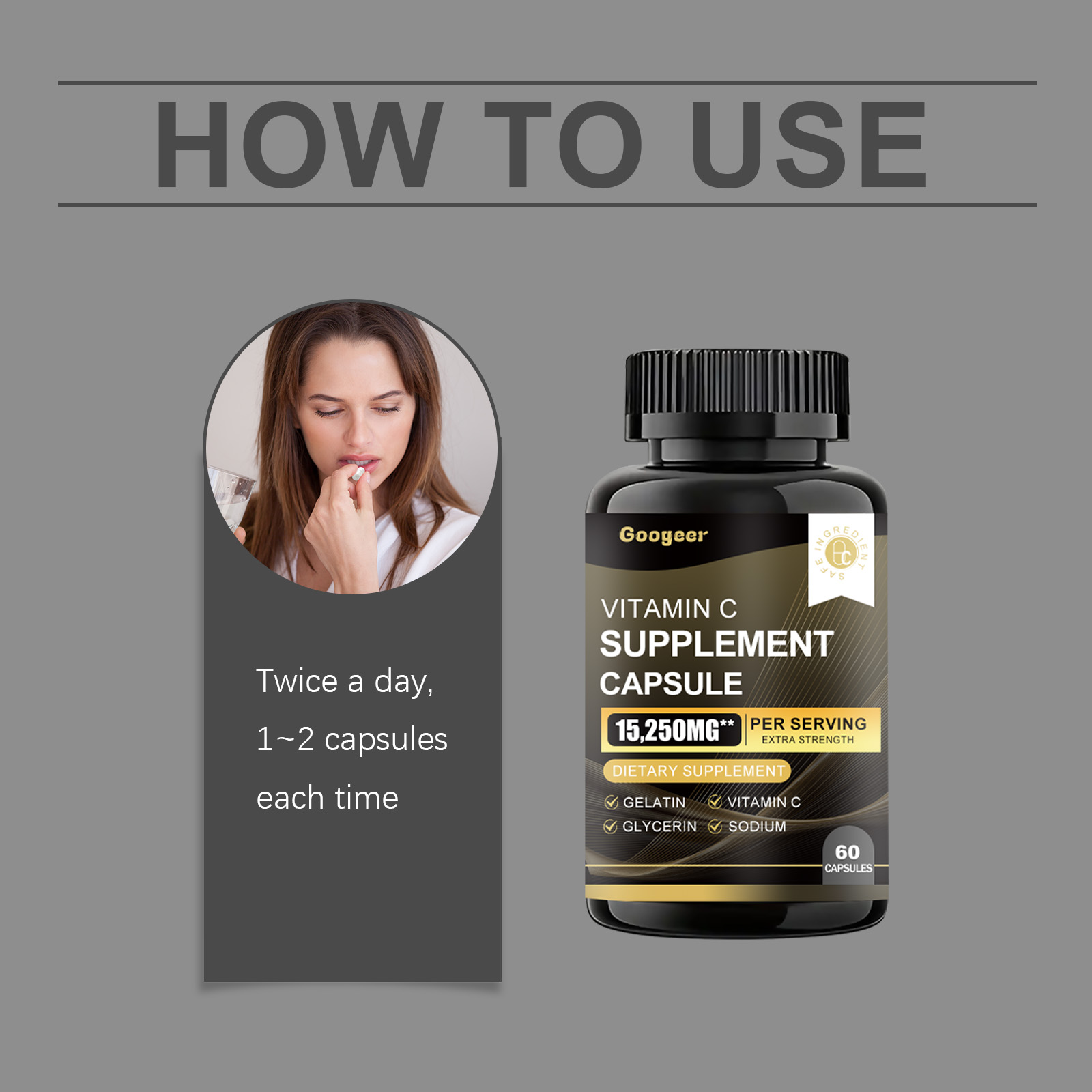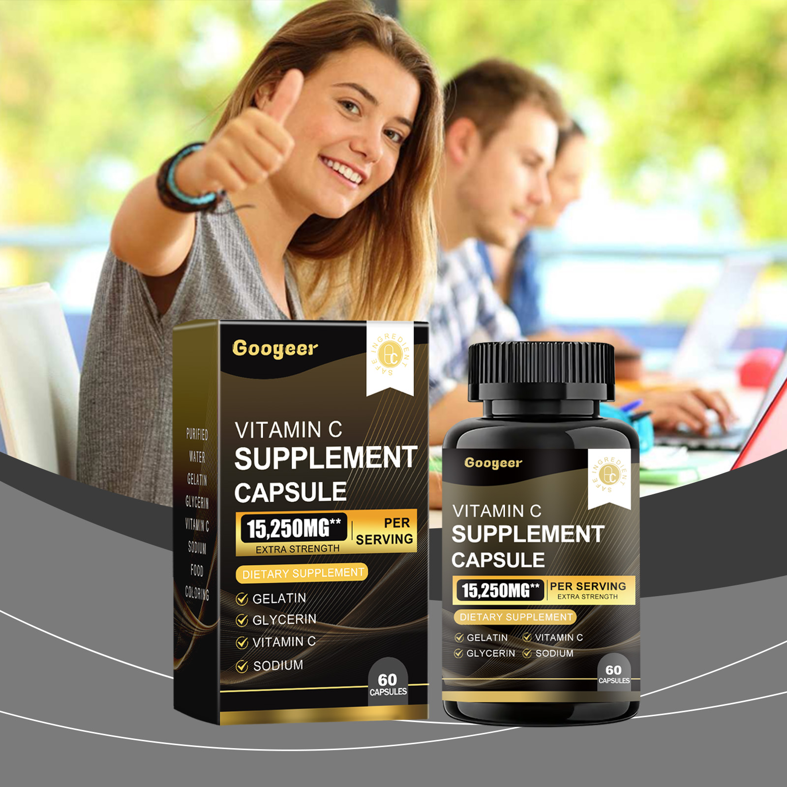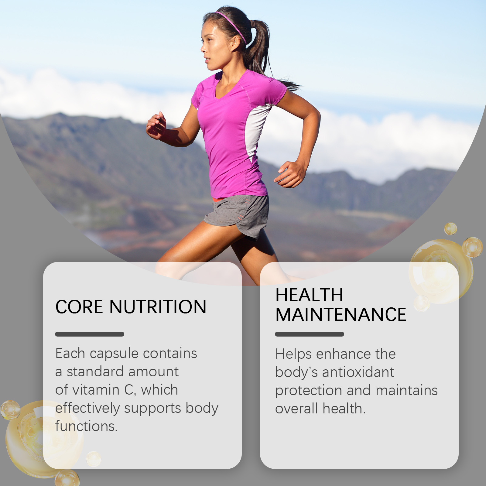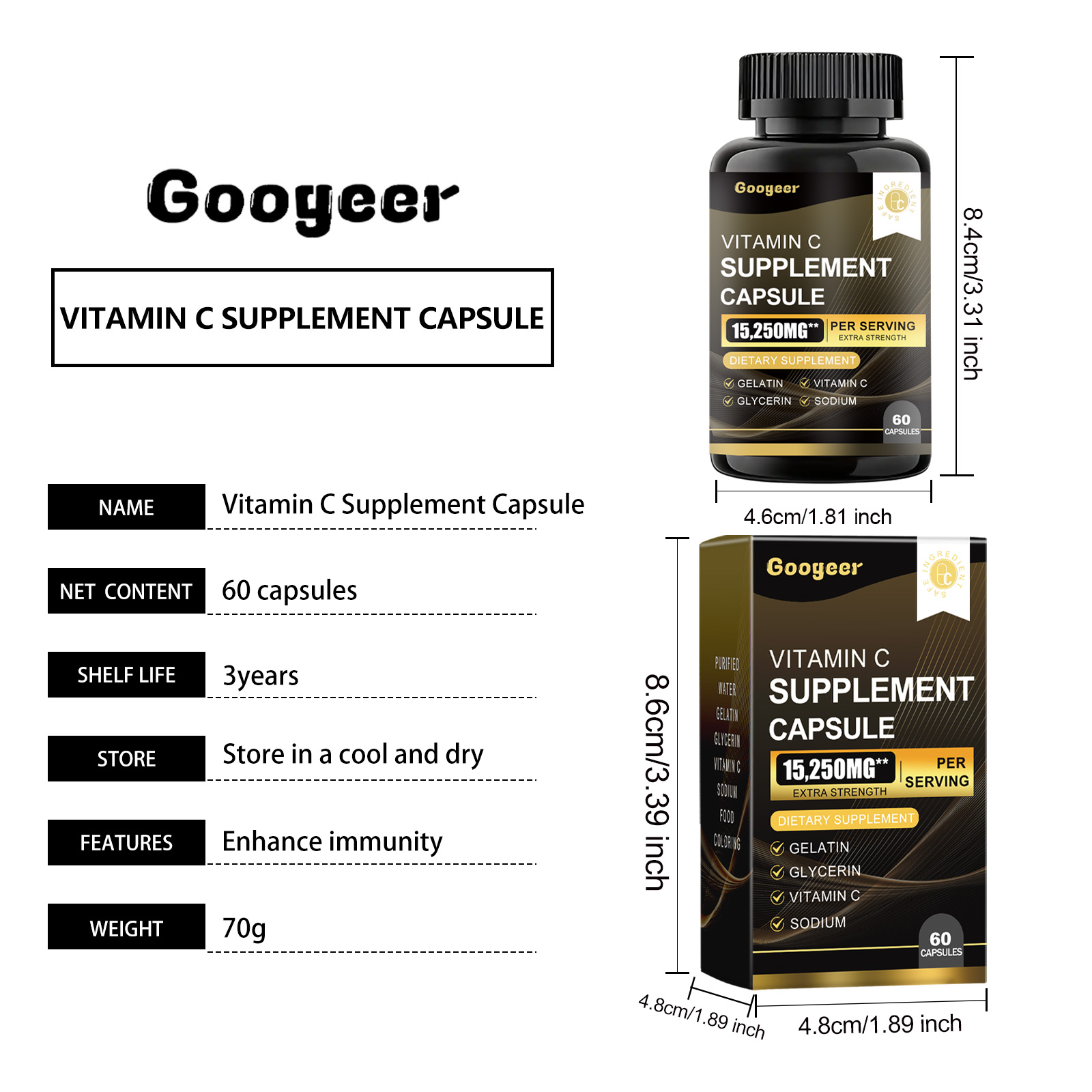 Our Vitamin C Supplement Capsule contain Gelatin, Glycerin, Vitamin C. It can enhance the body's antioxidant protection, maintain overall health, easily supplement the daily requirement of vitamins, boost immunity, promote collagen production, and protect cell health. The way to use it is simple: take 1-2 capsules twice a day. Each capsule contains a certain amount of vitamin C, which effectively supports body functions.