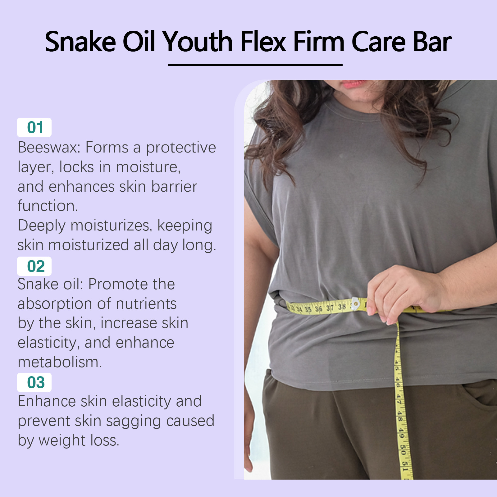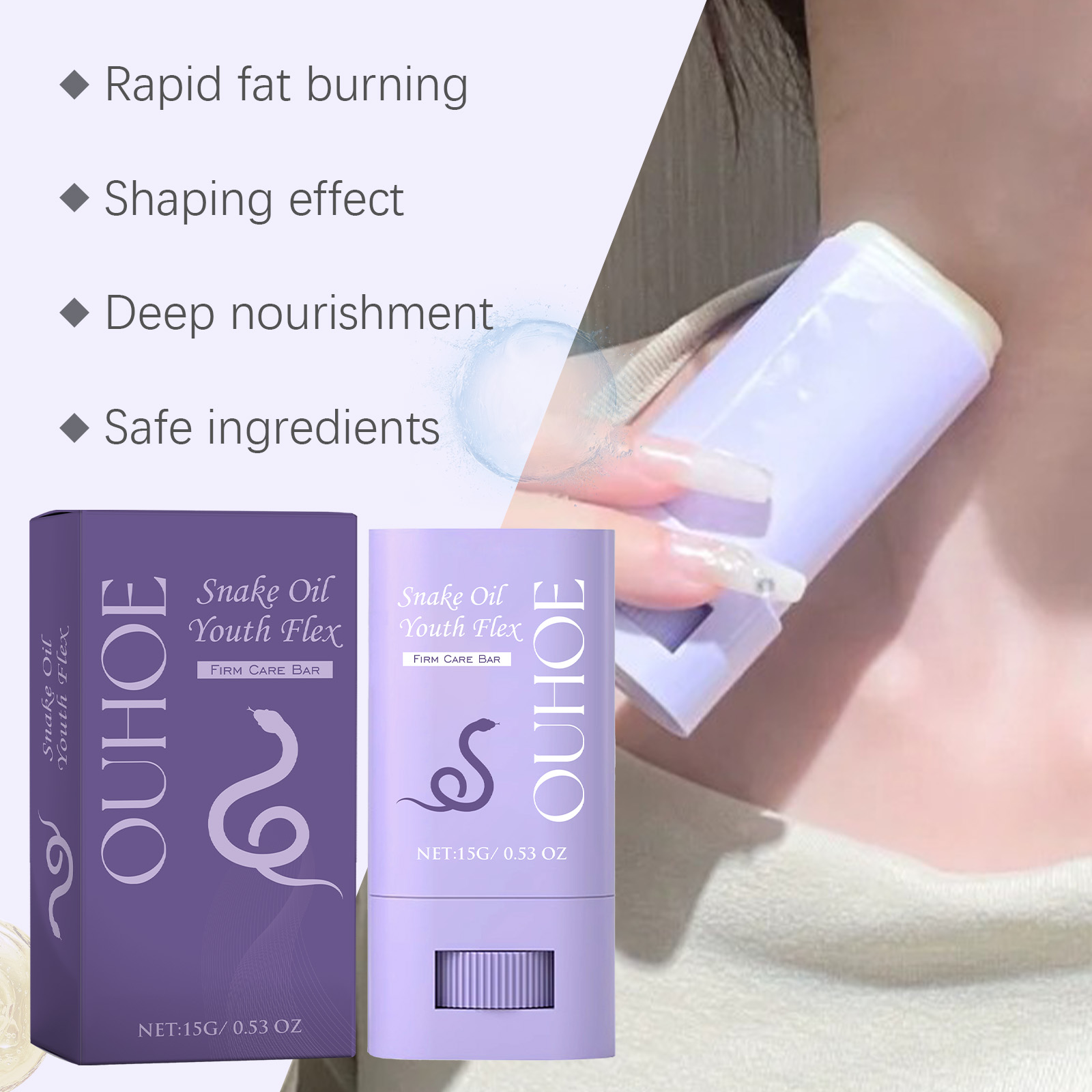 Our body shaping bars contain beeswax, snake oil and glycerin. It can speed up metabolism, quickly break down excess fat in the body, and improve the efficiency of fat loss. Helps to firm the skin, shape the body and reduce the appearance of cellulite. Its use method is simple: 1. Apply the product directly to the skin that you want to lose weight; 2. Gently massage until completely absorbed; 3. Wait 10 minutes, then rinse with water. Toning bars burn fat quickly and efficiently to create the ideal body shape. Moisturize deeply and keep skin soft for a long time. Efficient formula, fast absorption, non-greasy; A multi-purpose product, suitable for all parts of the body, easy care.