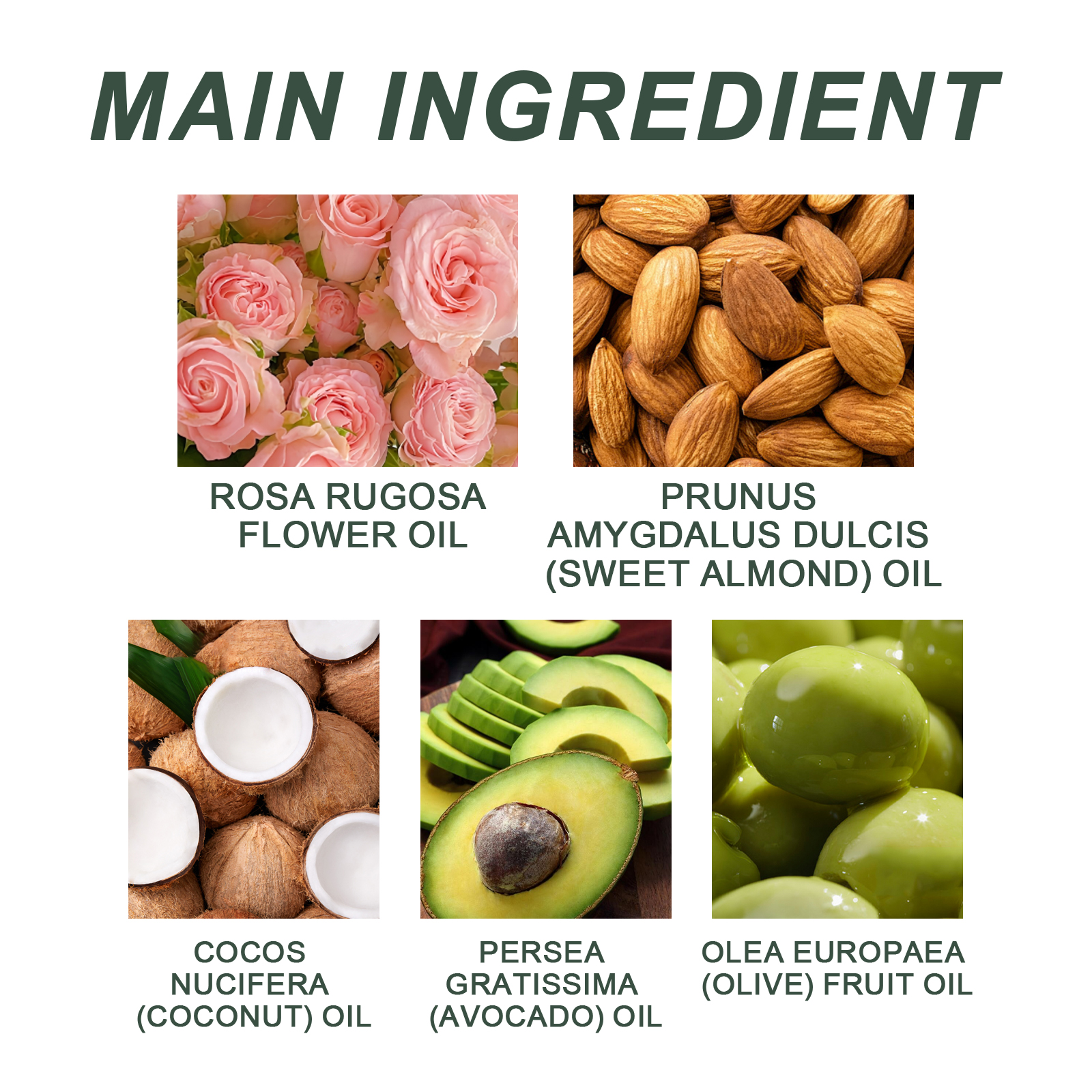 Our Rose Vibes Handcrafted Body Oil contains Rosa Rugosa Flower Oil, Prunus Amygdalus Dulcis (Sweet Almond) Oil, Cocos Nucifera (Coconut) Oil. It can help reduce fine lines and wrinkles, help skin look younger, soothe and calm the skin, whiten and brighten the complexion, and make your skin look smoother and more beautiful. Its application method is very simple: after cleaning the body skin, apply appropriate amount of this product evenly on the body skin, gently massage until absorbed. It moisturizes effectively, leaving you with youthful, smooth, full skin.