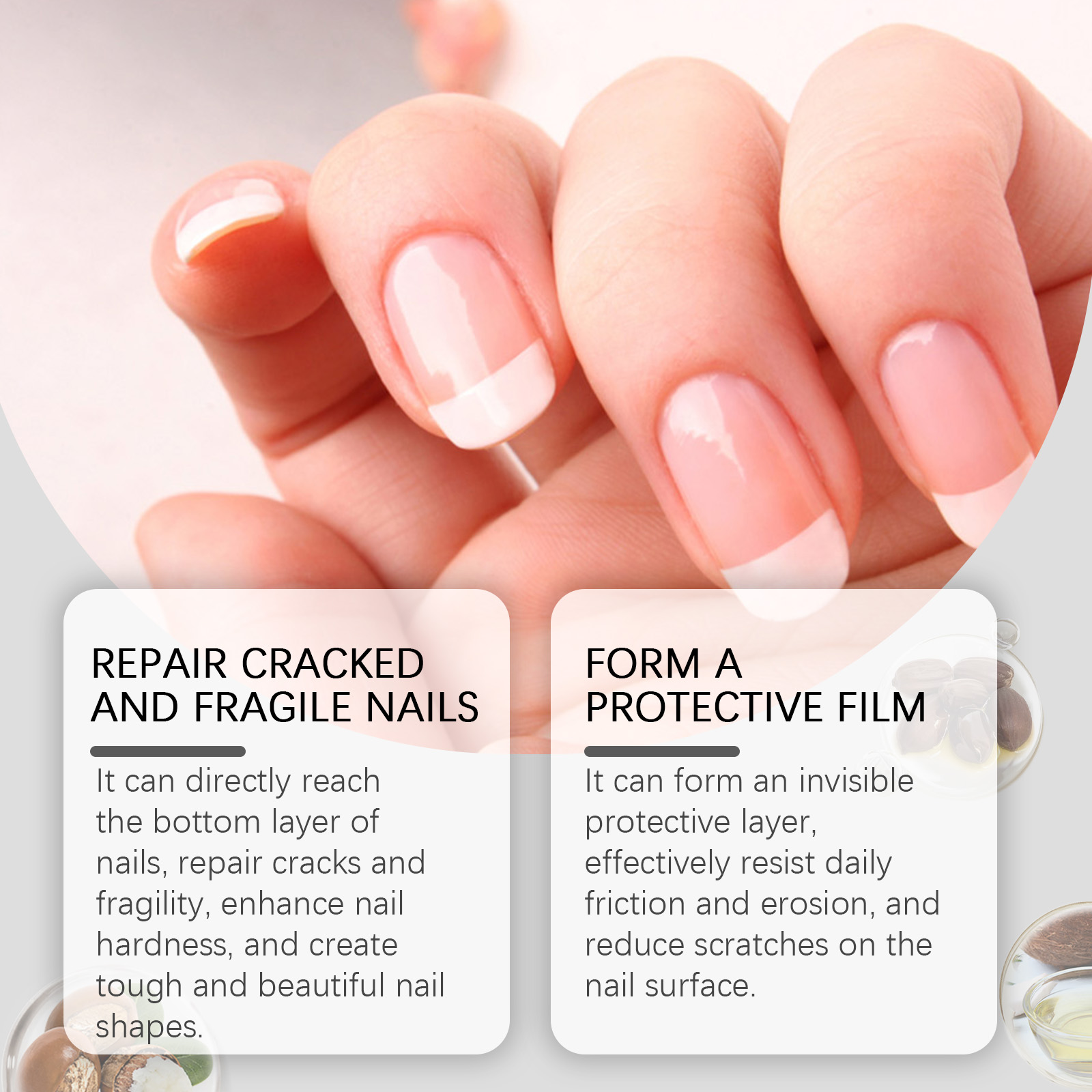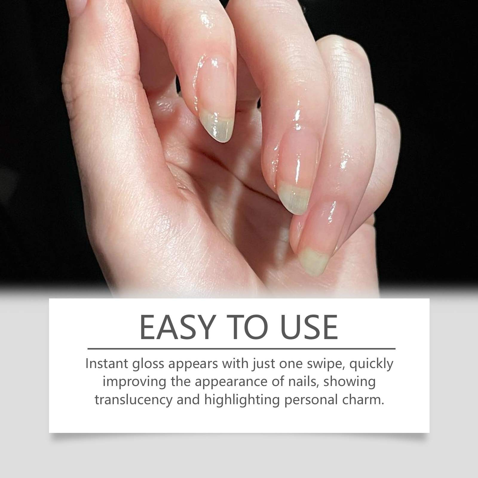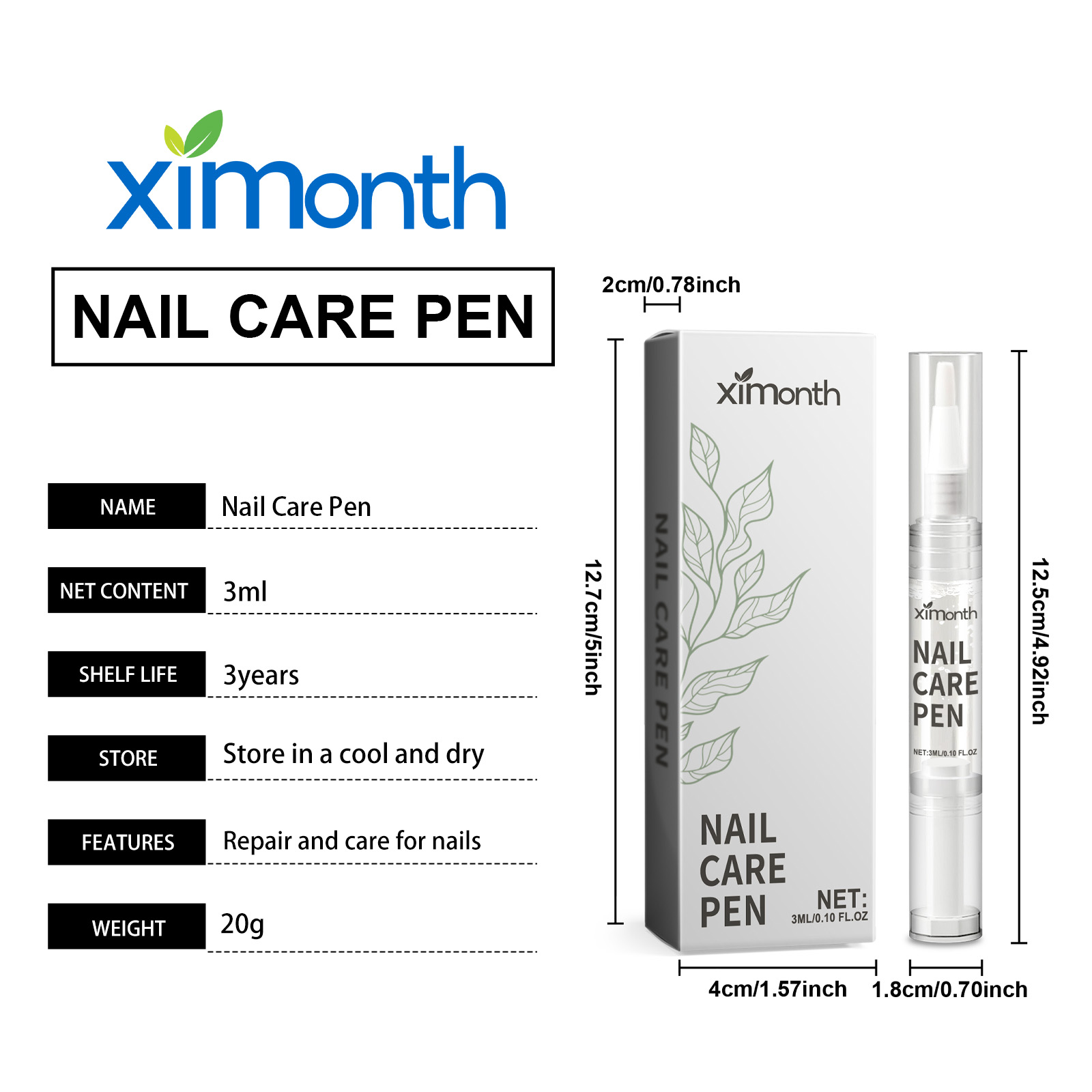 Our nail care pens contain Jojoba oil, coconut oil, shea butter. It can reach directly to the bottom of the nail, repair nail cracks and fragility, enhance nail hardness, and create tough and beautiful nails. It can form an invisible protective layer, effectively resist daily friction and erosion, and reduce scratches on the nail surface. The way to use it is simple: 1. Clean and dry your nails. 2. Erase the fragile parts first, then turn the pen to the left. Then apply it around the affected nail. 3. Use up to 3 times a day. The nail care pen can instantly shine with a single brush, quickly improve the appearance of nails, show the translucent effect, and highlight the personal charm.