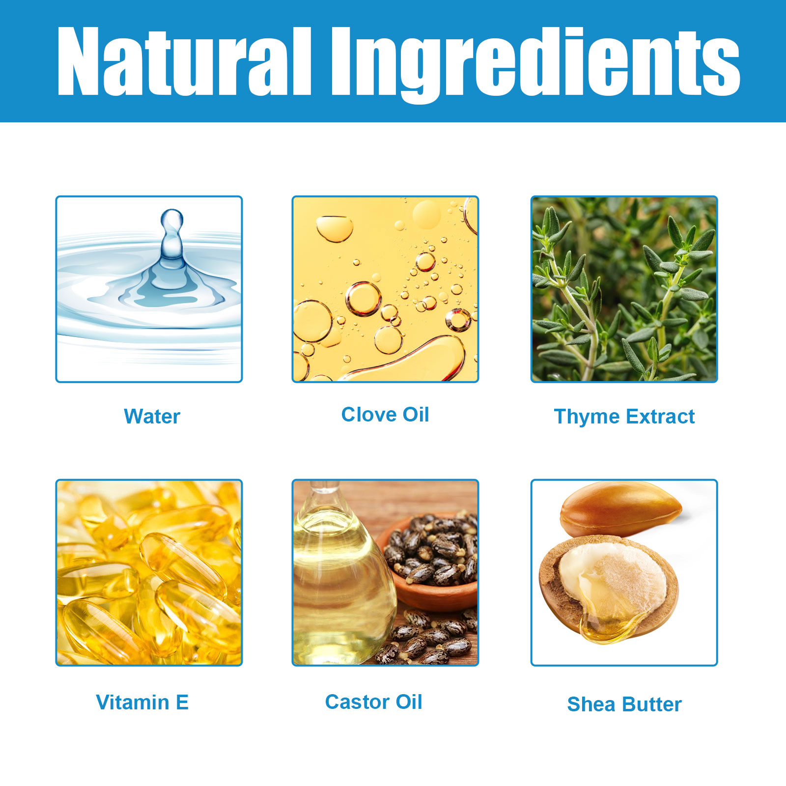 Our Anti-Fungal Disinfectant Nail Fungus Removal contains shea butter, clove oil and thyme extract. It can inhibit the production of bacteria, remove fungi, help repair black, yellow, ugly thickened nails, so that nails return to optimal health. The way to use it is simple: thin the surface of the nail with a scrub stick before application, spray the product on the nail and surrounding skin 2-3 times, and let it slowly penetrate and absorb. Let it air dry. Provide rich nutrition for nails, thereby promoting the repair function of nails, and gradually restore the smooth and luster of nails.