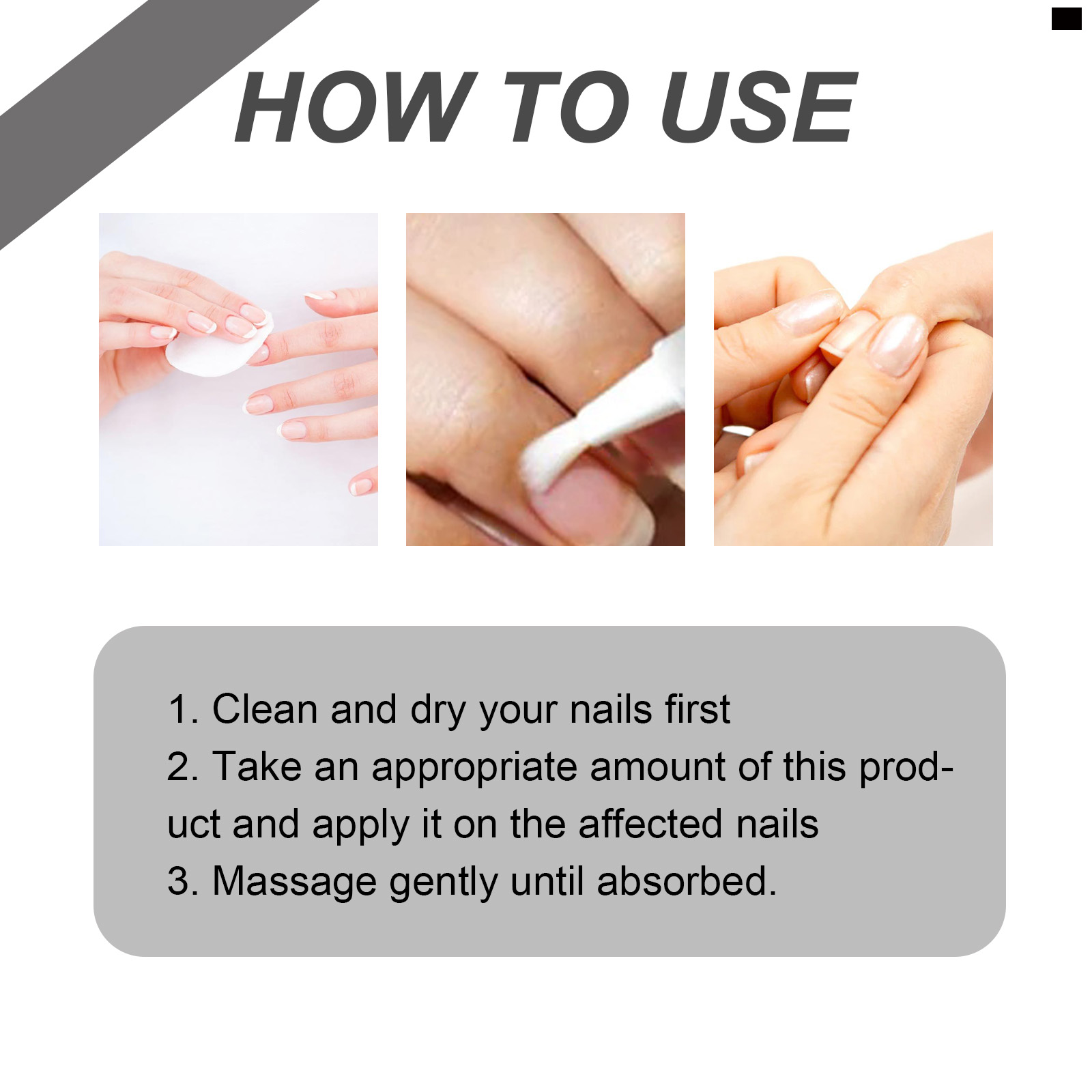Our Nails Repairing Serum contains Glycerin, Carbomer, Allantoin. It inhibits the growth of fungus, prevents it from spreading to other parts of the nail, strengthens and moisturizes nails, and promotes healthier nails. It is easy to use: clean and dry your nails, apply an appropriate amount to the affected area, and gently massage until absorbed. It can comprehensively strengthen and promote the health of the nails, make them more flexible to cope with future fungal infections, provide the nails with the required nutrients, and effectively fight fungal infections.