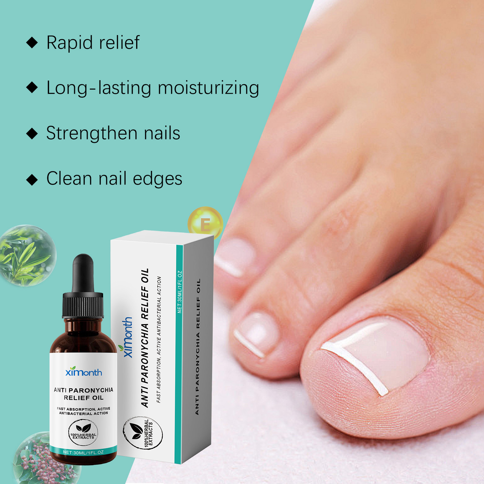 Our nail care oils contain mineral oil and Jojoba seed oil. It can promote nail bed health, stabilize methyl groups, reduce the recurrence of thyrovaginitis from the root, and protect the toughness and beauty of nails. Its application method is simple: 1. Thoroughly clean the surface of the feet and nails. 2. Apply this product effectively to the affected nail and wait for it to dry. Quickly relieve the pain and discomfort of paronychia and restore calm to your nails. Every minute feels good.