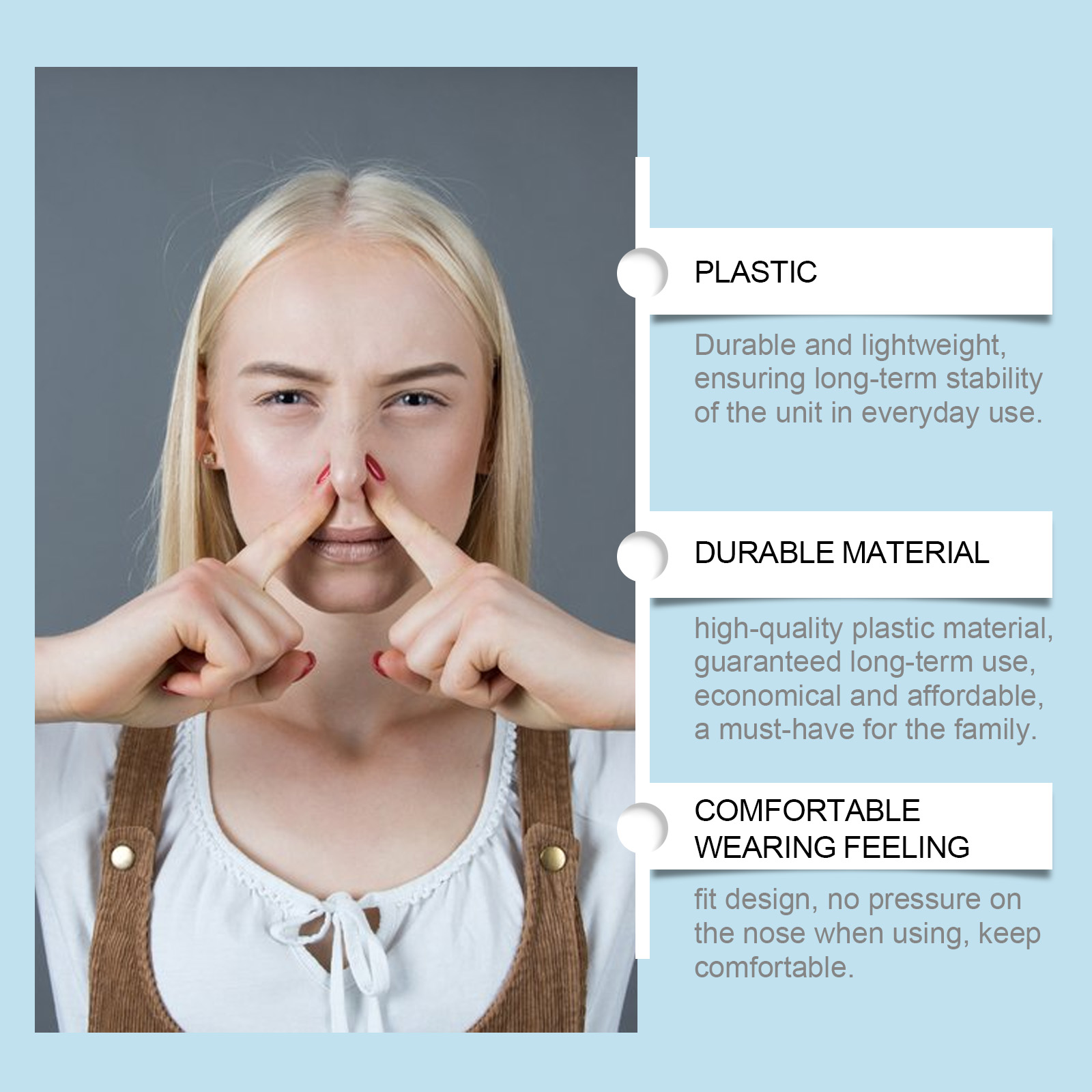 Our nose care devices contain plastic. It is designed for easy operation, suitable for nasal congestion, helpful for all ages, without the complicated smooth steps you need to use for quick recovery. It works simply by pointing the nasal congestion reliever at your nostril and inhaling and exhaling deeply through your nose. And simple design, easy to store, easy to adapt to the home environment.