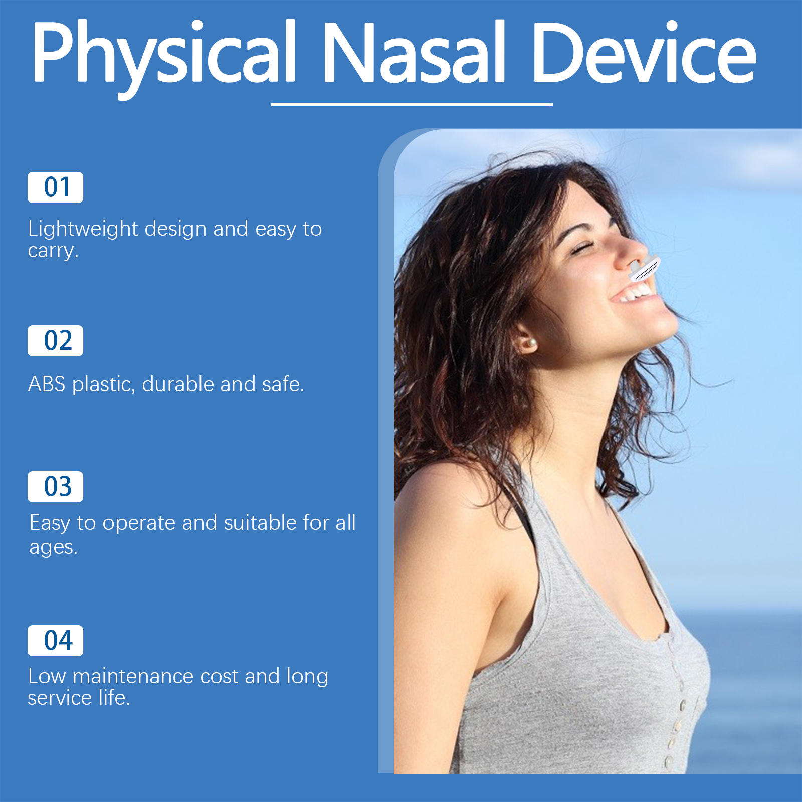 Our nasal care unit contains ABS plastic. It can quickly relieve nasal obstruction and improve breathing comfort. Its use is simple: simply insert the device into both nostrils, then exhale and inhale normally. Use it 15 minutes a day. And it can enhance the structural stability of the product.