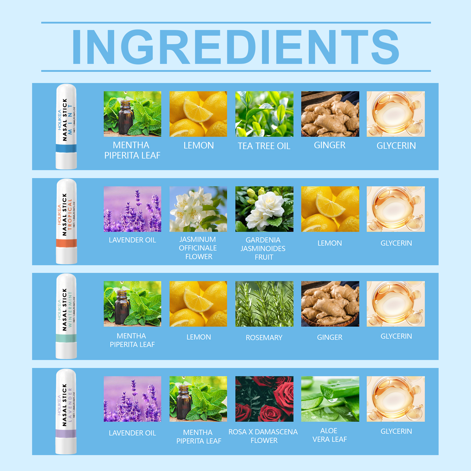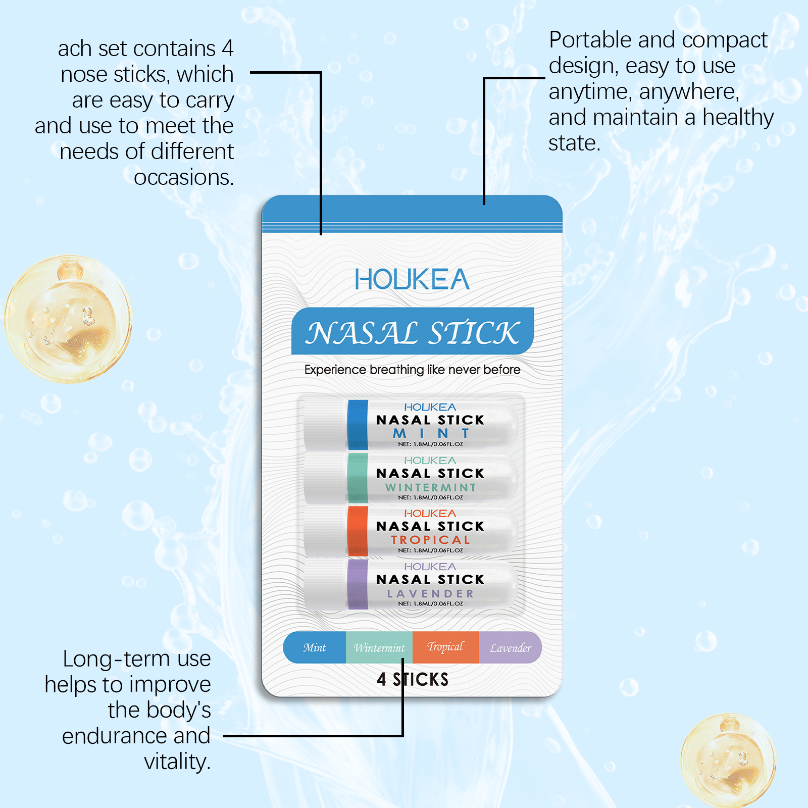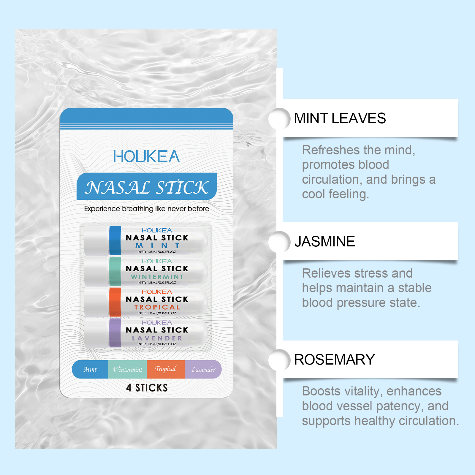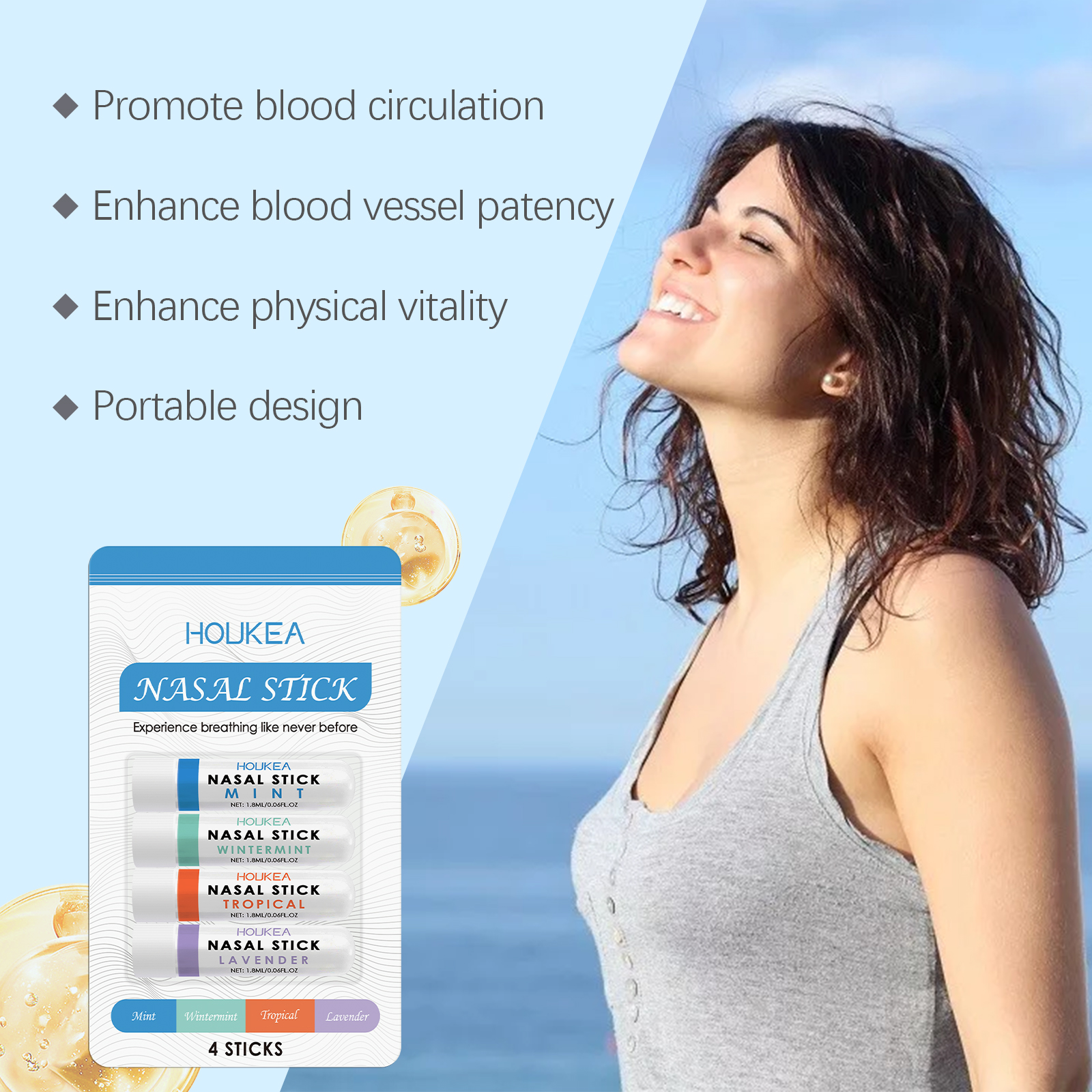 Our nose care kit contains minty: mint leaves, lemon; Tropical: lavender oil, jasmine; Winter mint: rosemary, ginger; Lavender: Damascus rose, aloe leaf. It can effectively promote blood circulation throughout the body and enhance body vitality. Its use is simple: Place the product 5-8 cm away from the nose. Take 3-5 deep breaths and exhale slowly. It also helps maintain healthy blood pressure levels and reduces the effects of blood pressure fluctuations.