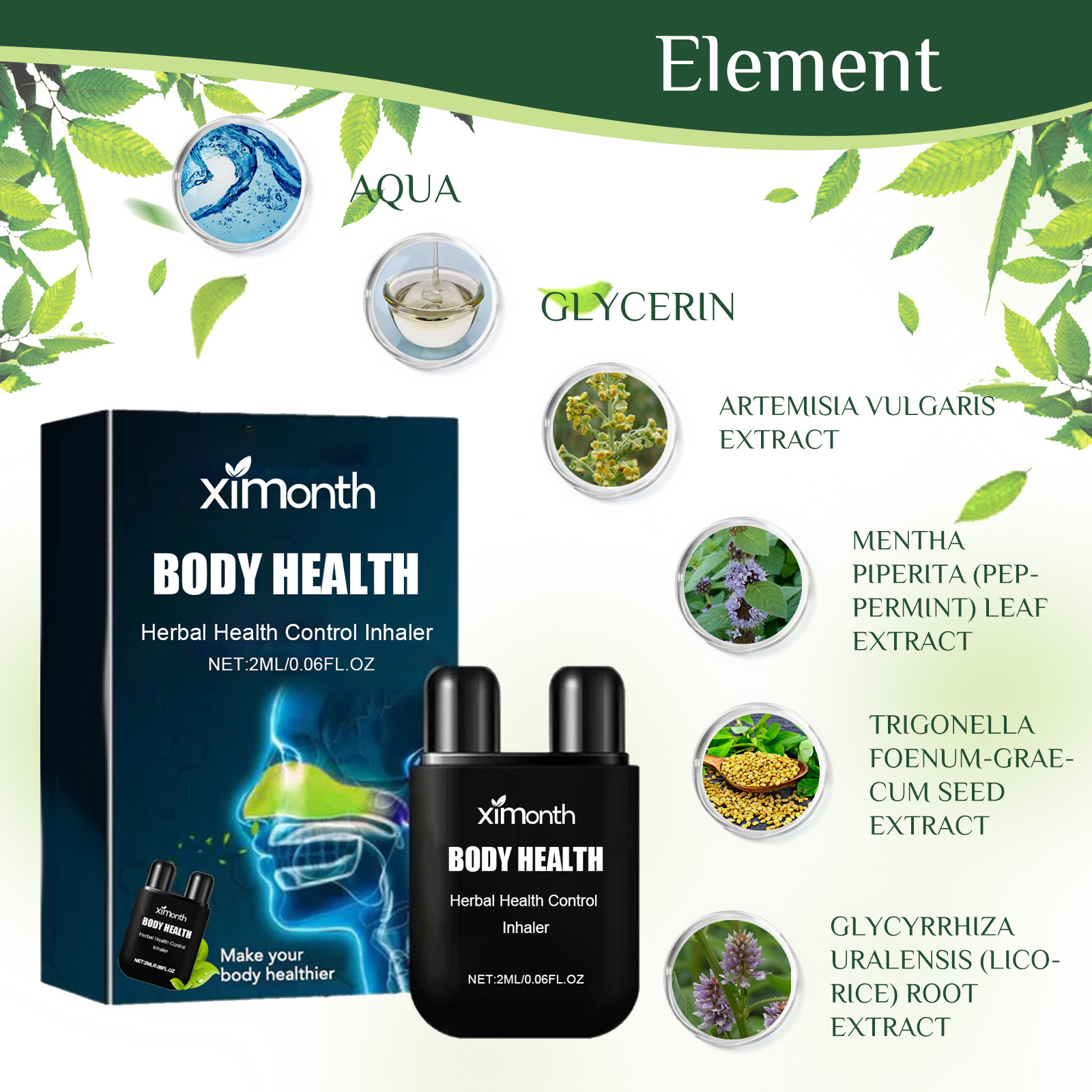 Our sniffer sticks contain glycerin, wormwood extract and peppermint extract. It can effectively help you adjust the balance of various elements in your body, improve vision, and maintain your overall health and quality of life. Lower blood sugar levels, increase insulin secretion, and relieve diabetes symptoms. Its use is simple: simply unpack and begin to experience the power of nature and embark on a journey of total health; Inhale close to the nose, adjusting the depth as needed, and inhale gently. Sniffle bars are rich in natural antioxidants that help neutralize free radicals and strengthen the body's defenses; With each spray, you can experience the gentle but powerful effects of artemisia, promoting overall health.
