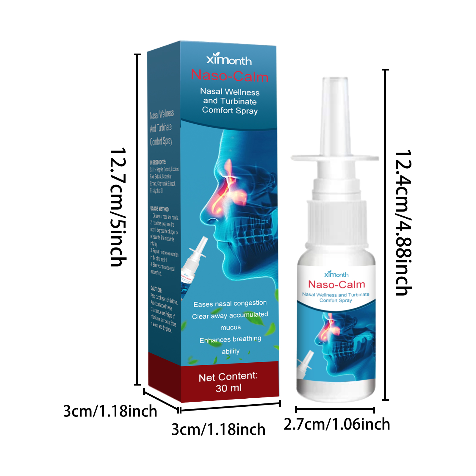 Our nasal spray contains saline, Nepeta extract and licorice root extract. It relieves congestion and excess mucus in the nasal passages, soothing the sinuses by draining excess mucus from the nasal passages and making breathing easier. The way to use it is simple: 1. Clean your nose and hands. 2. Insert the spray into the nostril and depress the piston to release the fine mist as you inhale. 3. Repeat in the other nostril. 4. Blow your nose to remove excess fluid. And can relieve nasal congestion and excess mucus in the nasal passages, by draining the excess mucus in the nasal passages to soothe the sinuses and make breathing easier.