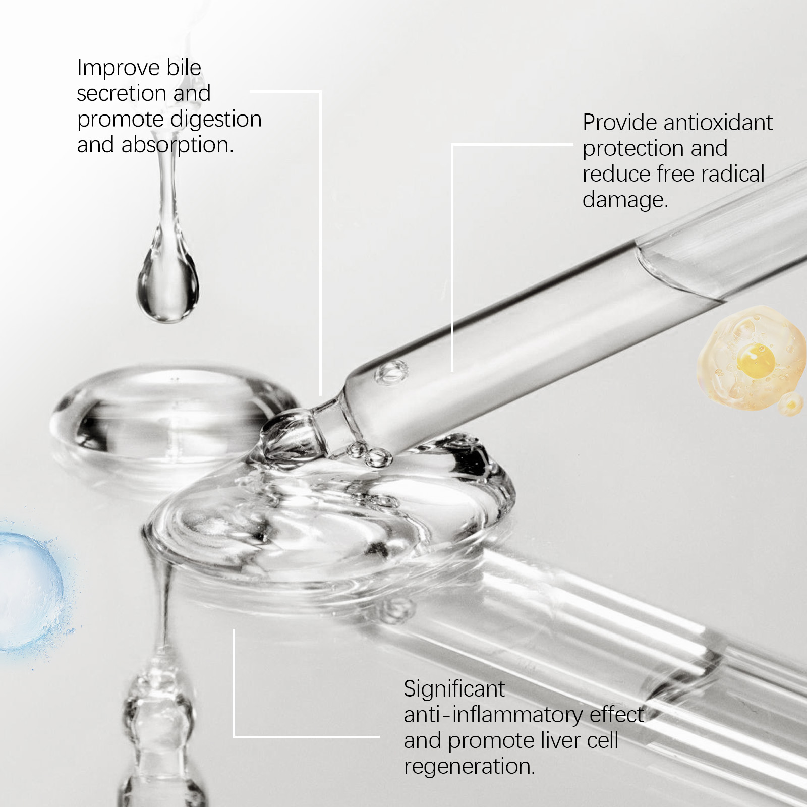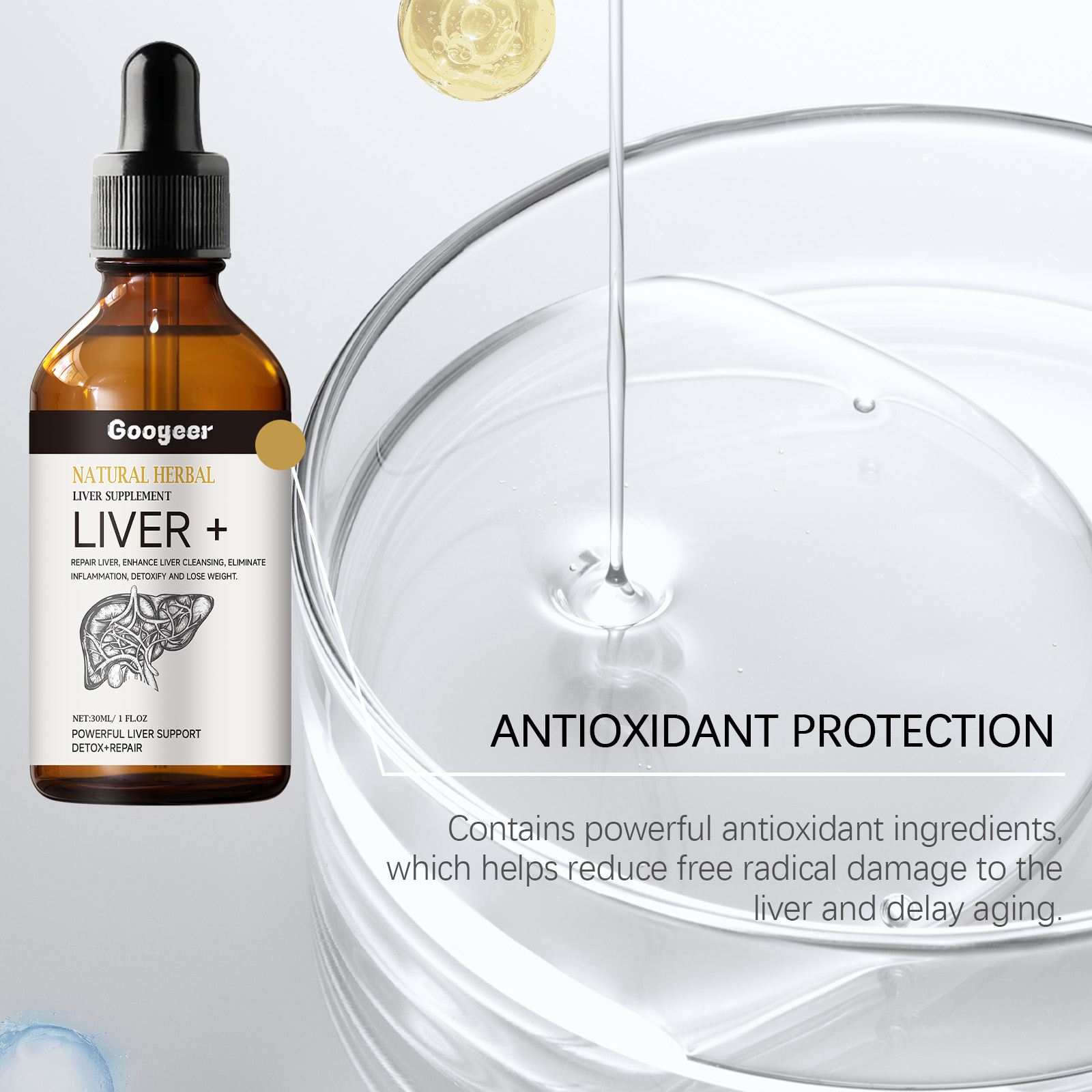 Our natural herbal liver tonic contains Chinese herbal extracts, gluconolactone, vitamin b1. It can help repair damaged liver cells, enhance the liver's ability to repair itself, and maintain liver health. The way to use it is very simple: shake it well before eating, 1-2 drops each time, 1-2 times a day. By improving bile production, it helps digest fat, promotes nutrient absorption, and maintains a healthy digestive system.