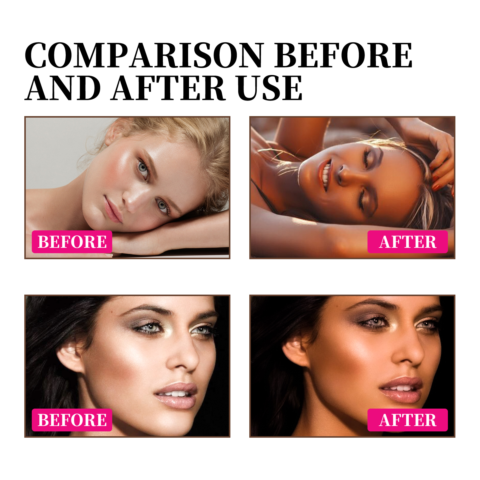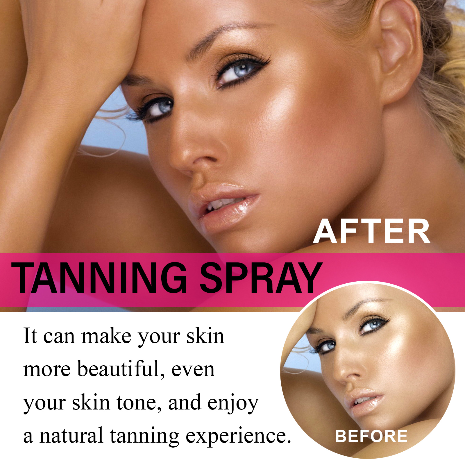 Our blackening spray contains coconut oil, glycerin and vitamins. It can make your skin more beautiful, even your complexion, and enjoy the natural tanning experience. Its application method is very simple: shake well before use, take appropriate amount of spray on the whole body skin, gently massage in circles and evenly apply. And can help black.