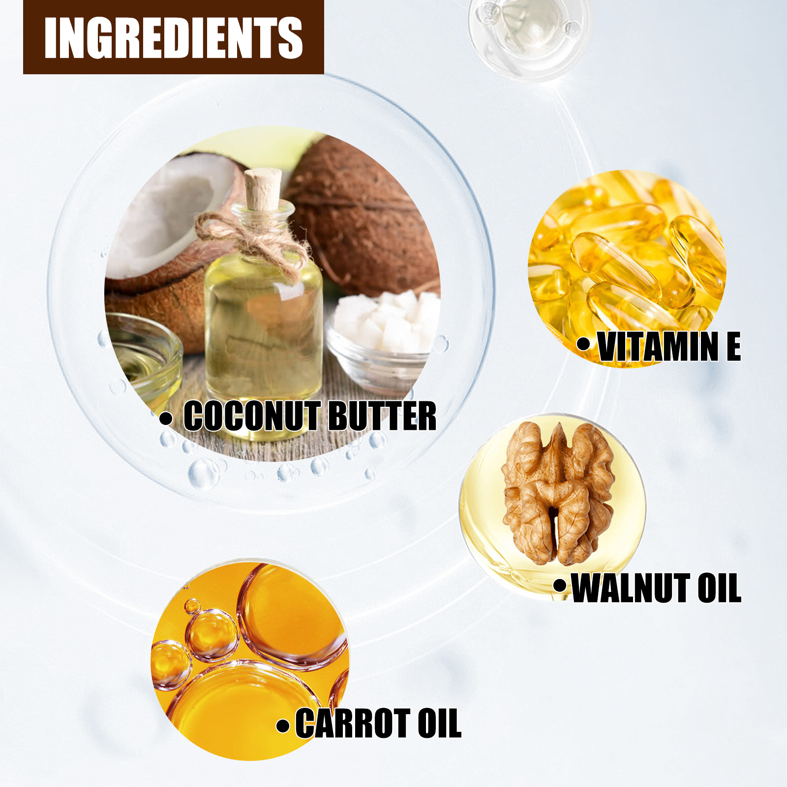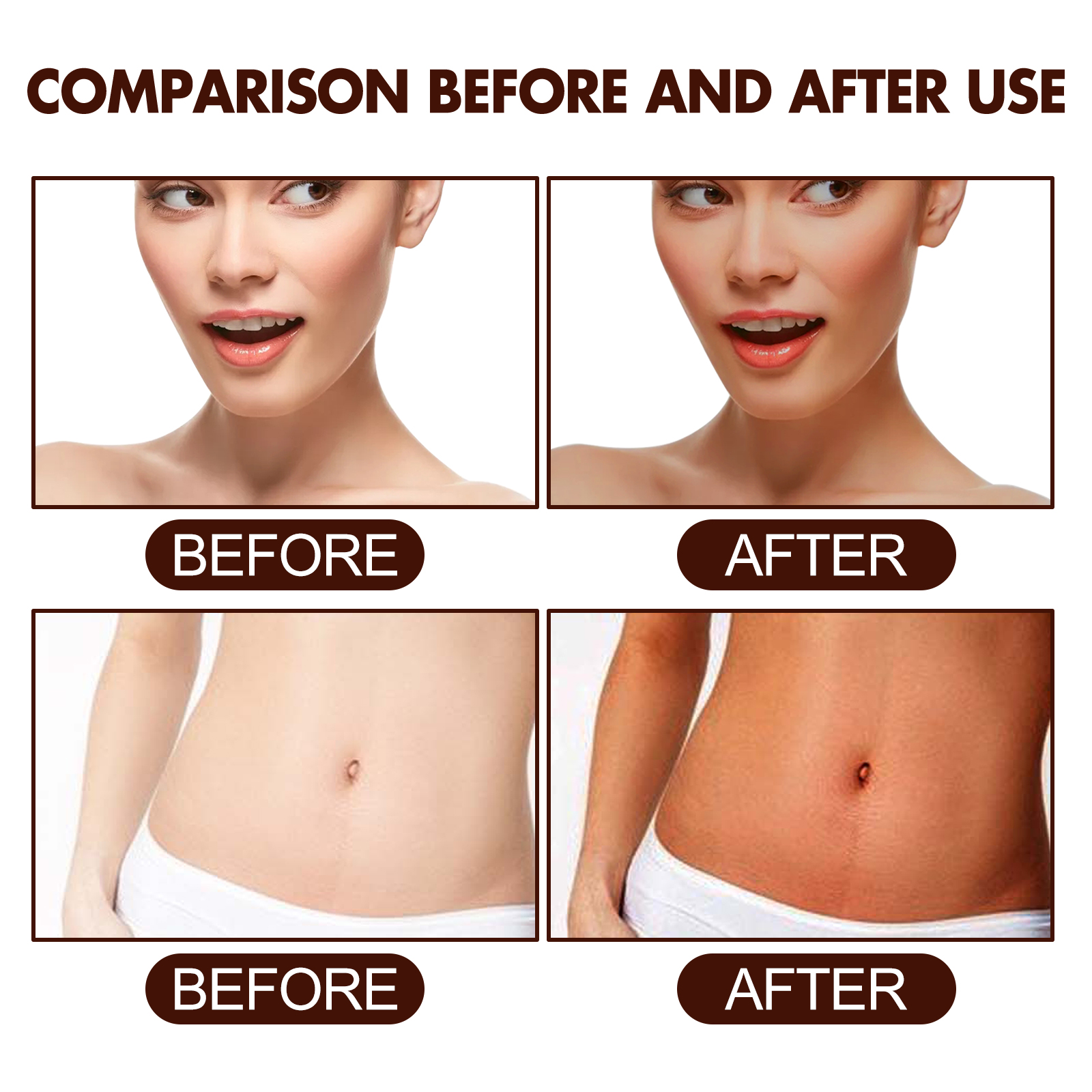 Our black cream contains cocoa butter, coconut oil, walnut oil. It accelerates tanning and provides a deep, rich, radiant tan while deeply caring your skin for an even tan. Its use method is very simple: in order to achieve an even effect, first exfoliate with a scrub before use, evenly apply the self-tanning gel to the whole body, reapply after swimming, wiping towels, sweating, it is recommended to use once every 2-3 days, after achieving the ideal skin tone, you can use 1-2 times a week to maintain the skin tone. Avoid your eyebrows, eyes and hairline when using. After use, it helps to moisturize the skin, reduce wrinkles, get an even tan effect, prevent skin aging caused by light, and make you more attractive.