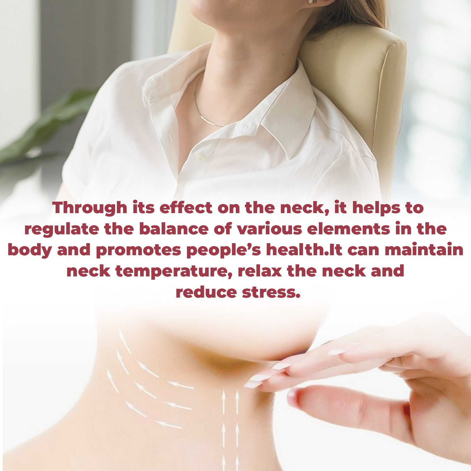 Our Health Neck Strap contain a composite knit, gel layer. It can help regulate the balance of various elements in the body through its effect on the neck, promote human health, maintain neck temperature, relax the neck, reduce stress, can stimulate neck acupuncture points, promote better blood sugar control. The way to use it is simple: open the neck strap, wrap it around your neck, and stick Velcro on it. Can stimulate the neck points, adjust the balance of elements in the body, relax the neck, relieve pressure.
