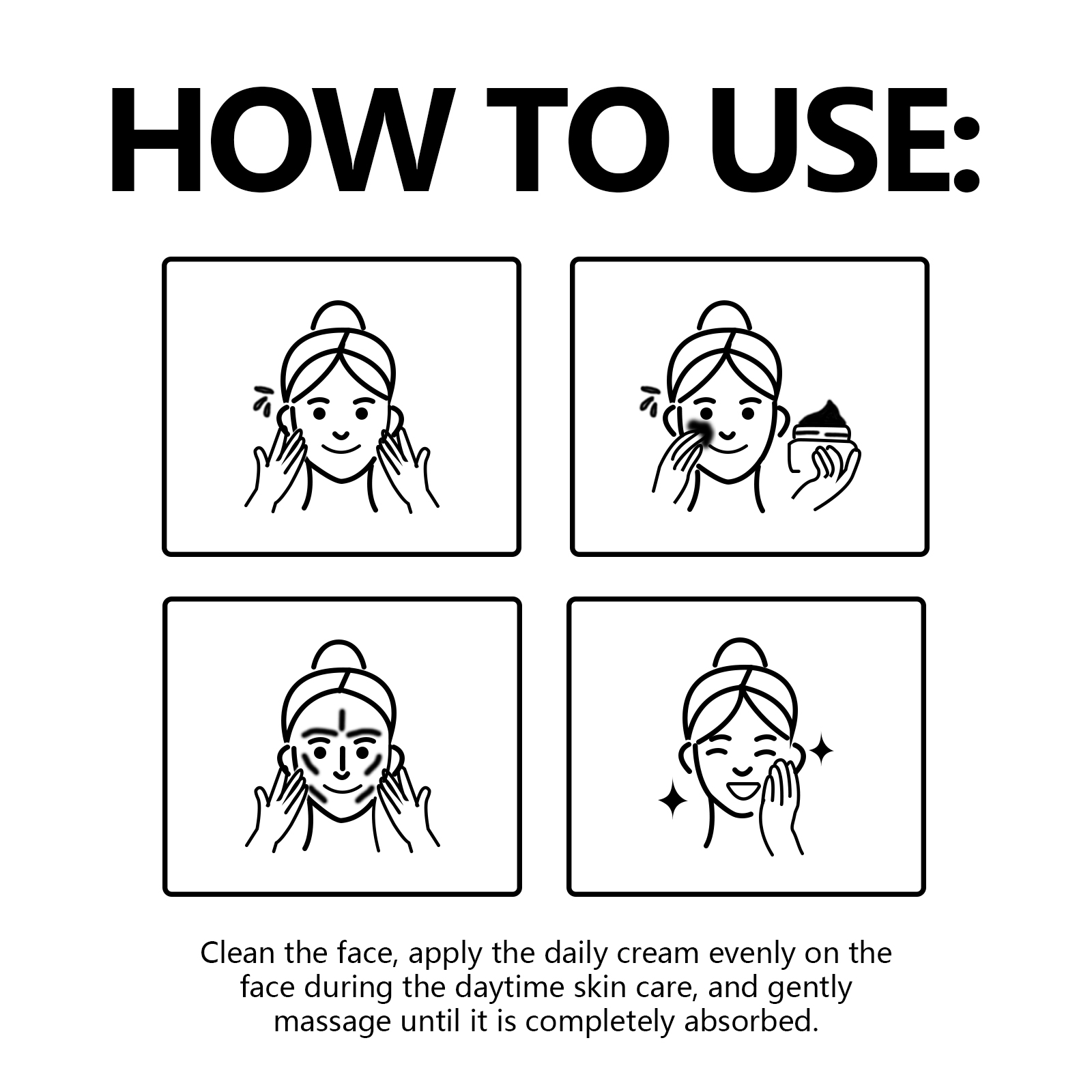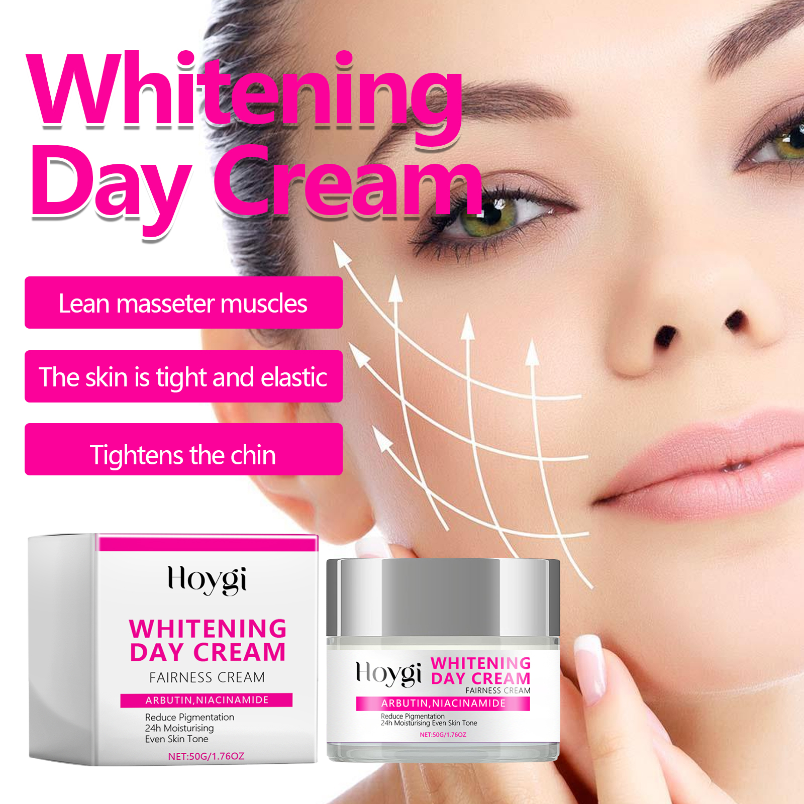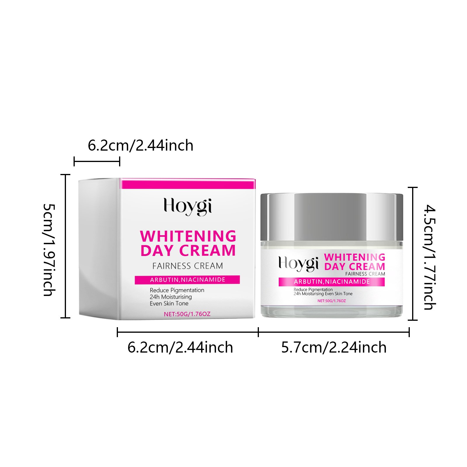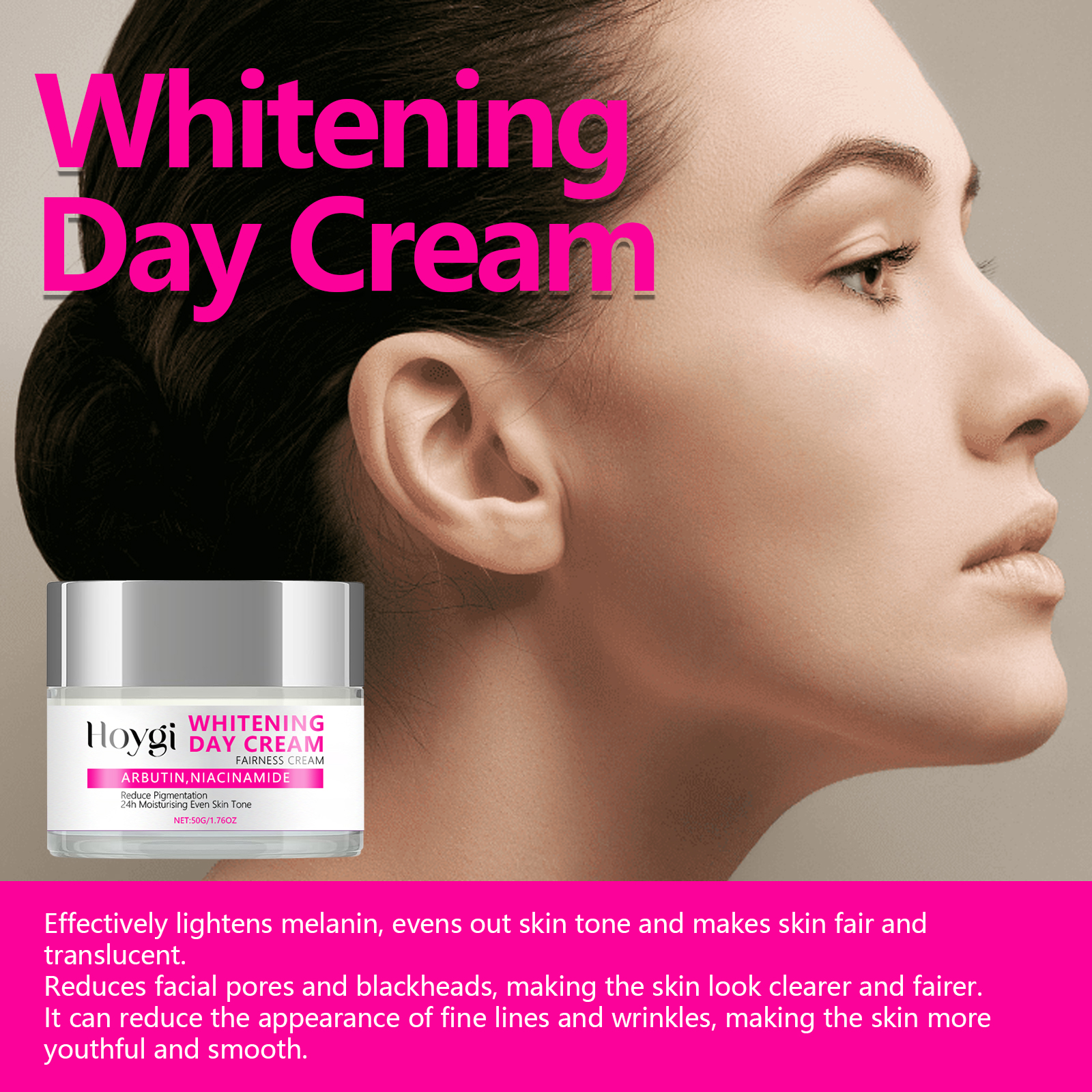 Our Whitening Day Cream contains glycerin, hyaluronic acid and nicotinamide. It can effectively dilute melanin, even skin tone, make skin white and translucent, reduce facial pores and blackheads, and make skin look clearer and fairer. The way to use it is very simple: clean the face, apply the day cream evenly to the face during the day skin care, and gently massage until completely absorbed. Can reduce the appearance of fine lines and wrinkles, leaving skin more youthful and smooth.