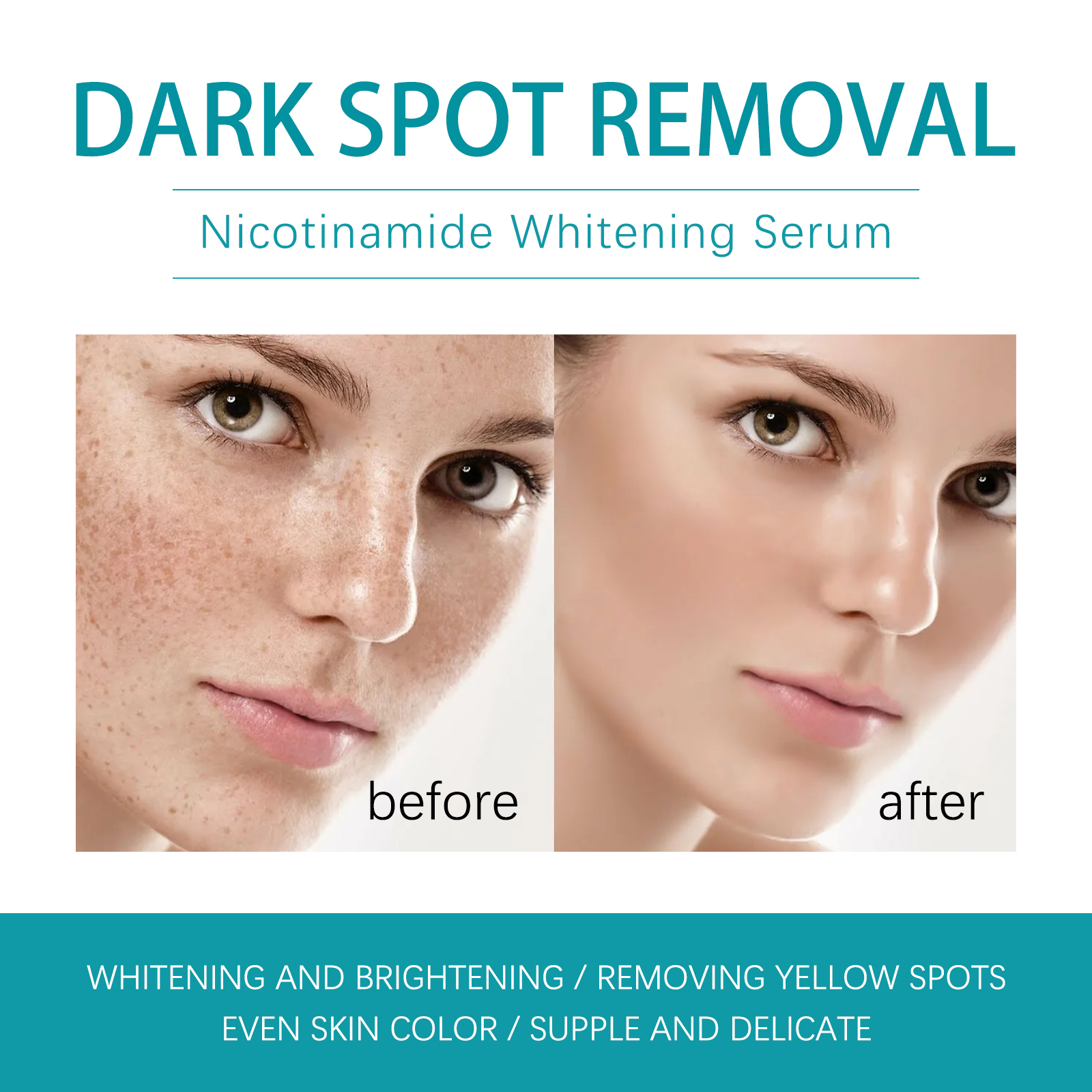 Our nicotinamide serum contains nicotinamide, 3-0-ethyl ascorbate, and betaine. It reduces melanin production and prevents the formation of new spots; Layer by layer to penetrate the melanin accumulation area, break down the stain; Form a water barrier on the skin surface to prevent dark spots from the source; Replenish the moisture needed by the skin and make the skin smooth and bright. The way to use it is simple: put the essence into the palm, take the right amount with the fingertips, and evenly apply it to the skin. You can add a few drops of essence to your foundation and BB cream to help moisturize and whiten your skin. Nicotinamide serum whitens and brighteners, reduces melanin growth and transfer; Helps to hydrate dry skin, reduce irritation and reduce skin irritation.