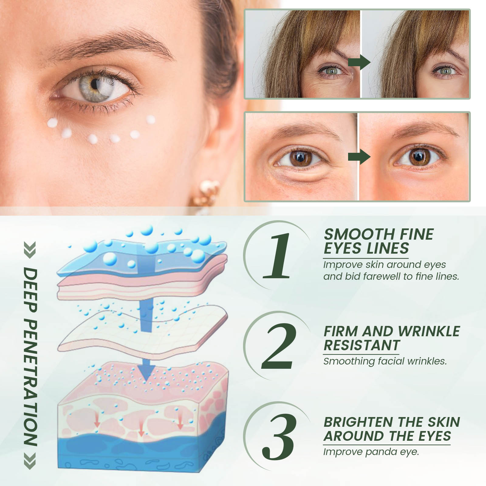 Our anti-aging eye cream contains glycerin, mineral oil, glycerin stearic acid. It can improve the eye skin, fade dark circles, bags under the eyes, eliminate edema, reduce wrinkles and crow's feet, and tighten the skin around the eyes. Its application method is very simple: clean and dry the skin around the eyes, take appropriate amount of this eye cream, apply to the skin around the eyes, pat until absorbed, use twice a day. It can smooth the facial wrinkles, brighten the skin around the eyes, repair the delicate skin of the eyes, and make the eyes bright, firm and young.