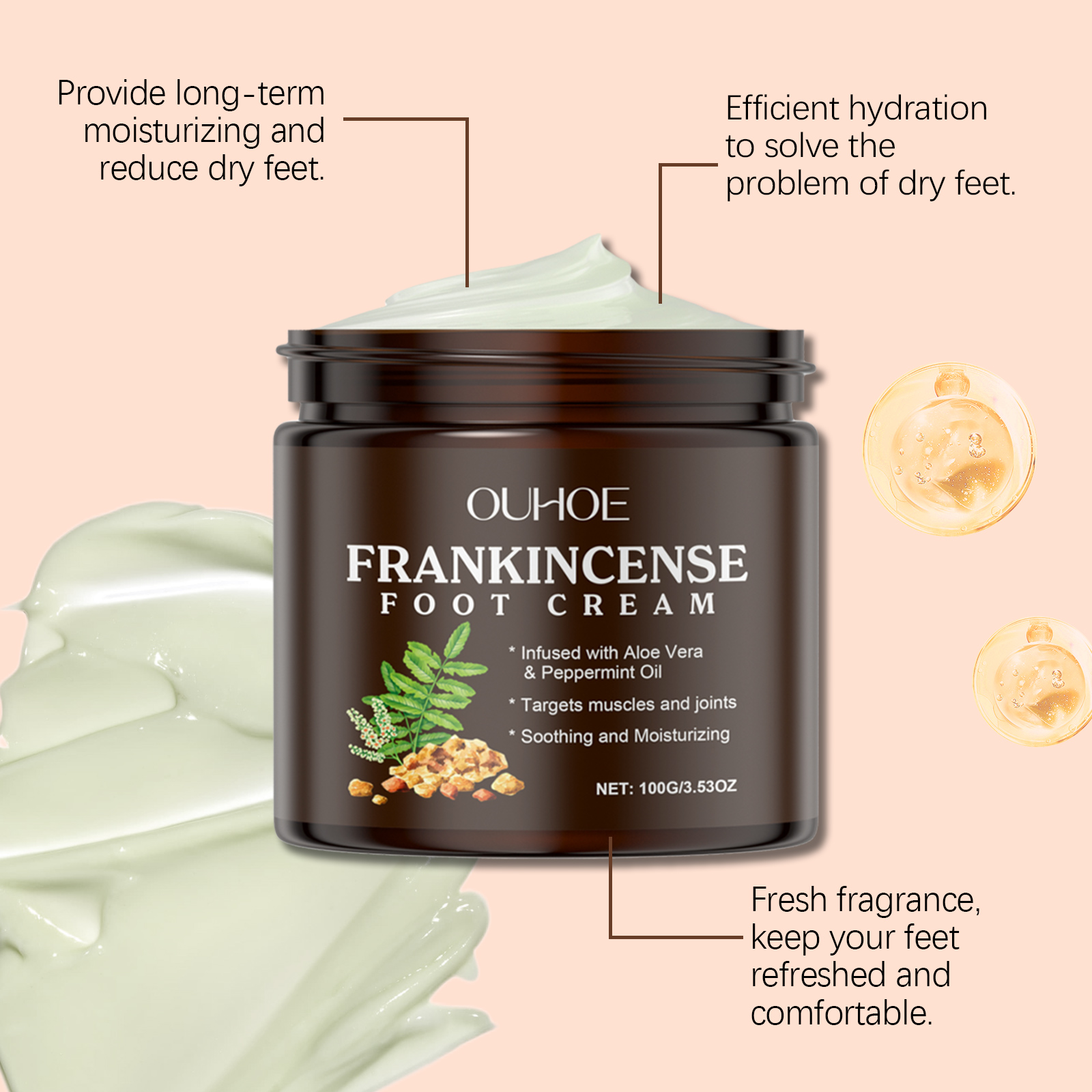 Our nourishing and moisturizing foot cream contains glycerin, aloe vera leaf extract and peppermint oil. It traps moisture and helps keep the skin of your feet soft and supple. Add peppermint oil for a cool, comforting feel. The way to use it is simple: clean your hands and feet. Apply appropriate amount of the product evenly on the foot skin, gently massage with your hands to promote absorption. And can bring comfort, relieve tired feet. The formula is easy to absorb and non-sticky after use. The formula is gentle and suitable for all skin types.