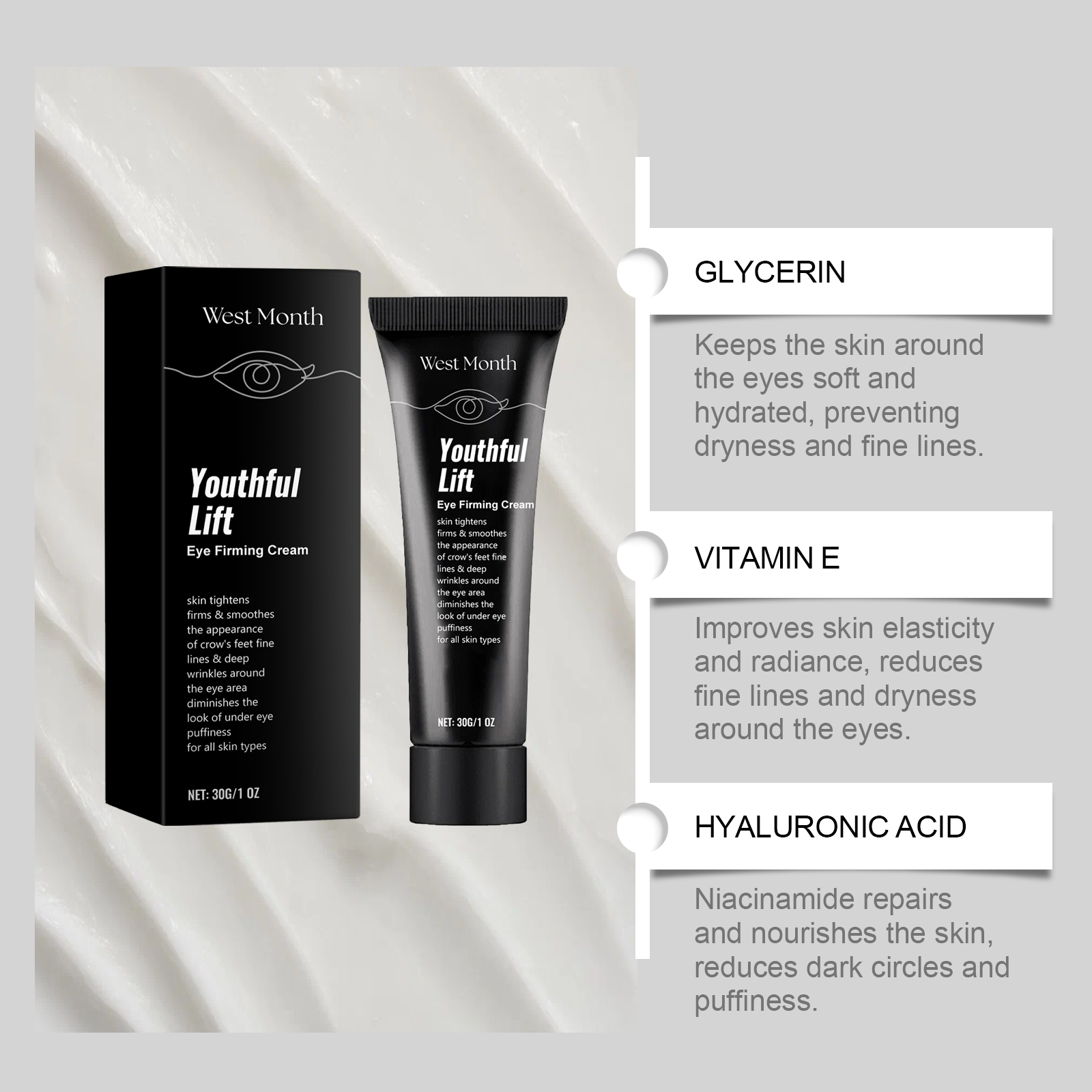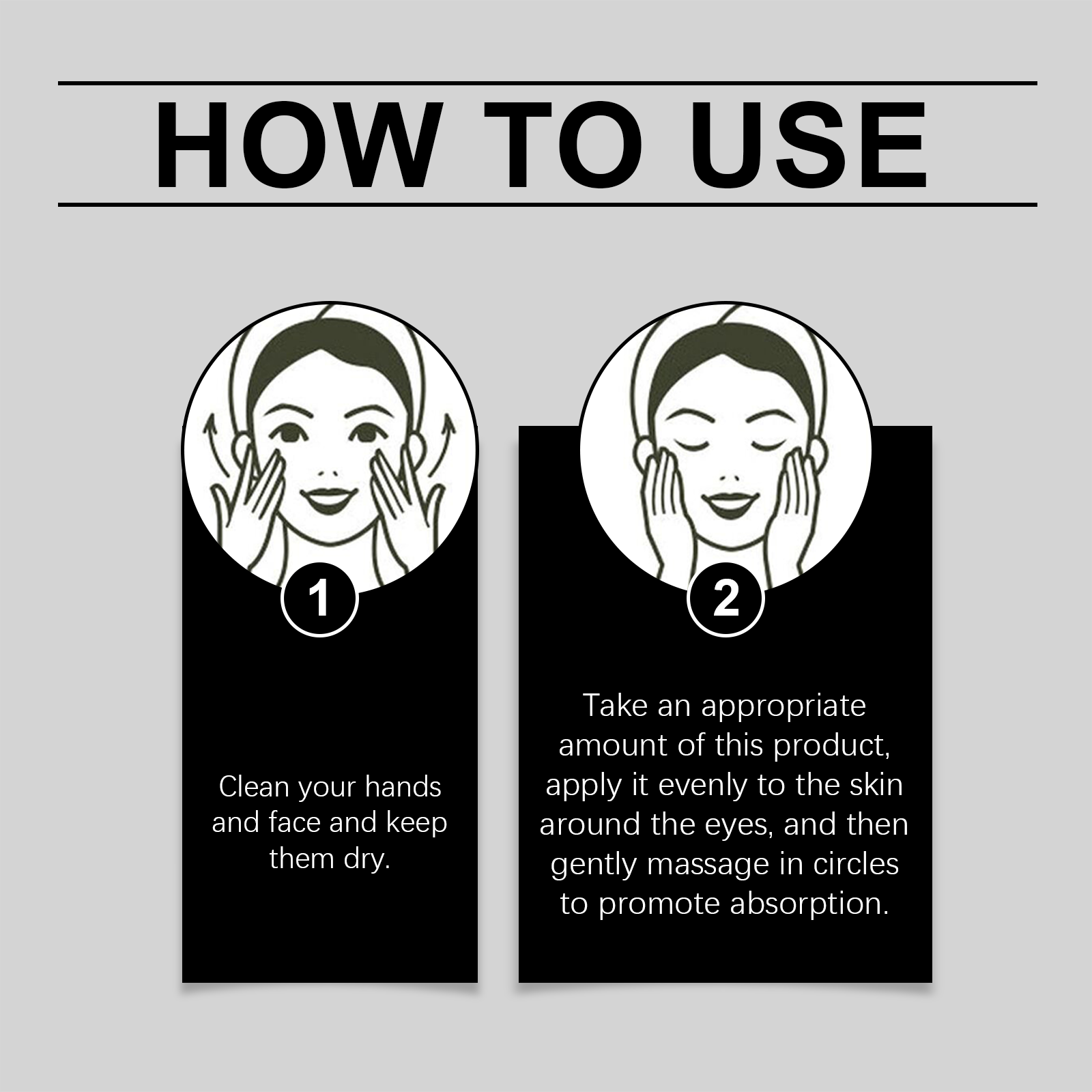 Our Nourishing and repairing eye cream contains hydrolyzed collagen and vitamin E. It can fade fine lines, even skin tone, restore the glow around the eyes, reduce bags under the eyes, tighten the bags, and restore firmness. The way to use it is simple: clean your hands and face to keep them dry, take a proper amount of this product, evenly apply it to the skin around the eyes, then gently massage in circular motions to promote absorption. It's fast, it's efficient, it's light.