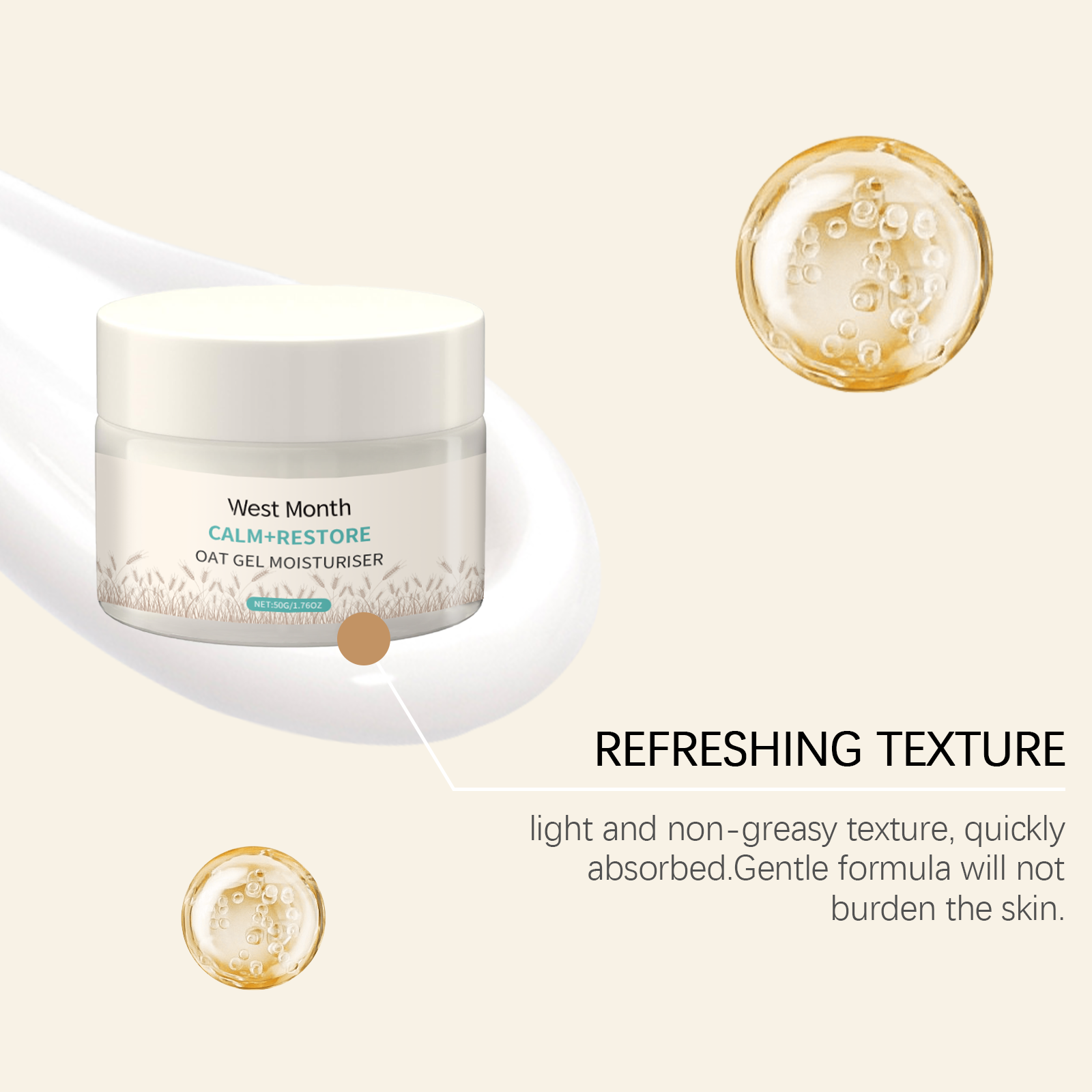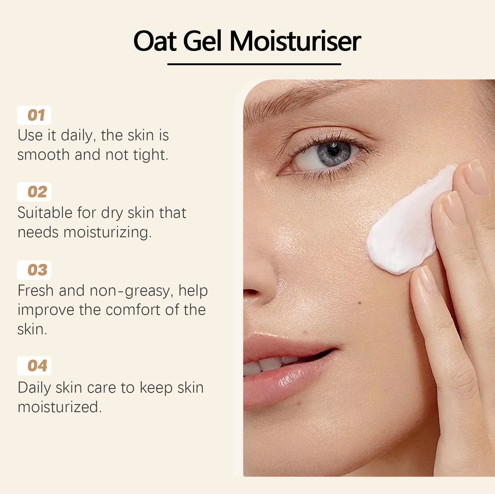 Our oat moisturizer contains glycerin, oat extract, hyaluronic acid. It rehydrates the skin and keeps it soft and supple. Relieve the discomfort caused by dry skin and make skin softer and more comfortable. The way to use it is simple: 1. Clean and dry the skin. 2. Apply appropriate amount of the product evenly on the face. 3. Gently massage until absorbed. Lock in moisture for a long time, keep skin moisturized all day long, and bid farewell to dryness.