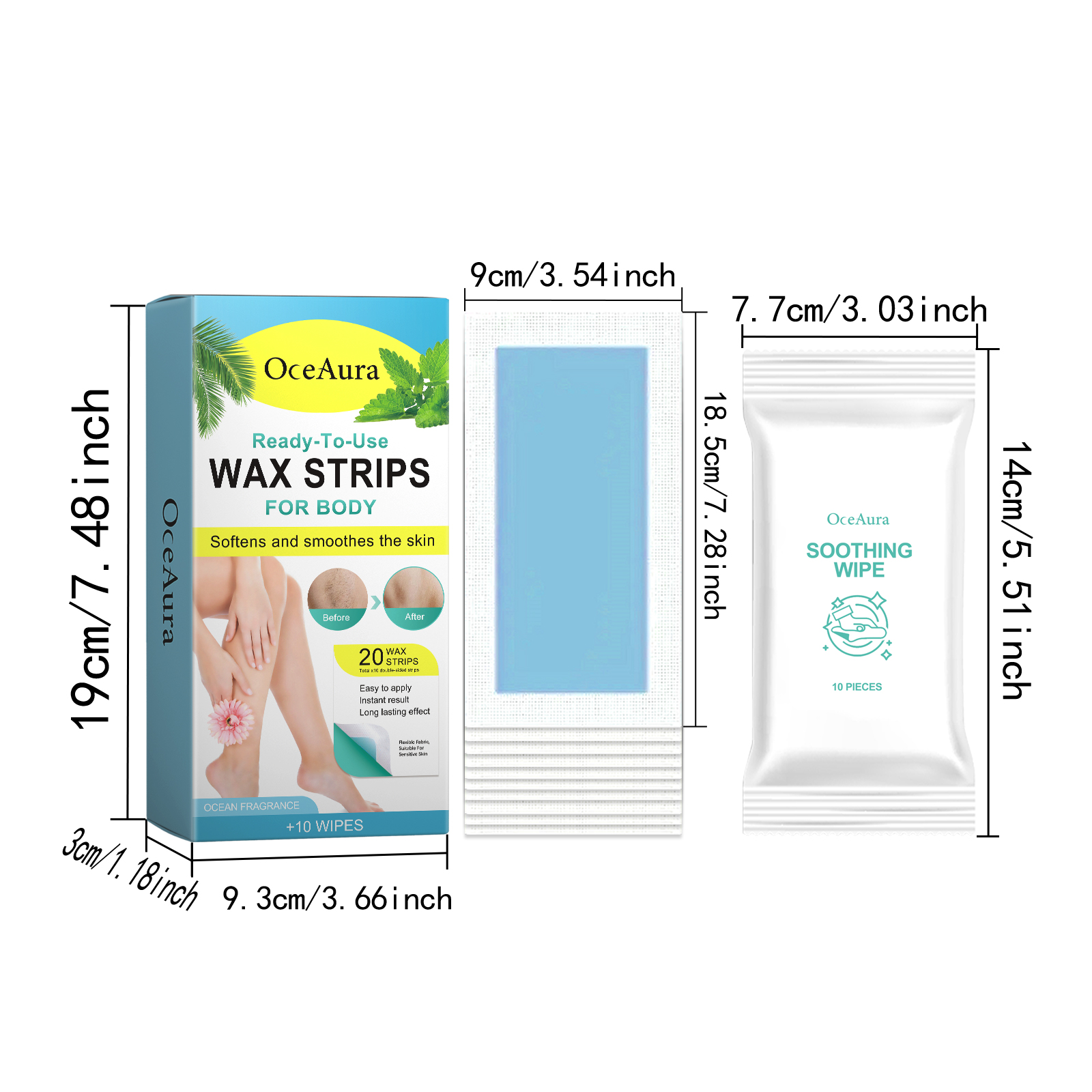 Ocean Scent Hair Removal Wax Strips Gentle Non Irritating Smooth Hair Removal