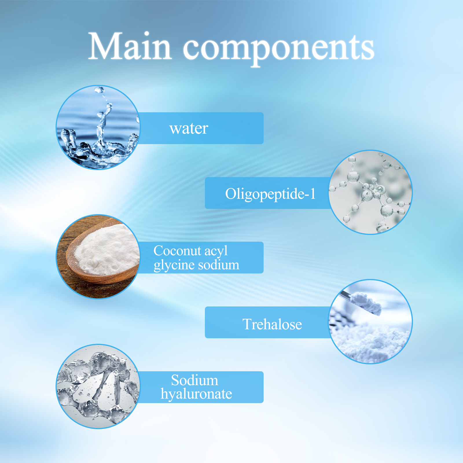 Our oligopeptide Mini Bubble Cleansing essence contains trehalose and sodium hyaluronate. It gently cleanses the skin and balances water and oil content. Its use method is very simple: 1. Wash your hands first; 2. Rinse and moisten the whole face with warm water; 3. Pour one serving or one soybean grain of cleaning flour into the palm, add water to make a foam, and gently wash the face with the finger in a circular manner; 4. Rinse the foam completely with water. And can have a delicate rich foam, clean the skin deep dirt.