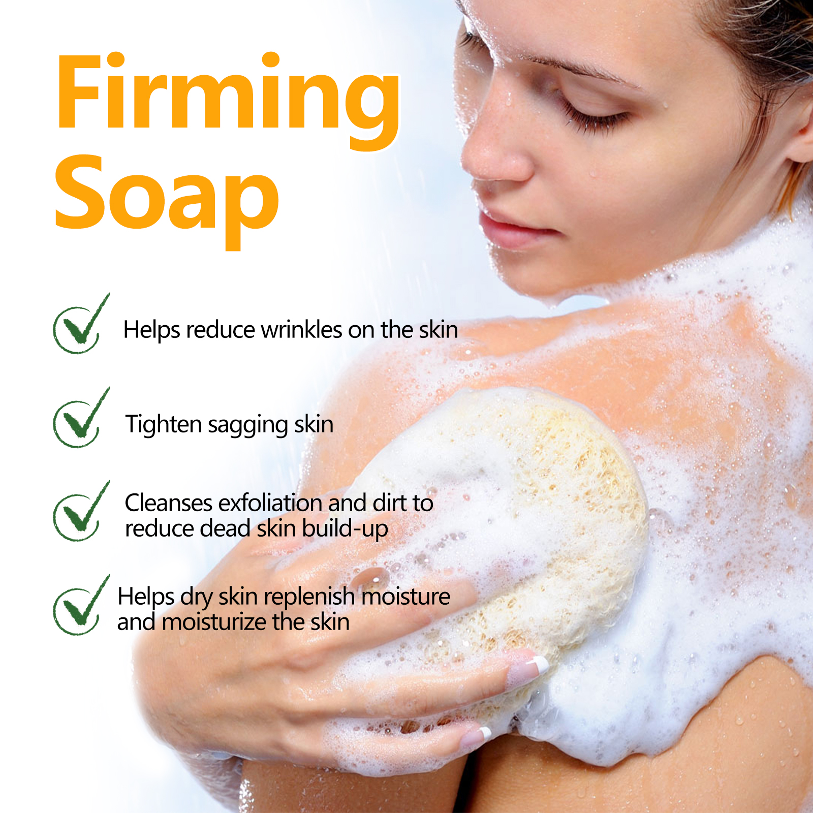 Our orange peel body firming soap contains niacinamide mononucleotide, glycerin, and shea butter. It can help dry skin to replenish moisture, moisturize the skin, make it softer, suitable for all types of skin, tight buttocks and thighs skin, make the appearance level more beautiful. Its application is simple: wet the skin with warm water, rub the soap with the palm of the hand until it lathers, gently massage and clean the skin, and finally rinse with water. And can shape, slim body.