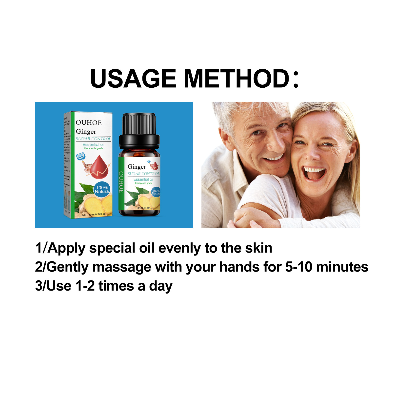 Our Sugar Relief essential oil contains water, ginger and ginseng. It can regulate blood sugar levels by stimulating insulin secretion and reduce insulin resistance; Improve blood circulation; Promoting overall health; Reduce the discomfort associated with high blood sugar. Its use method is very simple: 1. Evenly apply special oil on the skin; 2. Gently massage with hands for 5-10 minutes; 3. Use 1-2 times daily. Tangshu care essential oil regulates blood sugar; Promote glucose metabolism; Reduce intestinal glucose uptake and increase liver glucose processing; Easy to carry.