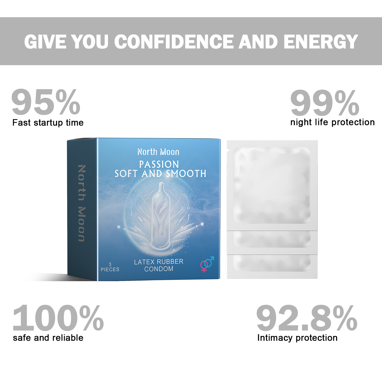 Our Latex Rubber Condom contain latex rubber. It can help men release the hidden power within them, take the experience of intimacy to new heights, and help men regain their confidence. The way to use it is simple: check the package for damage before use, make sure the condom is not expired, and then carefully tear along the edge of the package, avoid using sharp objects to avoid damaging the condom. Make sure the condom is facing the right way, with the curled edges on the outside, squeeze the air from the top of the condom to prevent it from breaking during sex, then put the condom on your private area and remove it after use. Can revitalize and restore masculinity, and solve the problem of erectile dysfunction.