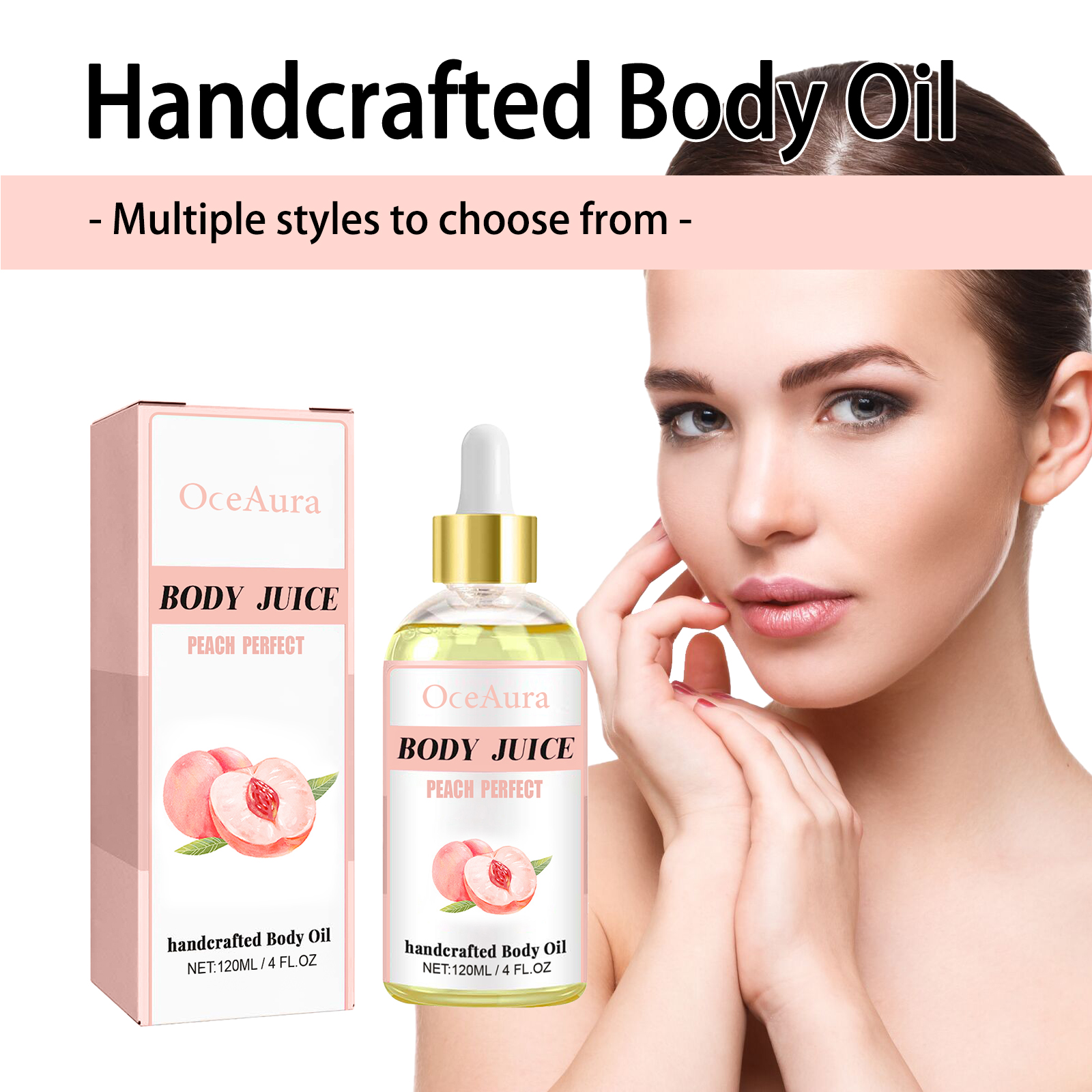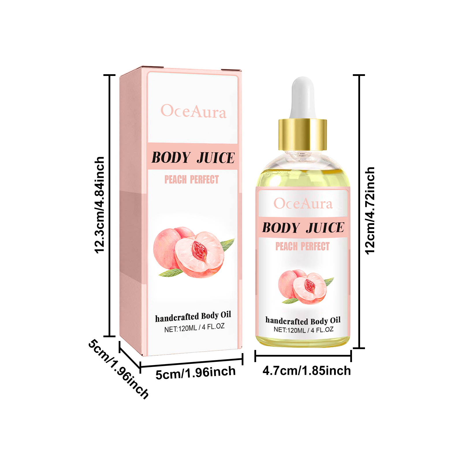 Our peach Body care oil contains tocopherol (vitamin E), glycerin, and peach fruit extract. It can deeply moisturize the skin, replenish moisture, effectively relieve dry skin, and make skin soft and moist, help to increase skin elasticity, and strengthen skin firmness. Its application method is very simple: clean and dry the skin, apply appropriate amount of this product evenly to the body skin, gently massage until completely absorbed. It relieves muscle fatigue and makes skin feel more relaxed and comfortable.