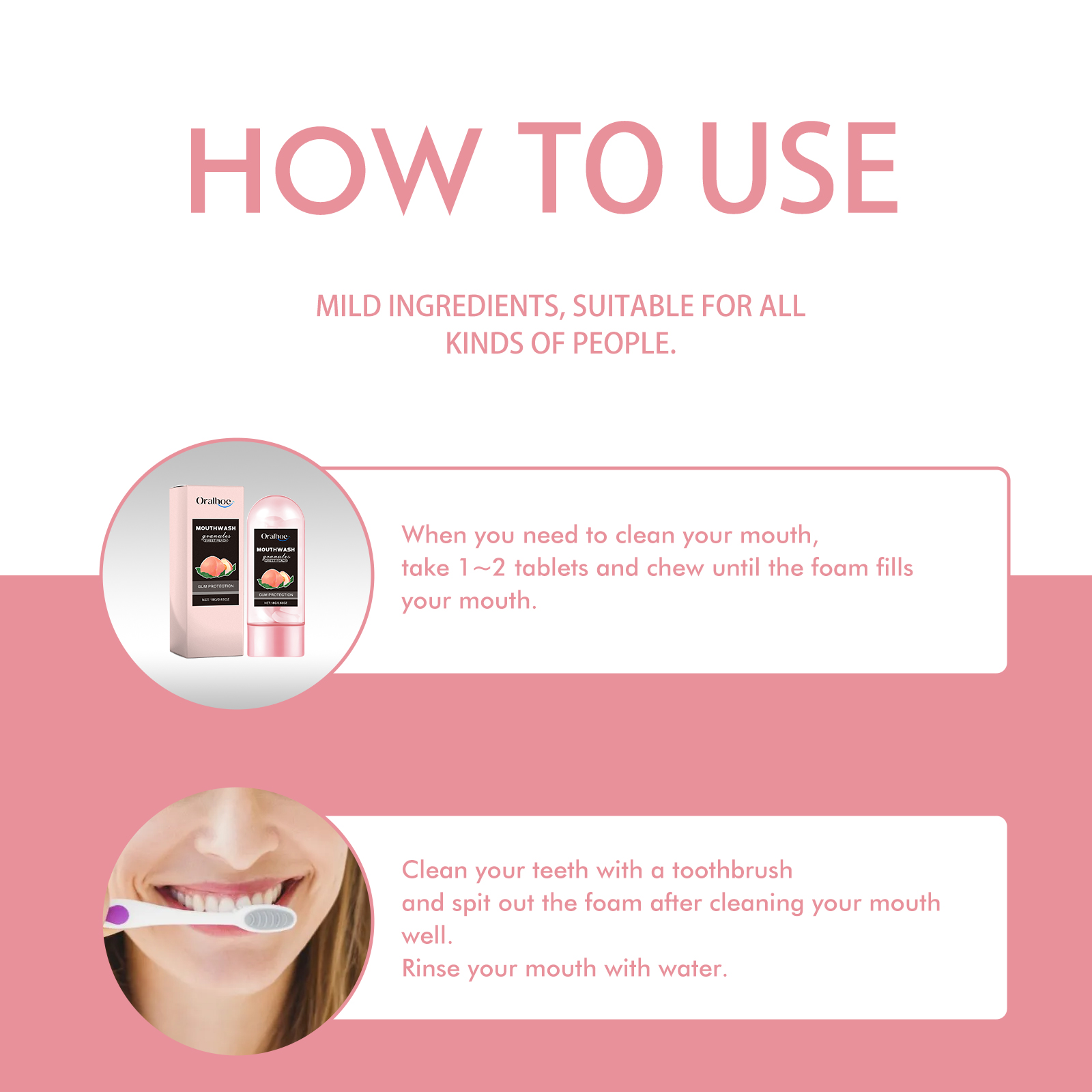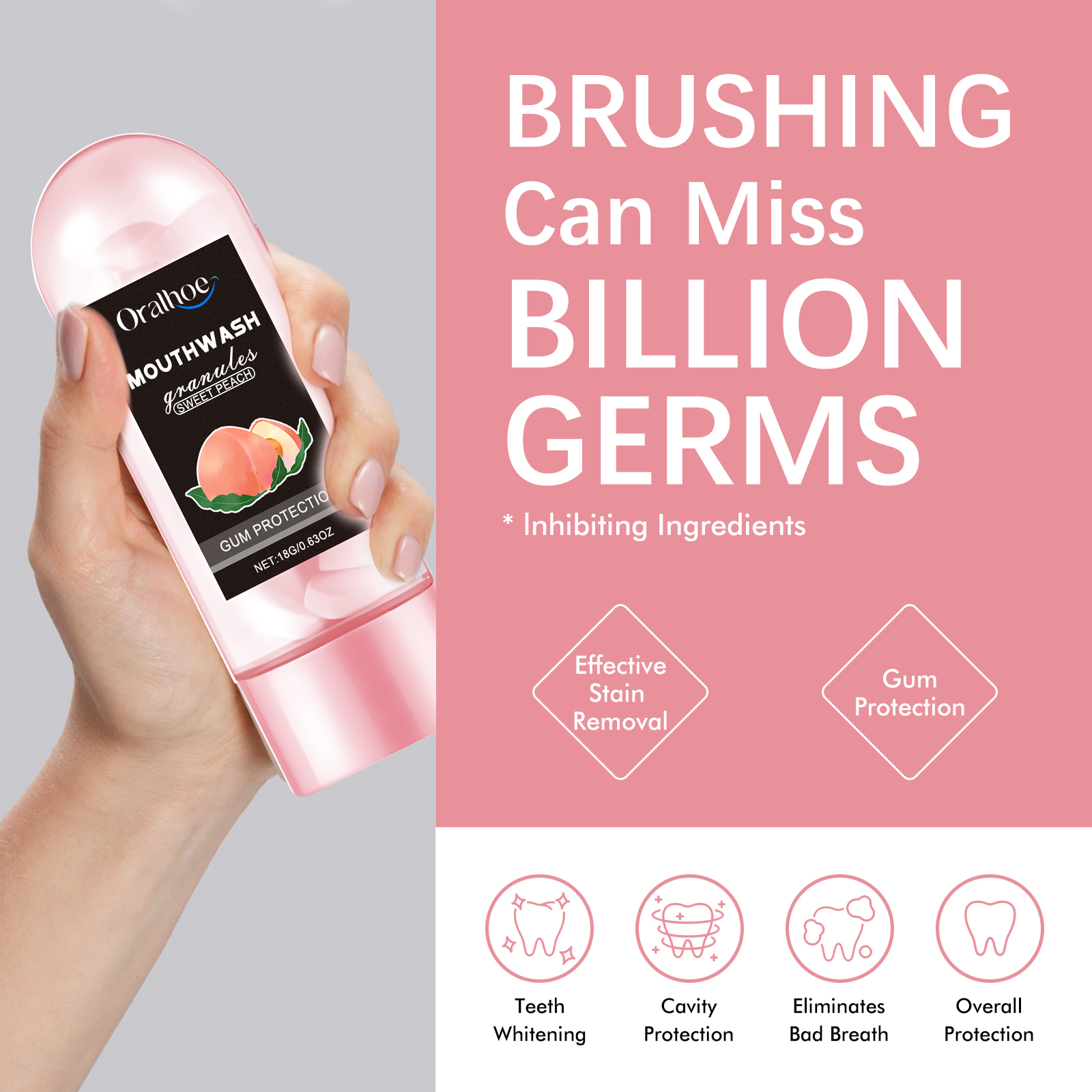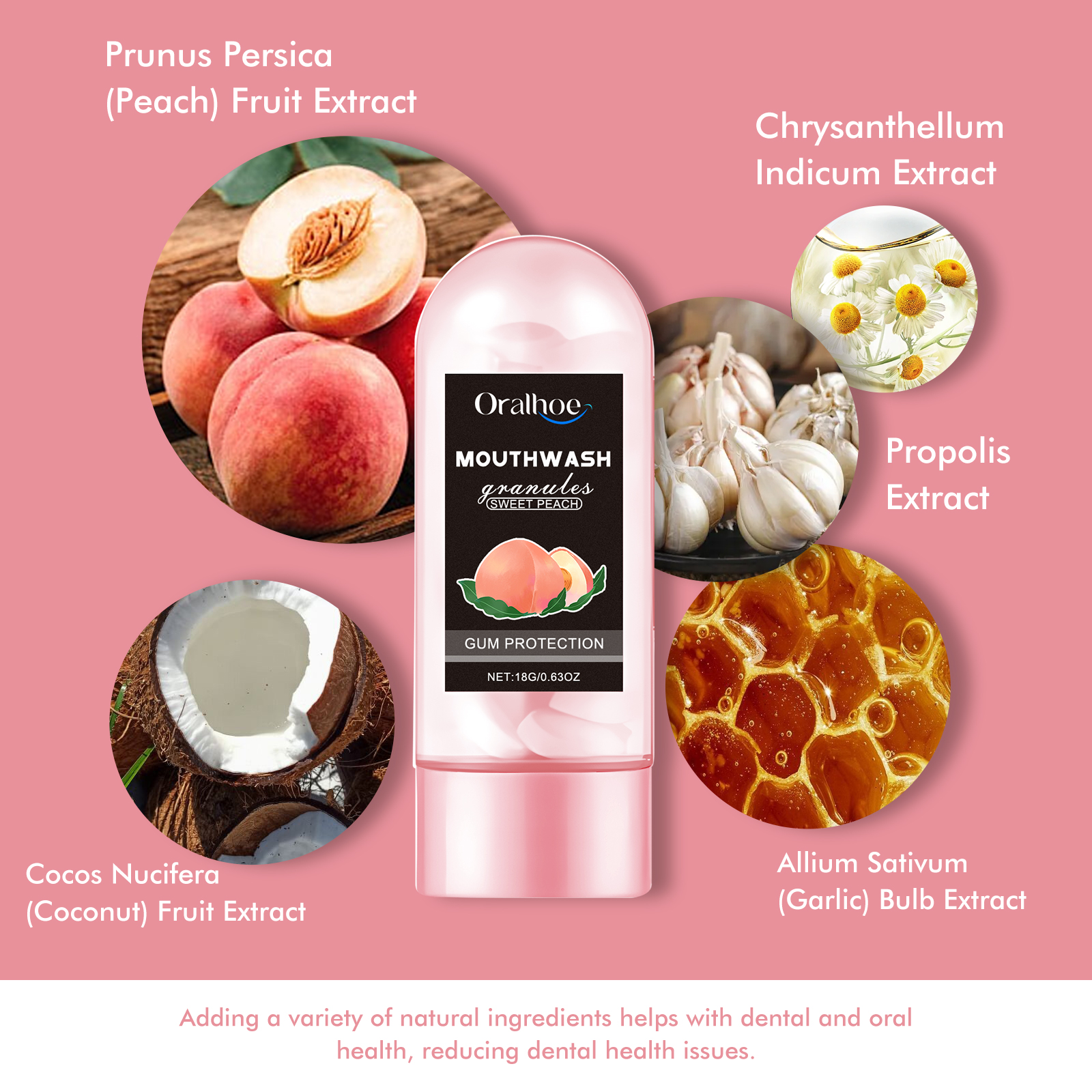 Peach Flavor Mouthwash Granules Fresh Breath Lasting Fragrance Cleans Gums Portable Mouthwash Granules
