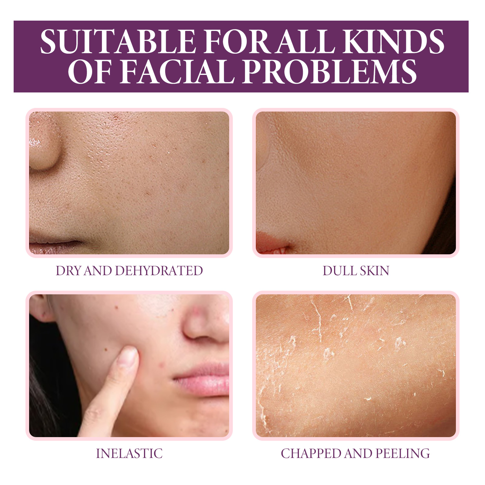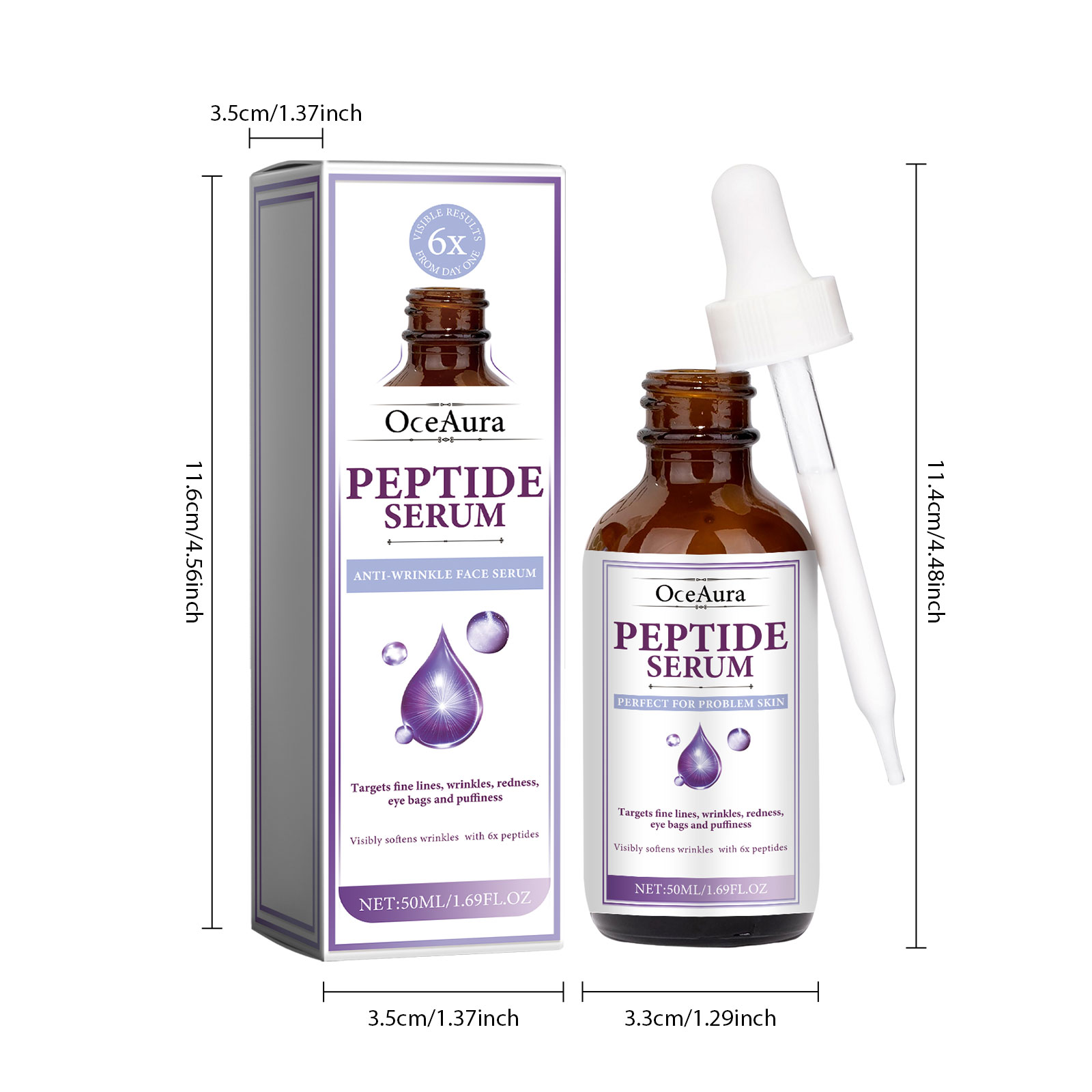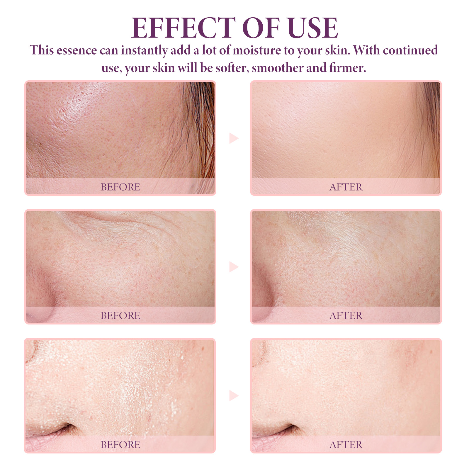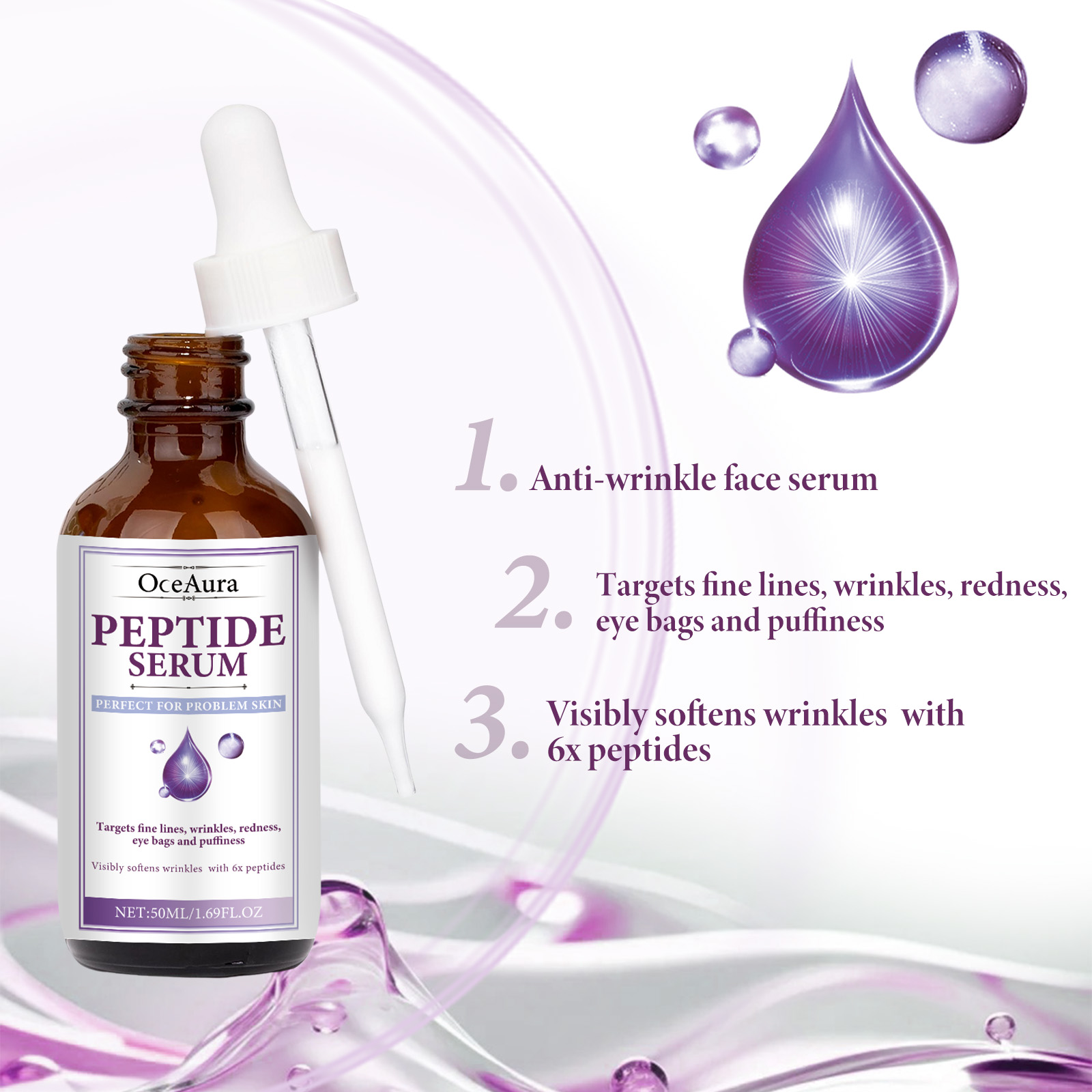 Our Peptide Serum contains Acetyl Hexapeptide-8, Collagen, Rubus Villous (Blackberry) Fruit Extract. It can reduce the appearance of premature aging, improve skin elasticity, restore collagen in the skin, significantly smooth the appearance of rough skin, plump the overall complexion, and restore areas prone to sagging, dark spots and wrinkles. Its use method is very simple: after cleansing and toning, take appropriate amount of essence evenly apply to the face skin, gently massage with the hand to absorb. It can deeply moisturize the skin, reduce dryness and roughness, and keep the skin hydrated.
