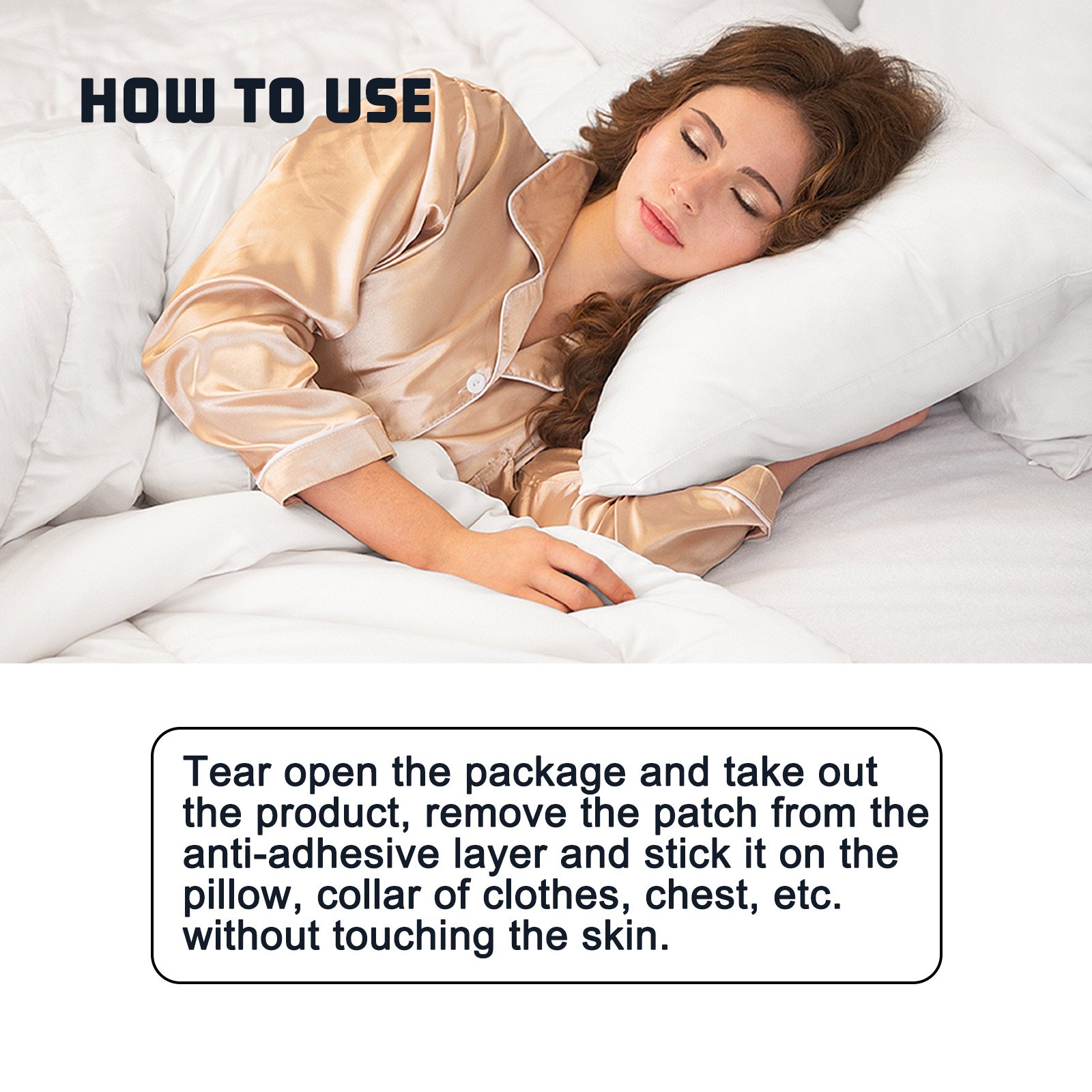 Our Night Patch contain non-woven fabric. It can improve sleep quality, reduce insomnia and dreaminess, help you relax, fall asleep quickly, and enjoy a good and comfortable sleep all night. Its use method is very simple: tear the package to take out the product, tear the product from the anti-stick layer and stick it on the pillow, collar, chest, etc., do not contact the skin directly. Suitable for the elderly, people affected by chronic stress, people affected by jet lag, night shift workers and people who need sleep during the day.