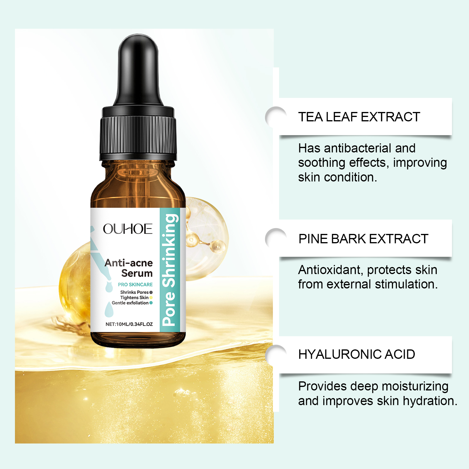 Our pore treatment serum contains hyaluronic acid and aloe vera extract. It provides long-lasting moisture and keeps skin soft. Its application method is very simple: 1. Clean facial skin and keep skin dry. 2. Take proper amount of serum and evenly apply it to the face. 3. Gently massage until fully absorbed. It can also smooth the skin and adjust the pores.