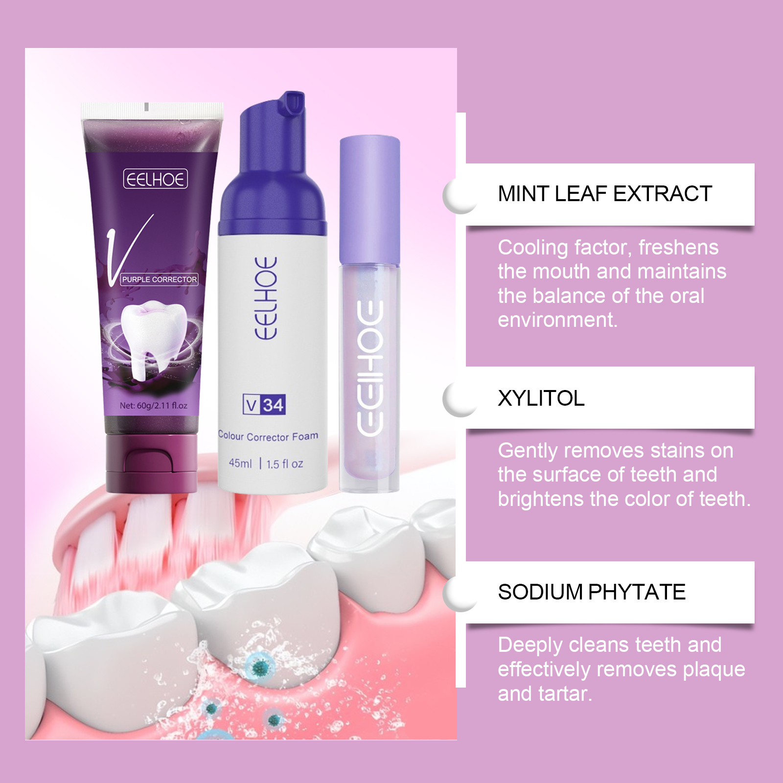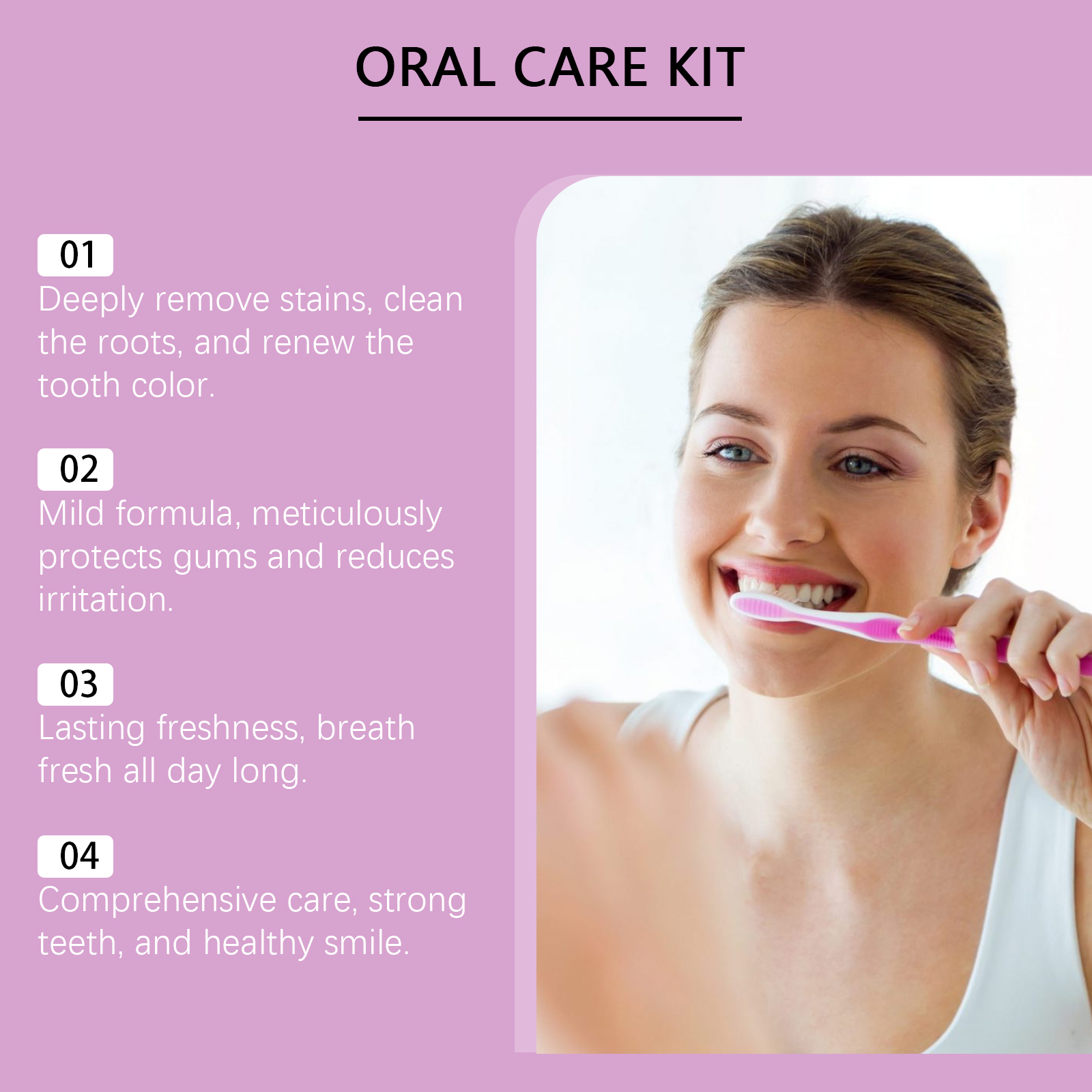 Our dental care kit contains mint leaf extract, xylitol, sodium phytate. It protects the gums and promotes oral health. It effectively removes pigmentation from the surface of your teeth, whitens your teeth and gives you a more confident smile. The way to use it is simple: look at the package in the box. Freshen the smell of the mouth, maintain the fragrance for a long time, and improve comfort.
