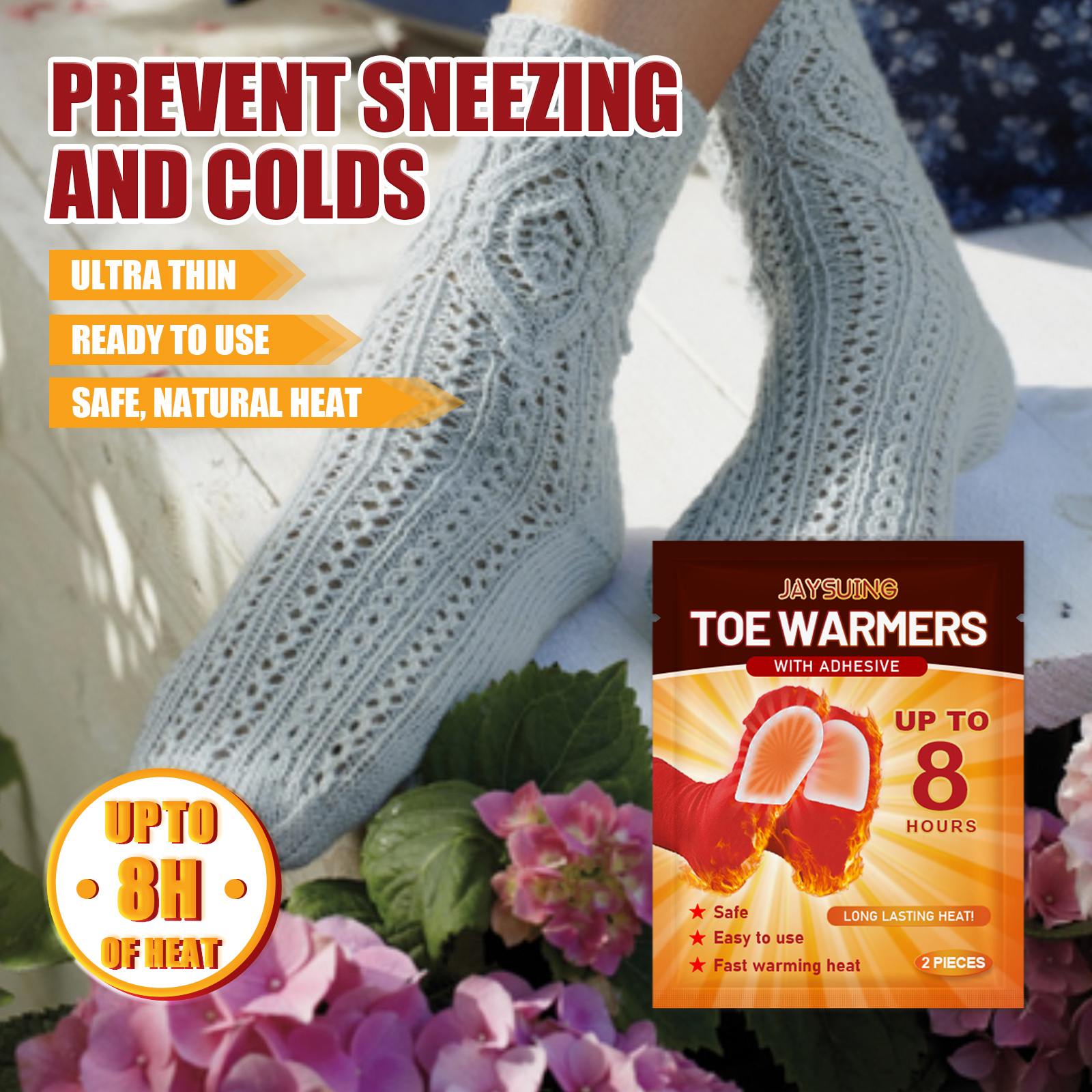Our foot warmer strips contain iron powder and activated carbon. It can generate heat to provide sufficient warmth for the soles of the feet or the body; It is very helpful for women with abdominal pain, low back pain and cold hands and feet during menstruation. Its use method is very simple: tear off the non-woven sticker; Put on your socks and enjoy the warmth of your feet for 6-8 hours. Easy to use, can be used for outdoor sports, in the cold season to provide you with warmth.