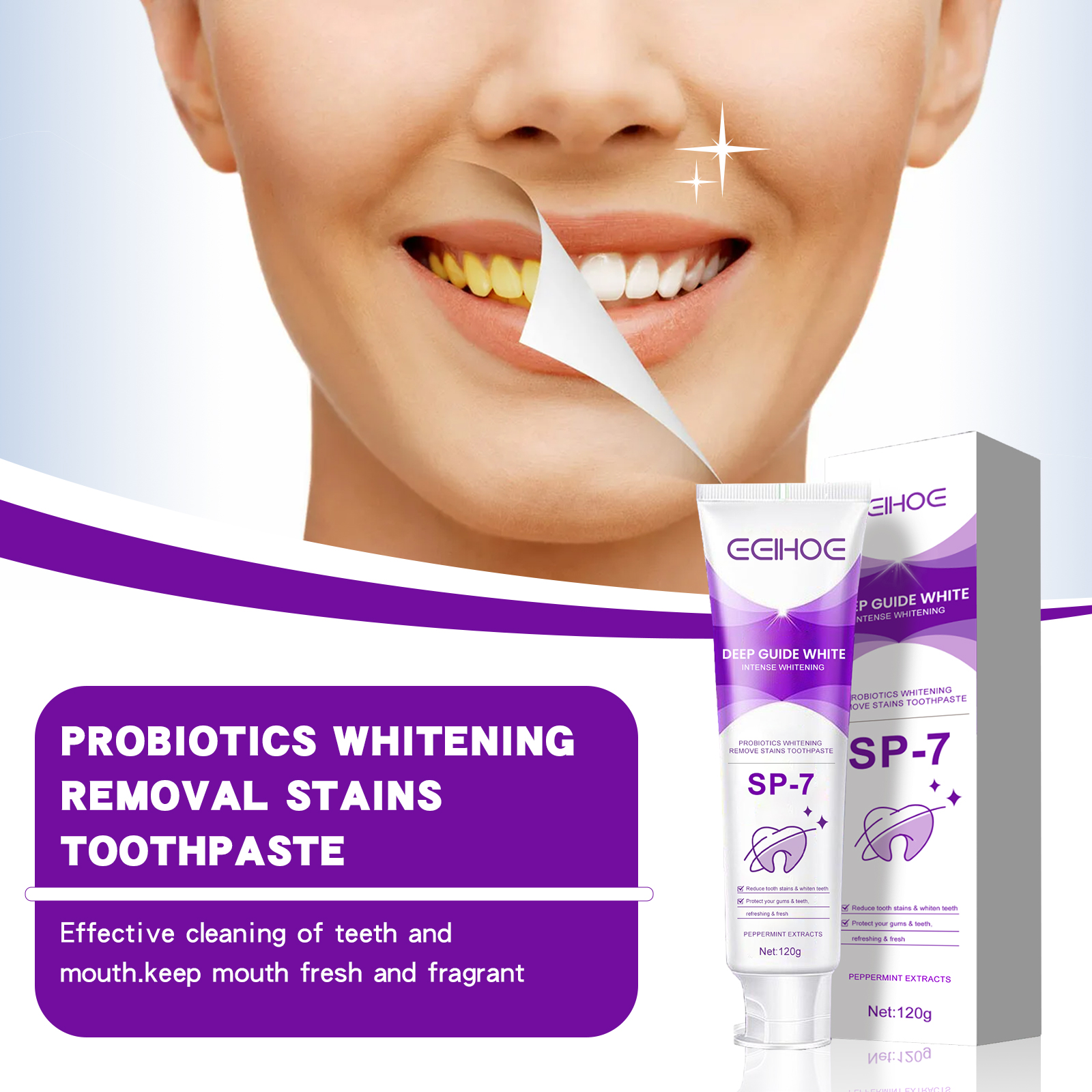 Our toothpaste contains water, peppermint extract, coconut oil and more. It relieves gum discomfort, relieves root discomfort, whitening teeth, odor remover. Its use method is very simple: squeeze the appropriate amount of toothpaste on the toothbrush, brush up and down for 2 minutes, and then rinse with water, brush once every morning and evening, so that the whitening effect is better. Effective cleaning of teeth and mouth, keep mouth fresh and fragrant.