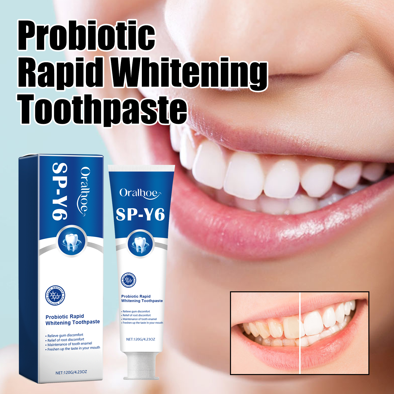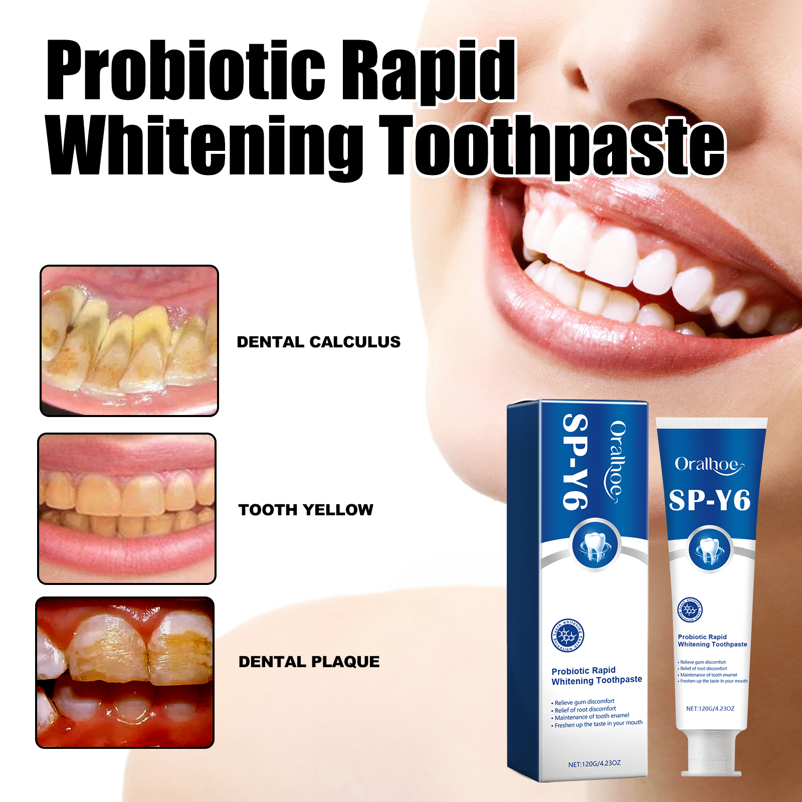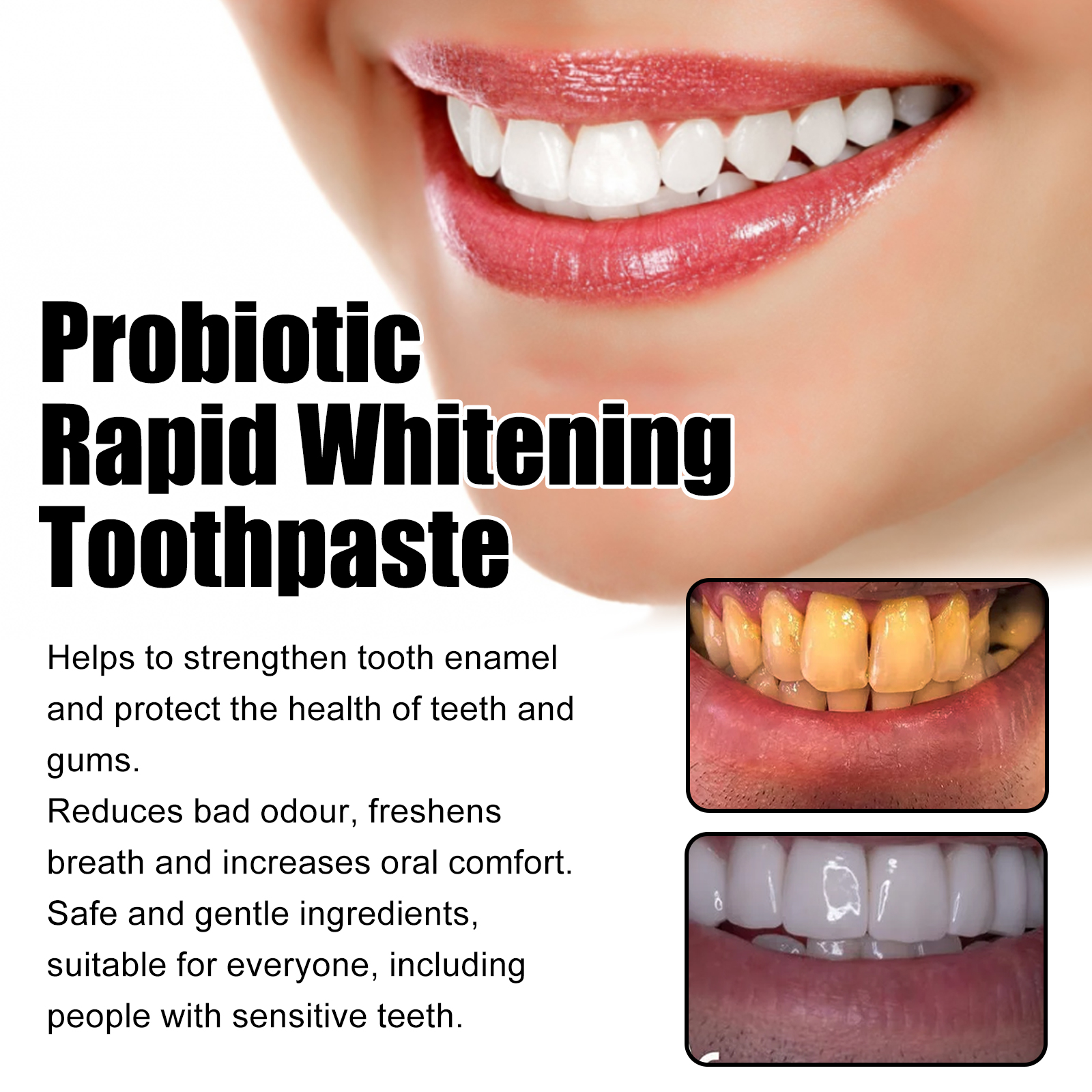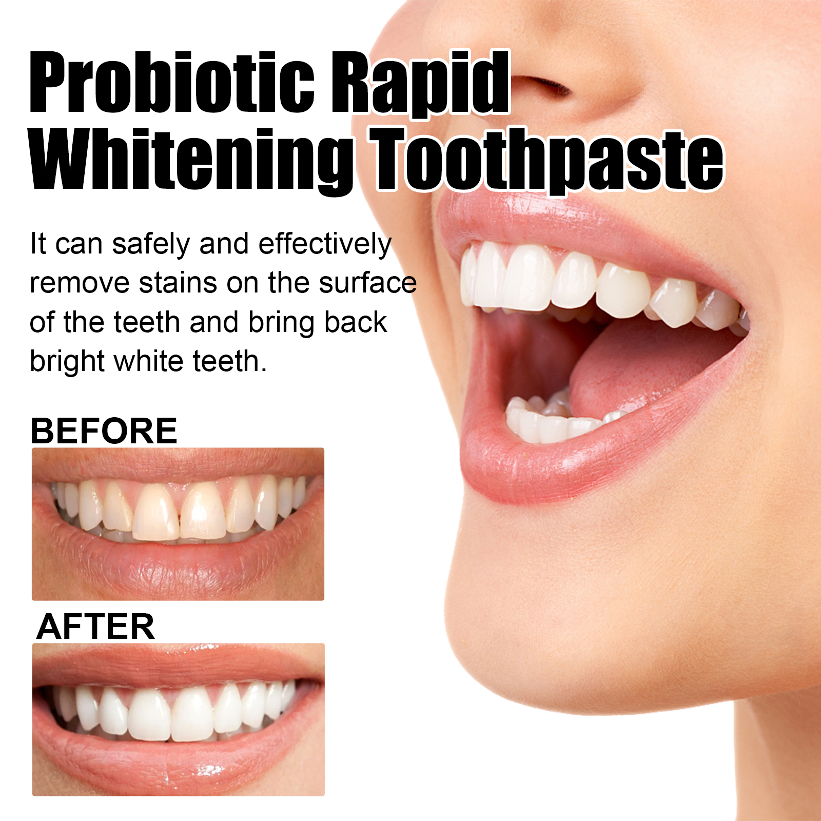 Probiotic Whitening Toothpaste Fresh Breath Removes Stains and Odor Whitens Teeth