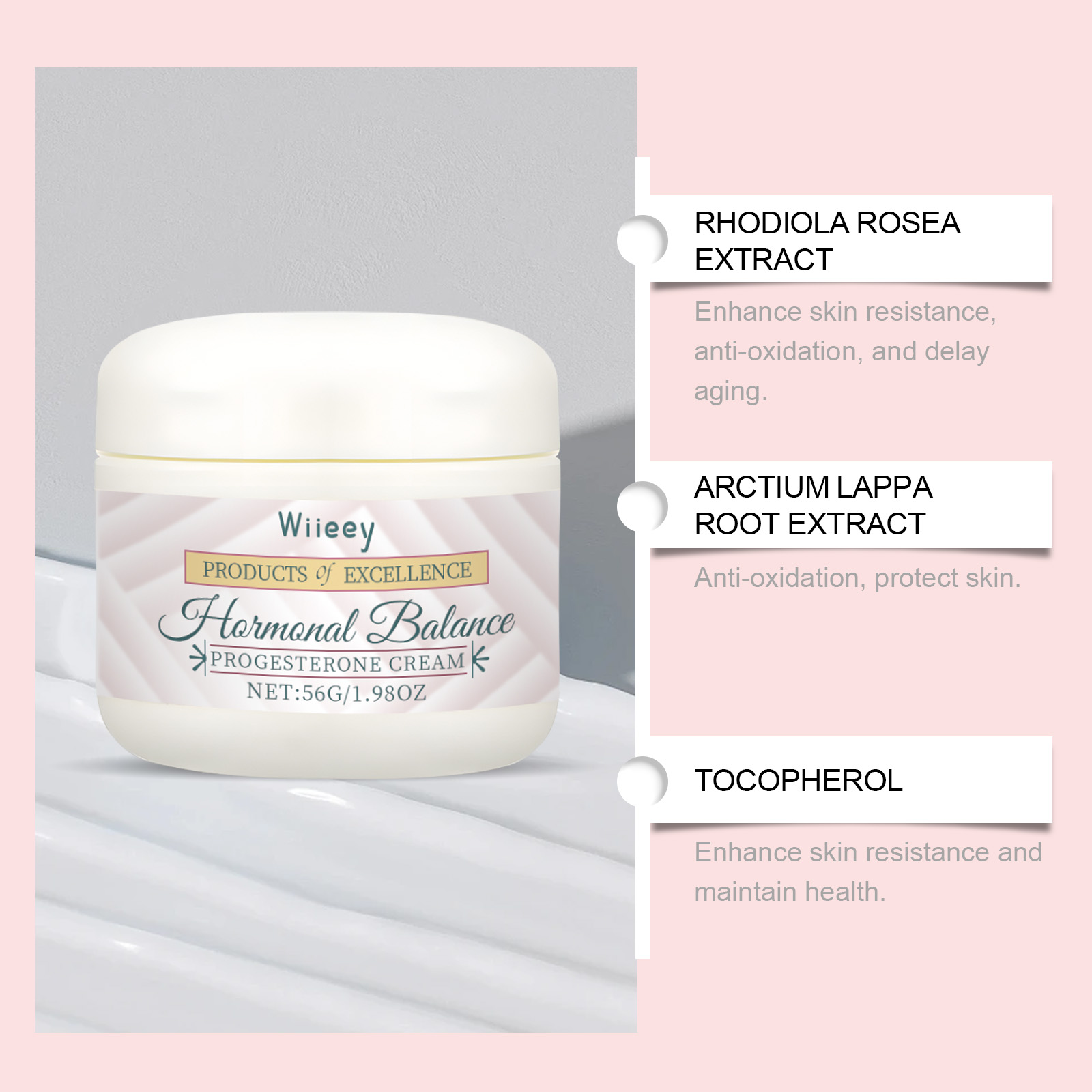 Our progesterone milk contains vitamin E, burdock root extract and Rhodiola rosea extract. It can balance hormone levels and improve menstrual irregularities. Increase your chances of conception and help you have a healthy pregnancy. Its use method is very simple: 1. Clean the body, keep dry; 2. Apply appropriate amount of the product evenly on the arm, neck or other required parts; 3. Gently massage until completely absorbed. Relieve menstrual discomfort and reduce pain. Improve menstrual irregularities, menstrual pain and other symptoms.